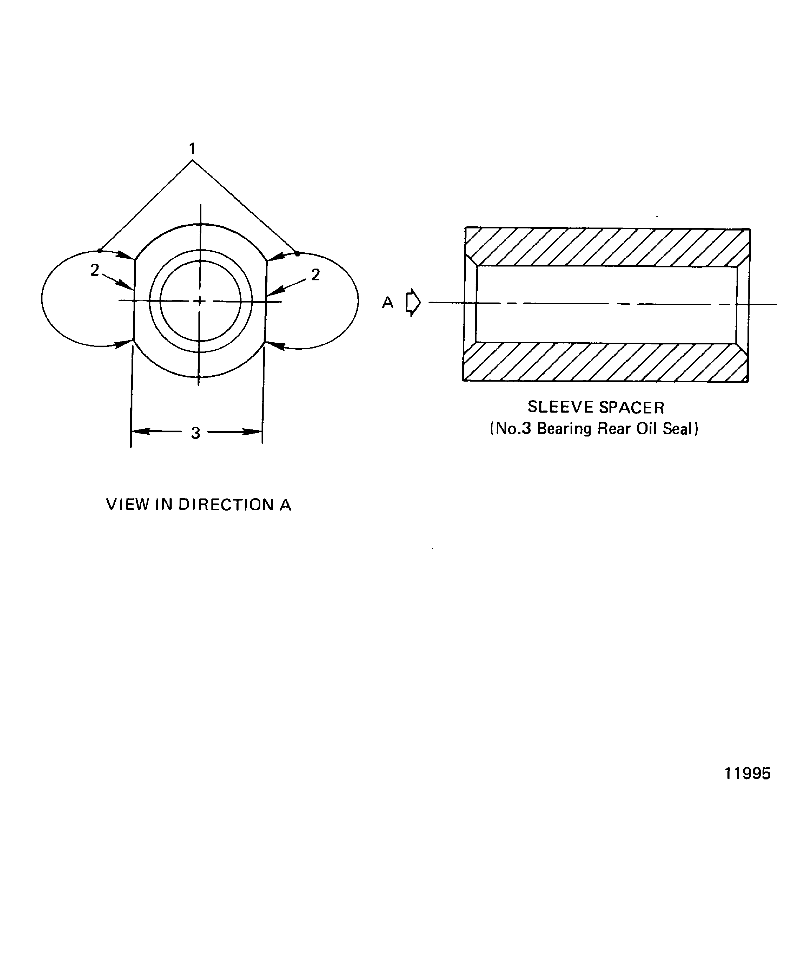 No. 3 bearing rear oil seal sleeve spacer inspection locations