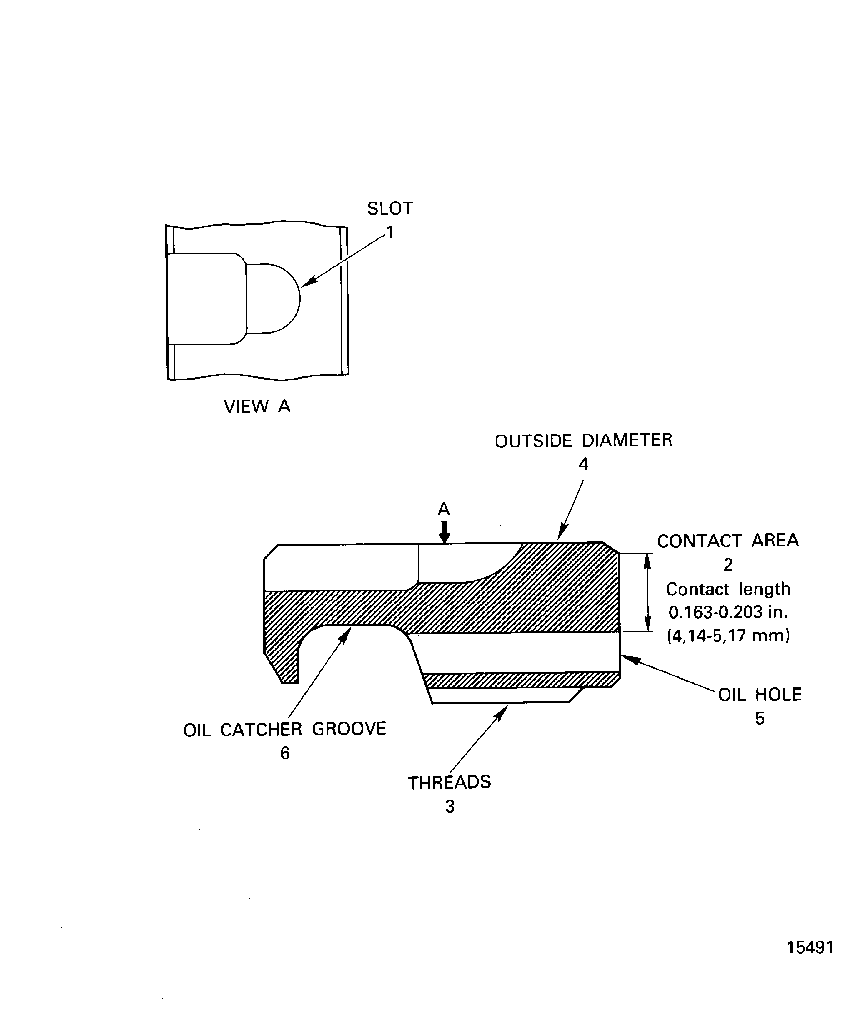 Examine the oil catcher groove at location 6.