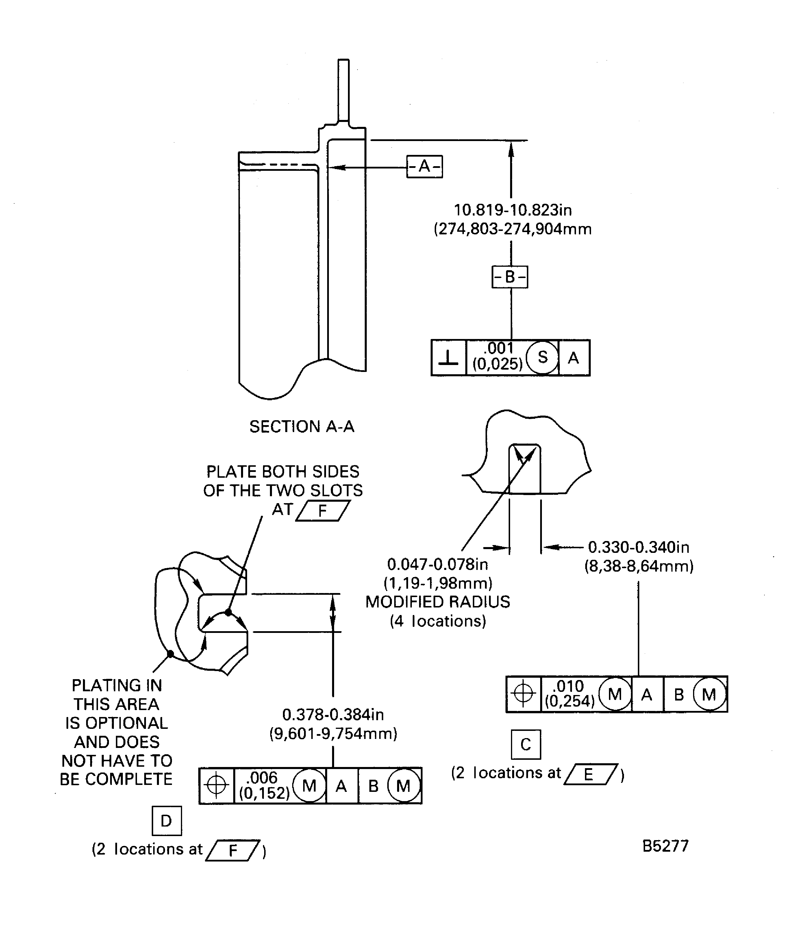 No chrome plate is permitted outside the enclosed plate area.Apply chrome plate to the anti-rotation slots.