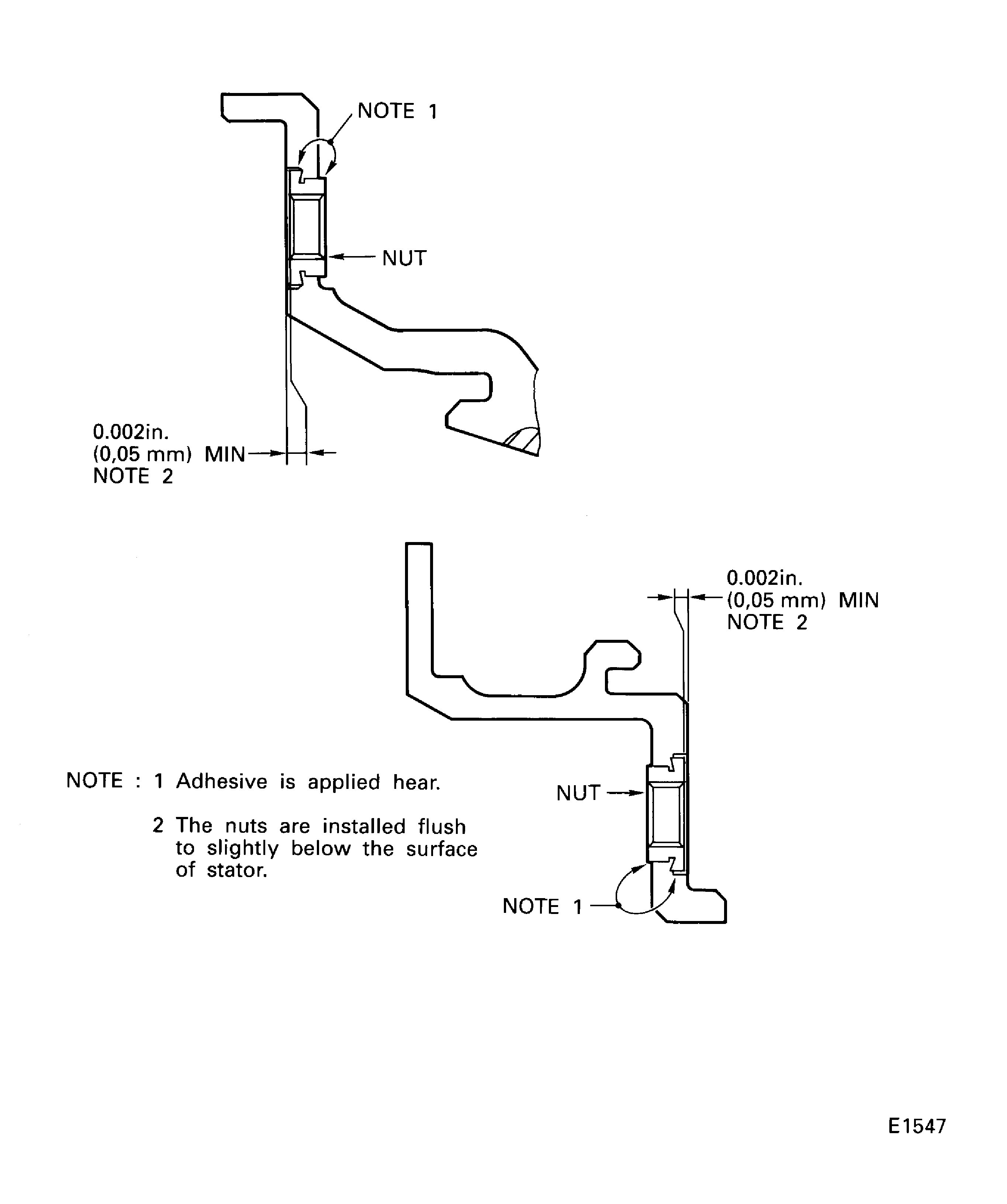 Wear CoMat 02-097 LINT-FREE GLOVES or CoMat 02-100 GLOVES, LINT-FREE when you touch the parts.The minumum cure time is one hour, refer to SPM TASK 70-36-02-360-501. Make sure the full cure time is used, and correct temperature maintained.The adhesive will not cure at a temperature of less than 54 deg F (12 deg C).Apply the adhesive and place the nut in position and cure.