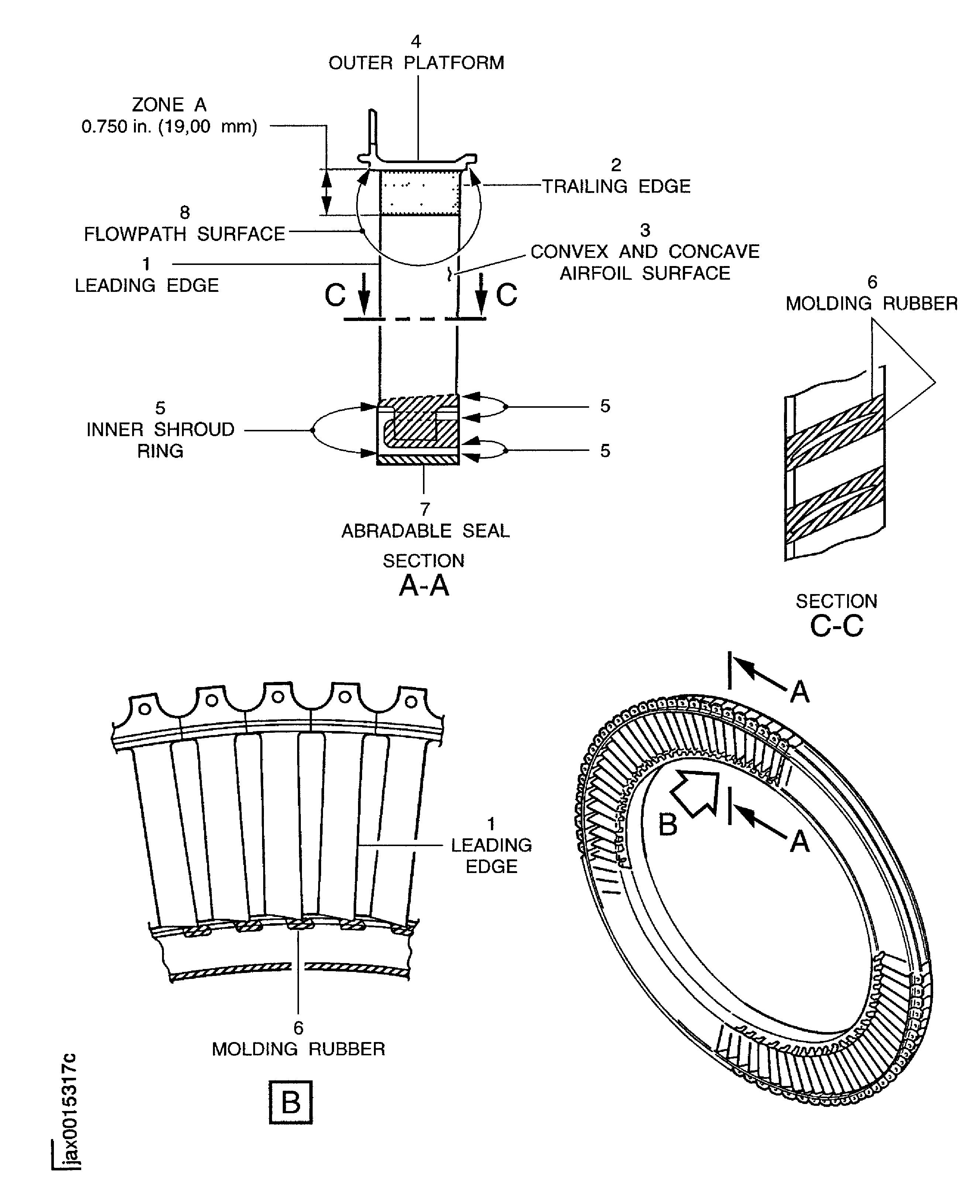 Examine the abradable seal at location 7.