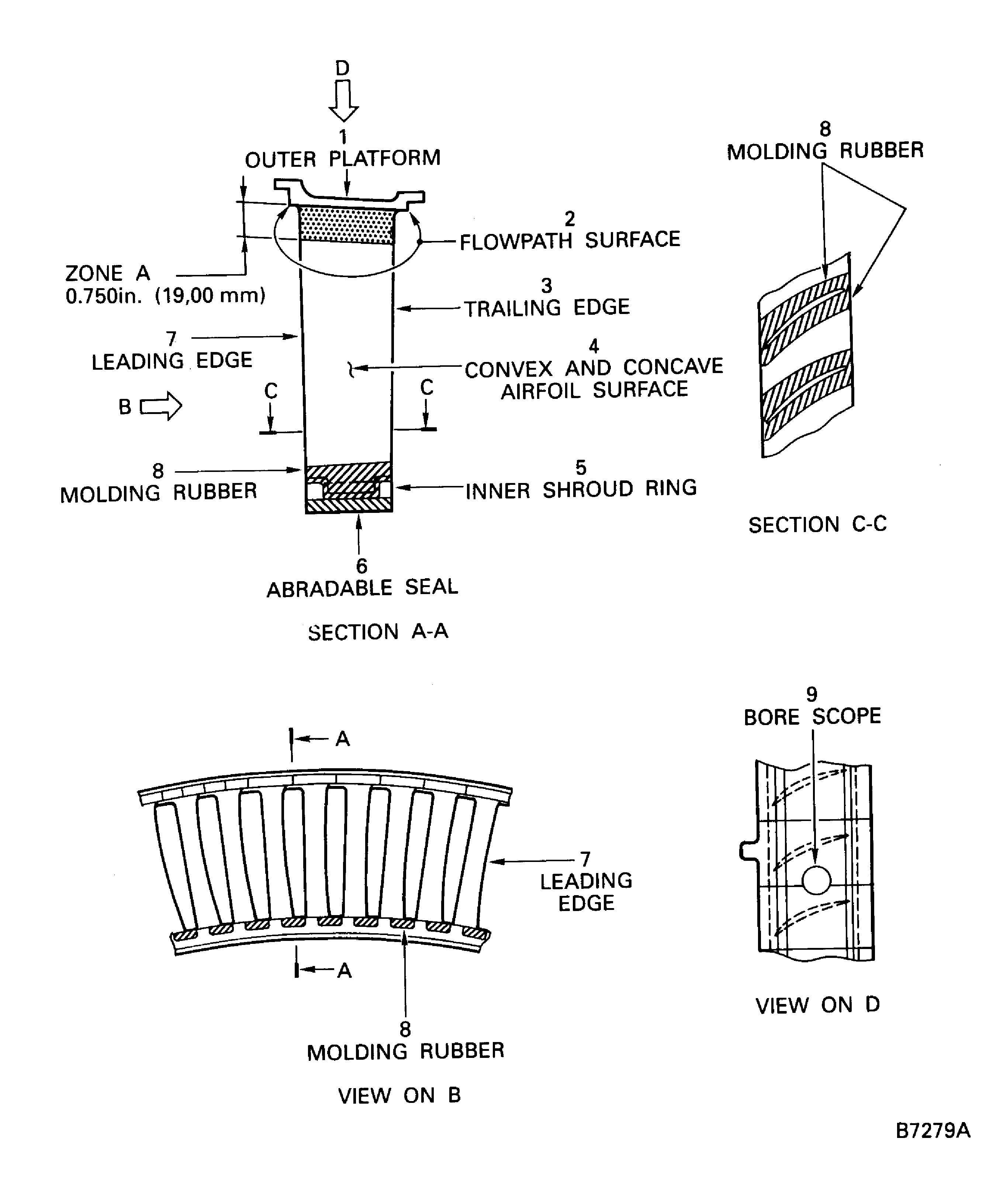 Examine the abradable seal at location 6, use IAE 2J12619 Inspection fixture 1 off.