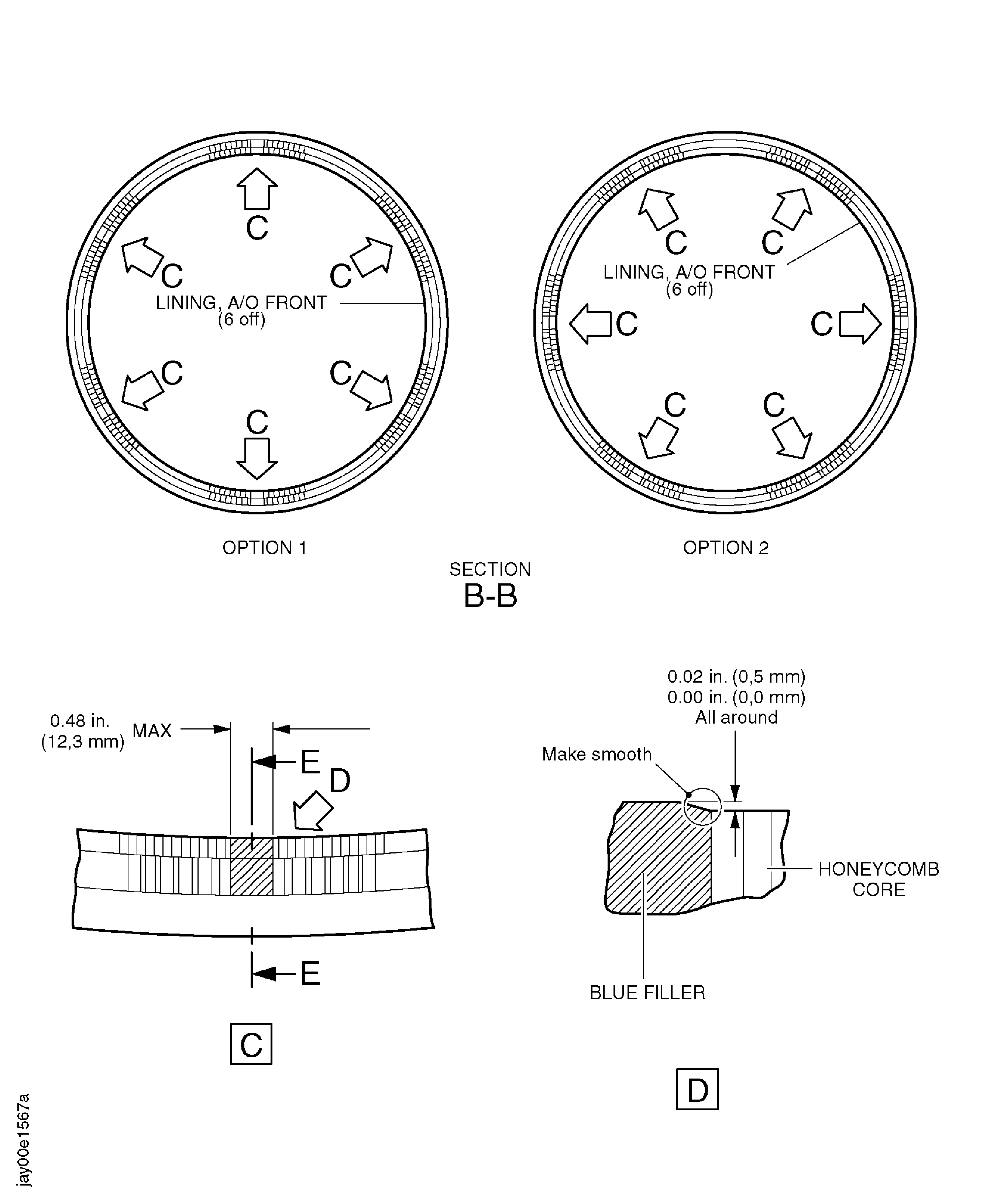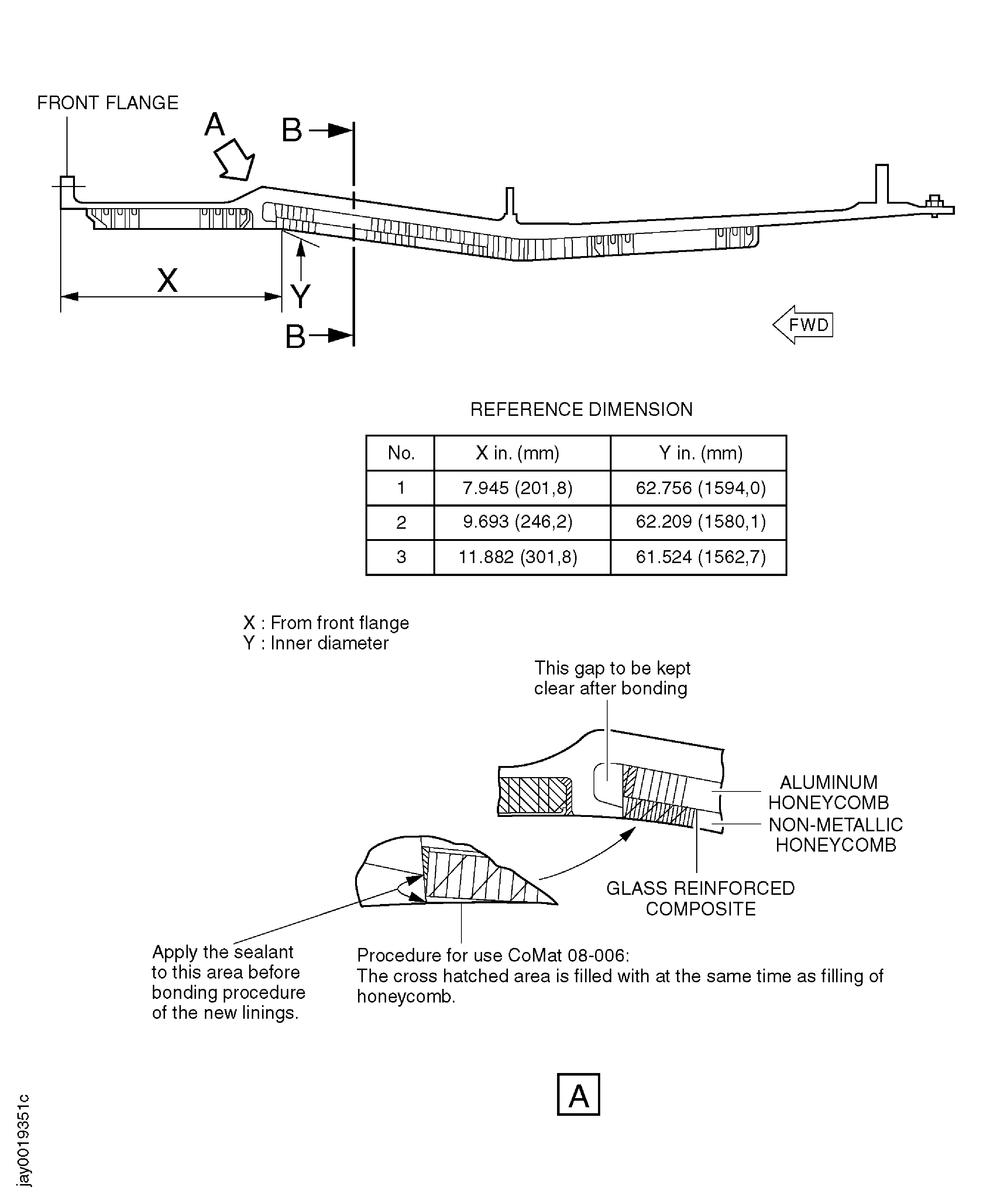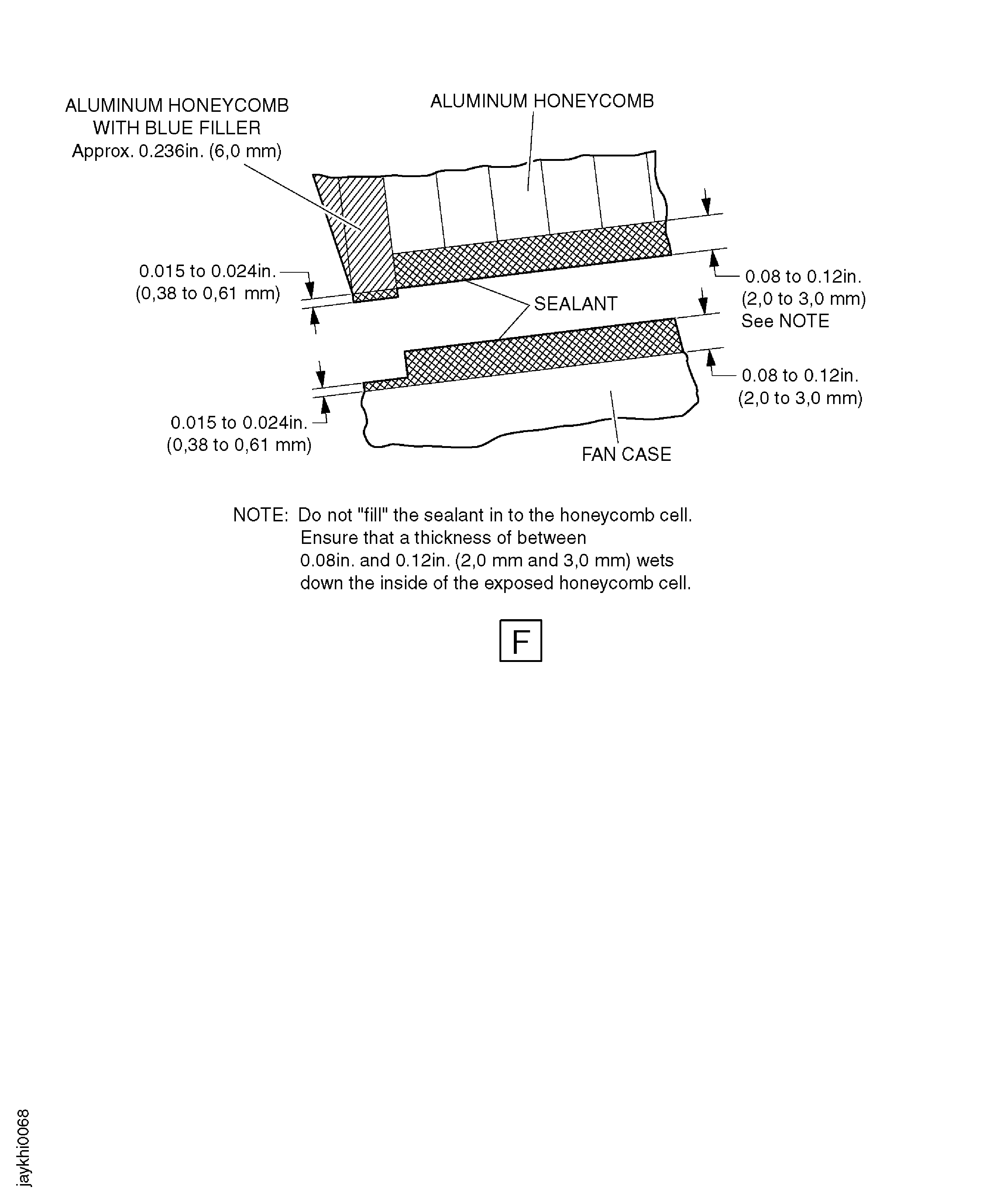 Apply the filler into the honeycomb and the gap around the replacement linings, refer to Figure.