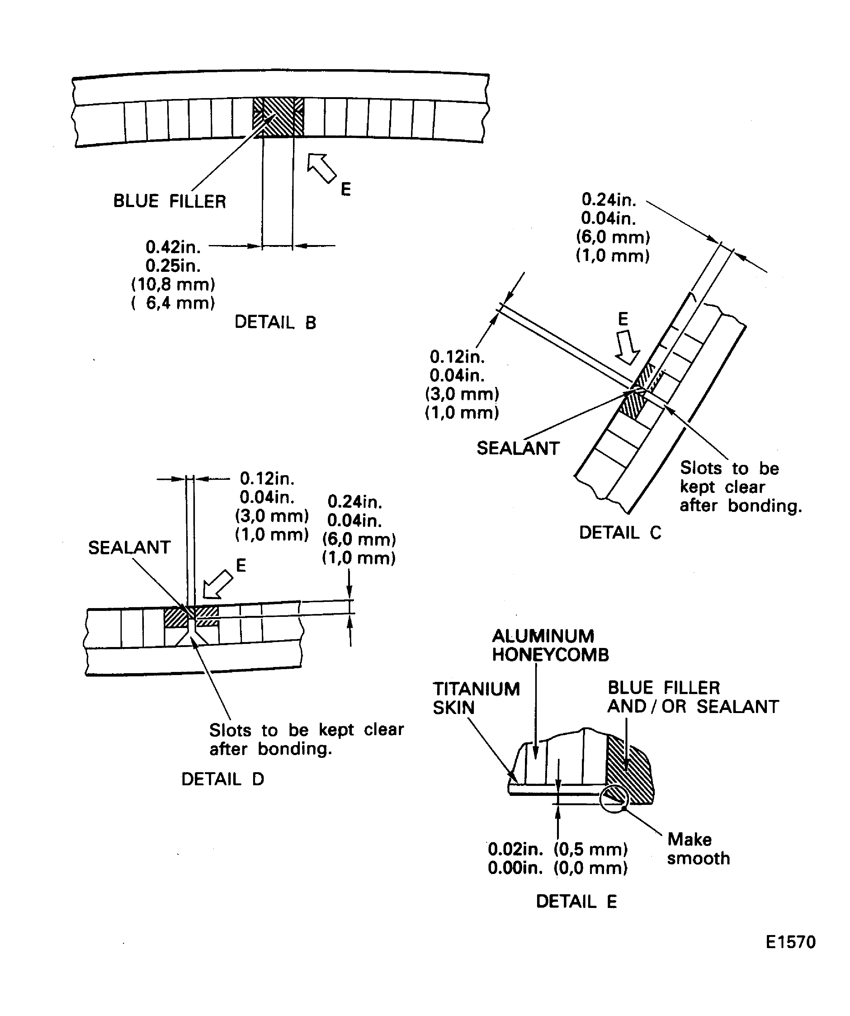 In order to ensure that front attrition area of the panel honeycomb has contact with the surface of the sealant it is necessary to apply the sealant to the maximum specified thickness 0.118 in. (3.0 mm). The sealant layer thickness must not fall below the specified minimum 0.079 in. (2.0 mm).NOTE