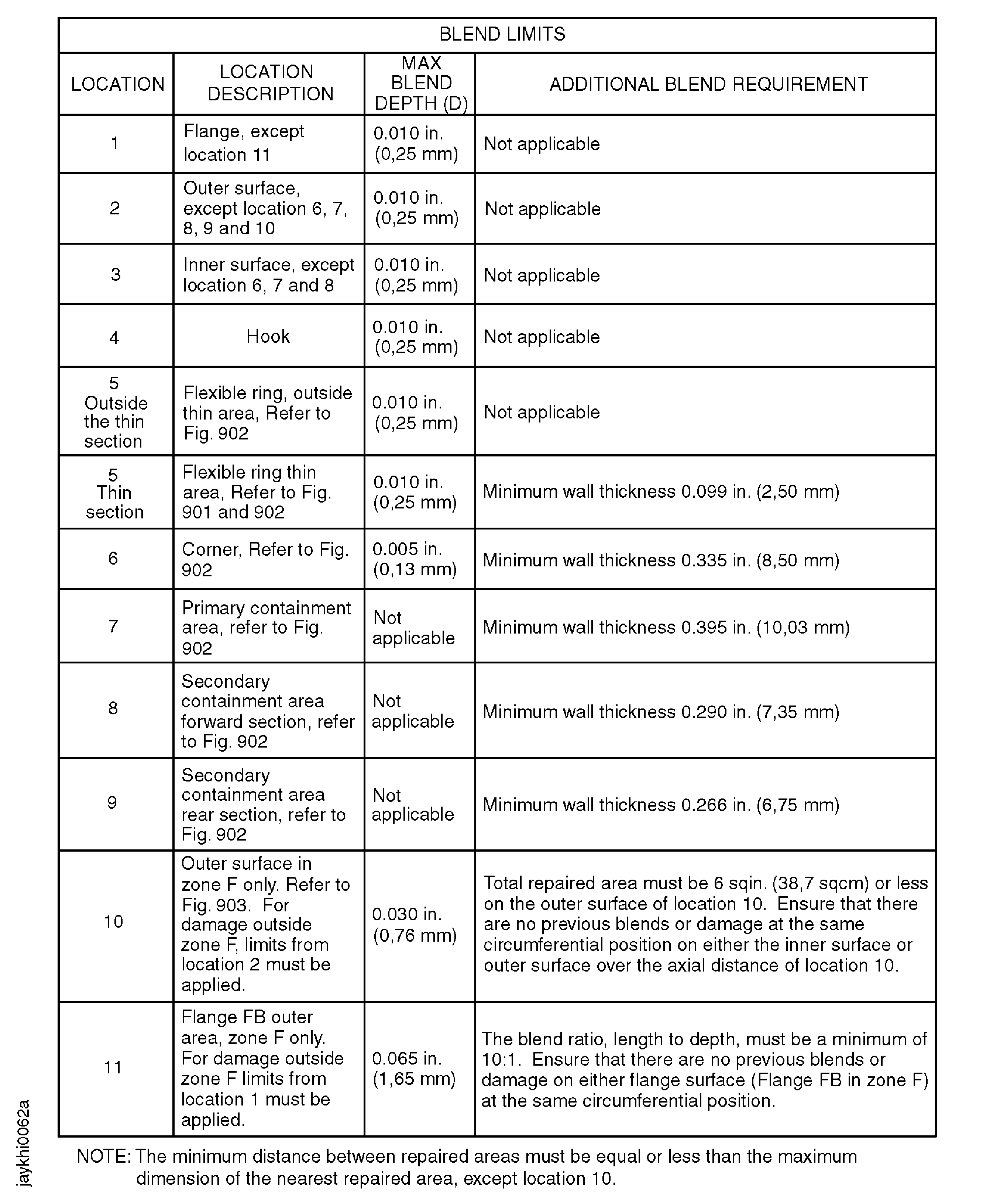 THE FAN CASE IS MADE FROM TITANIUM ALLOY AND IS THIN IN SOME AREAS. IF YOU BLEND TOO MUCH, THE PART CANNOT BE SERVICEABLE AND WILL HAVE TO BE REPLACED.