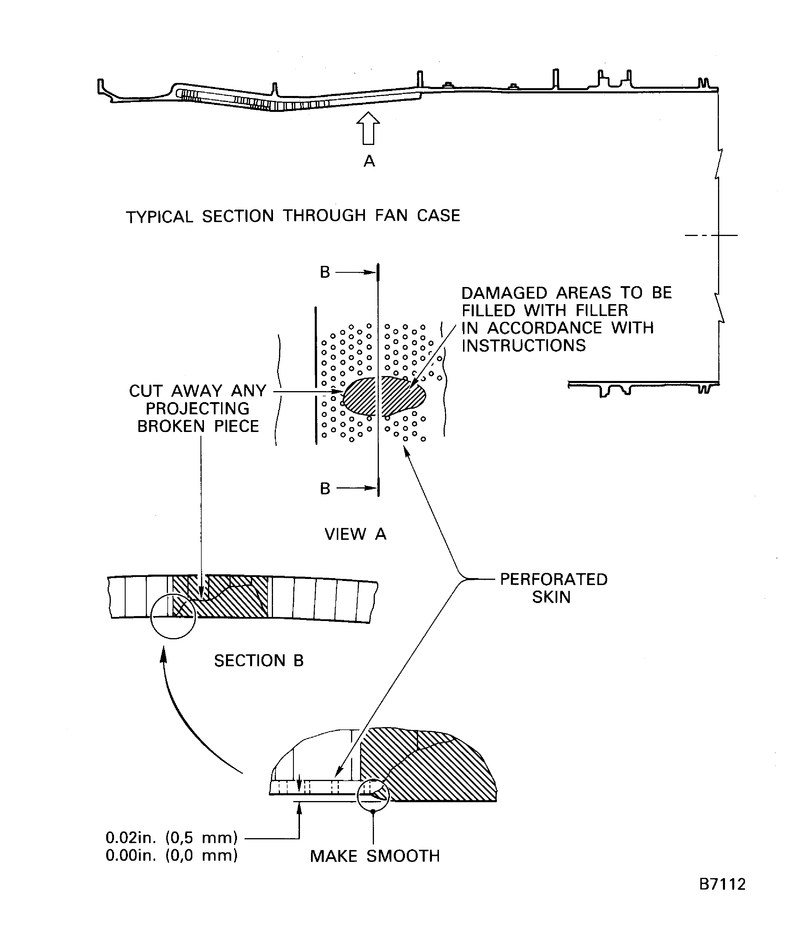 CHECK THE TOTAL REPAIR AREA PRIOR TO STARTING THE REPAIR. DO NOT CARRY OUT REPAIR BY FILLING THE ACOUSTIC LININGS IF THE TOTAL REPAIRED AREA EXCEEDS 20 PERCENT OF THE TOTAL FAN CASE ACOUSTIC LINING AREA.