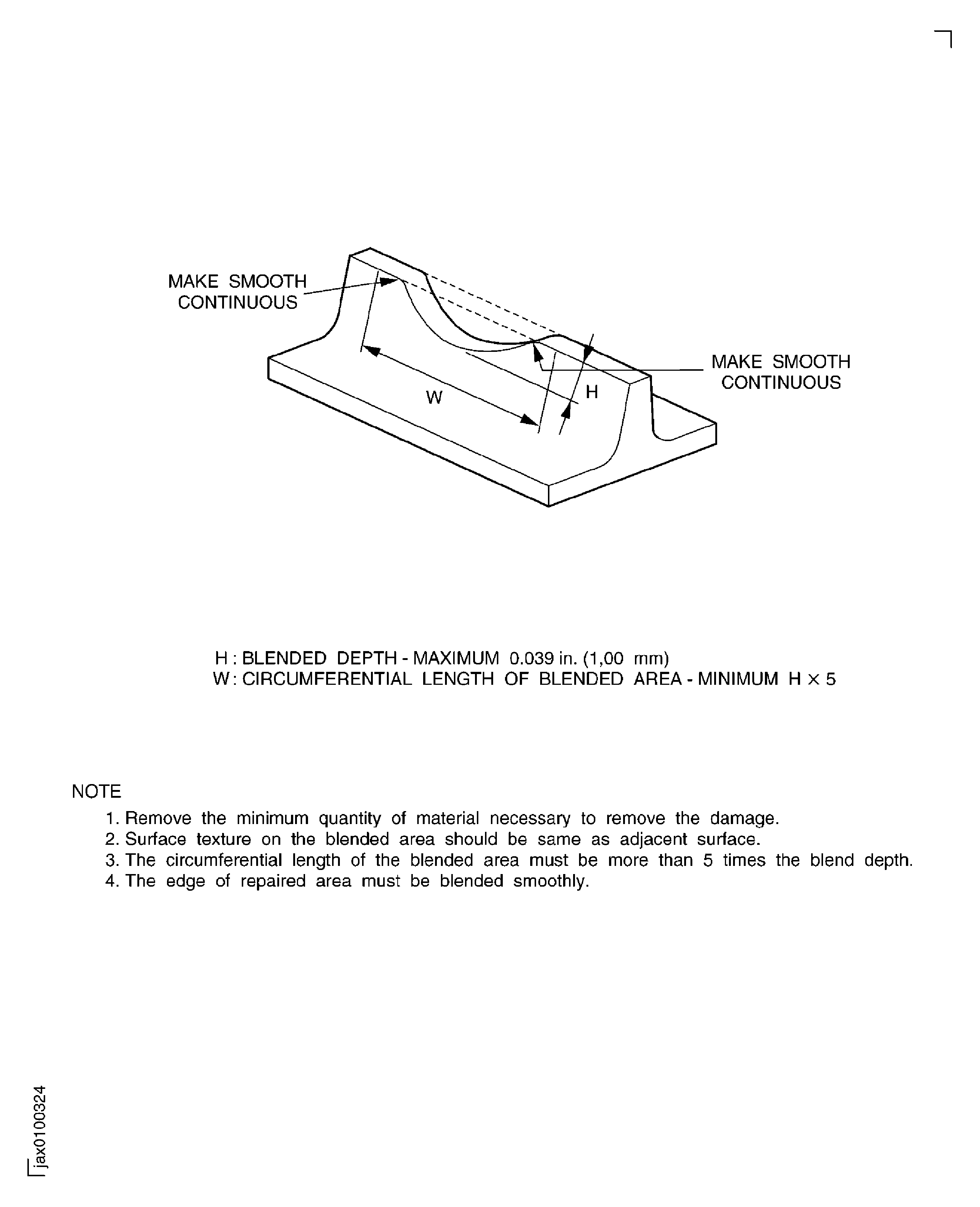 The surface finish of the repair area must be the same as the adjacent area.