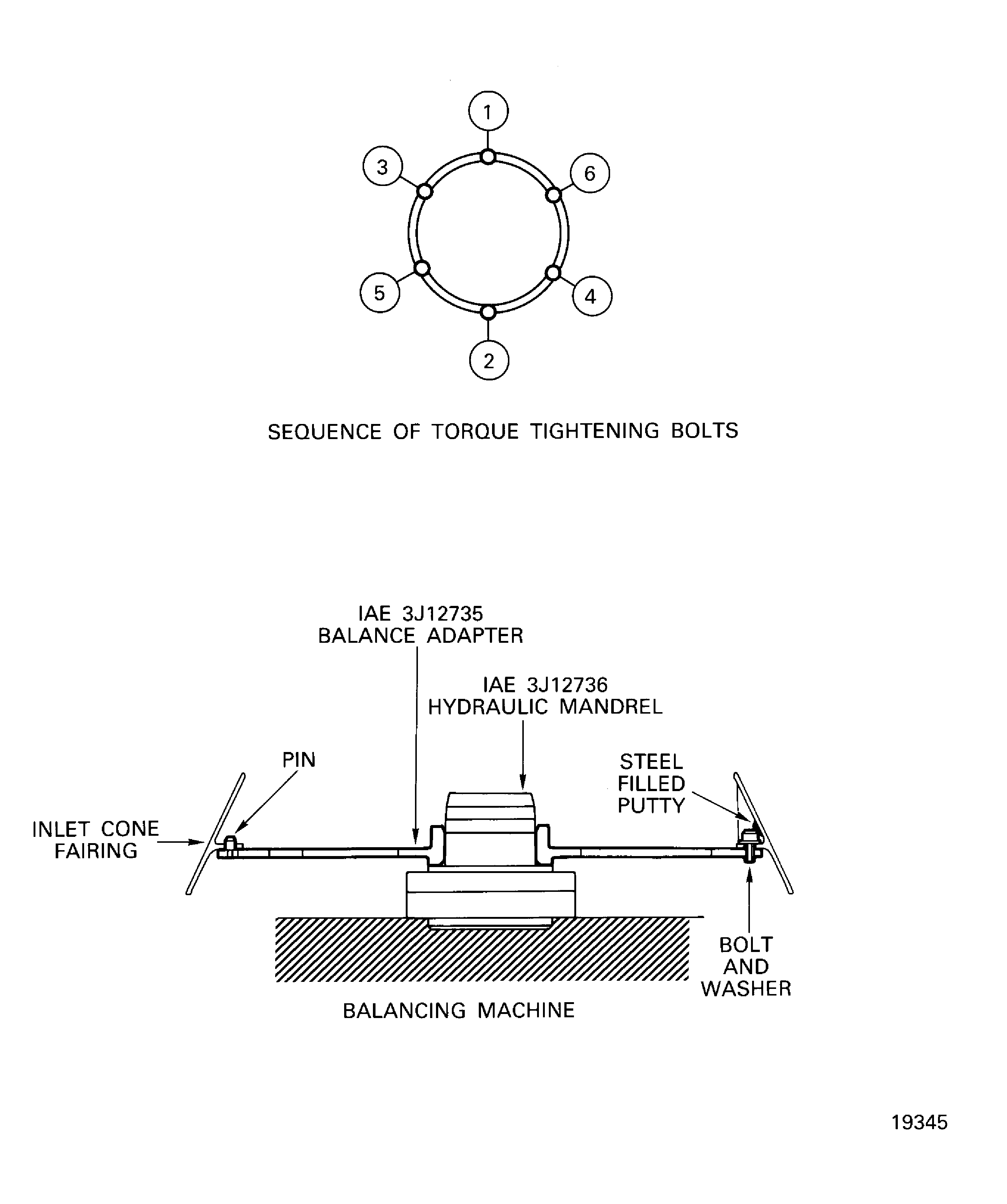 Attach the inlet cone fairing on the balance adapter and tighten bolts in the diagonal sequence. Torque: 210 lbfin (23.73 Nm).
