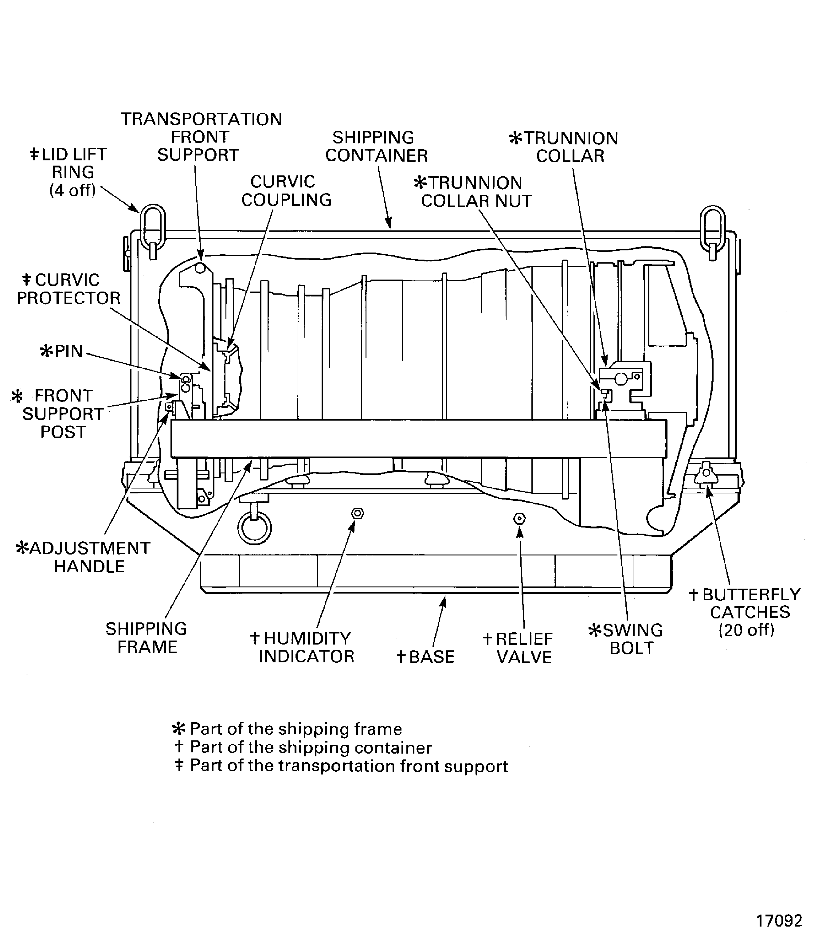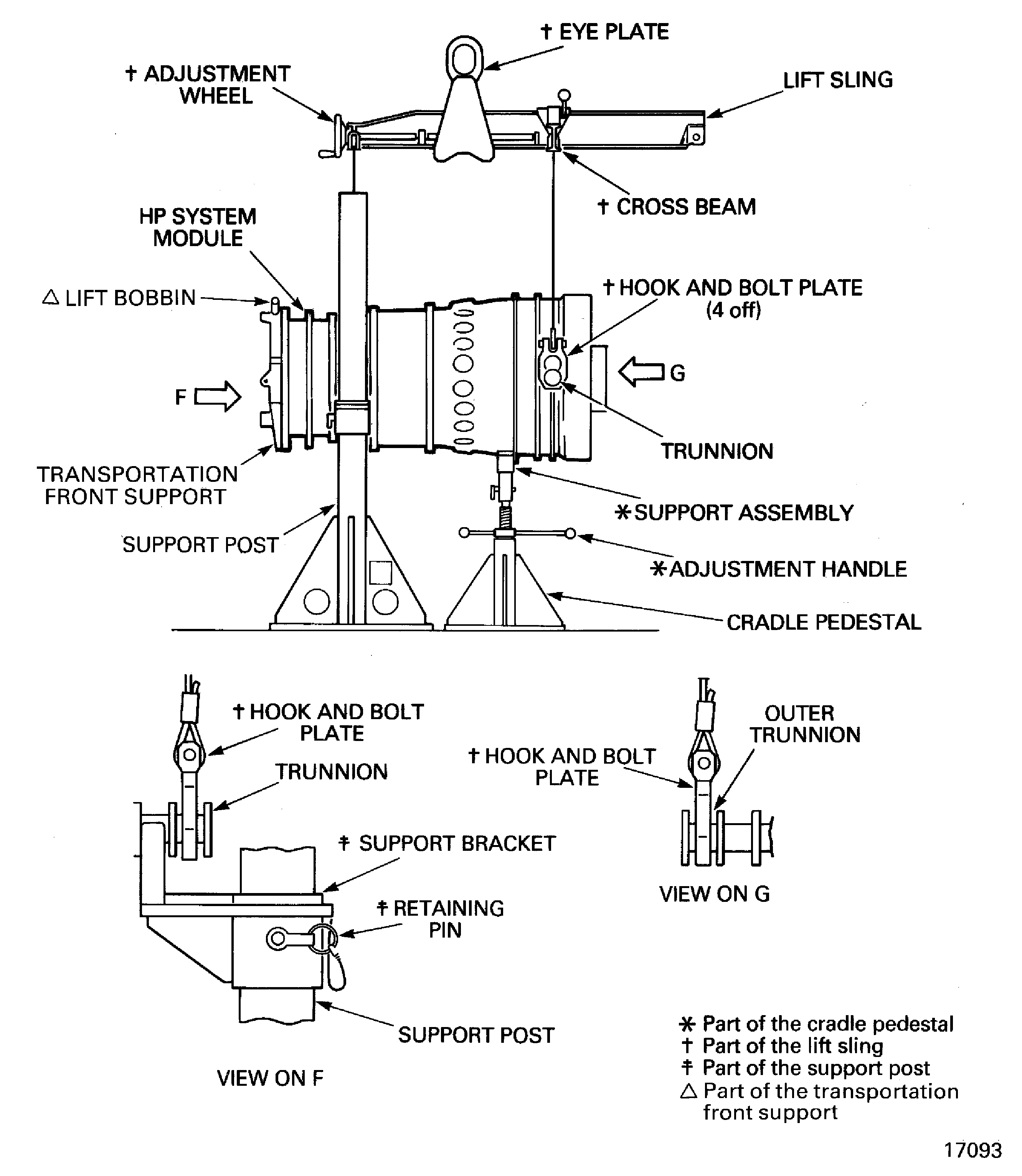 Make sure that the trunnion support bracket part of the IAE 1F10028 Support Pedestal 2 off, are at their lowest position.