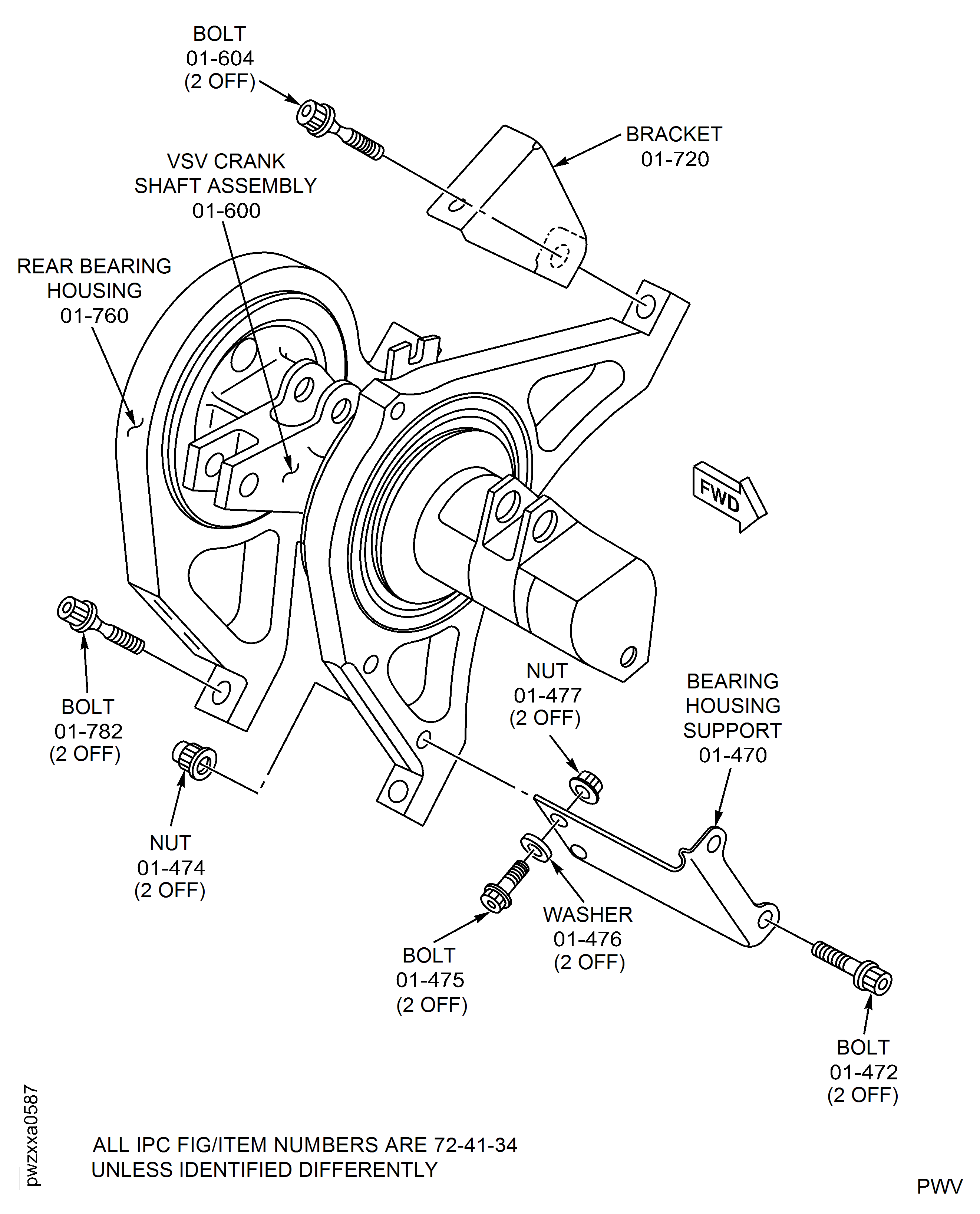 Fig/item numbers in parentheses in the procedure agree with those used in the IPC. Only the primary Fig/item numbers are used. For the service bulletin alpha variants refer to the IPC.