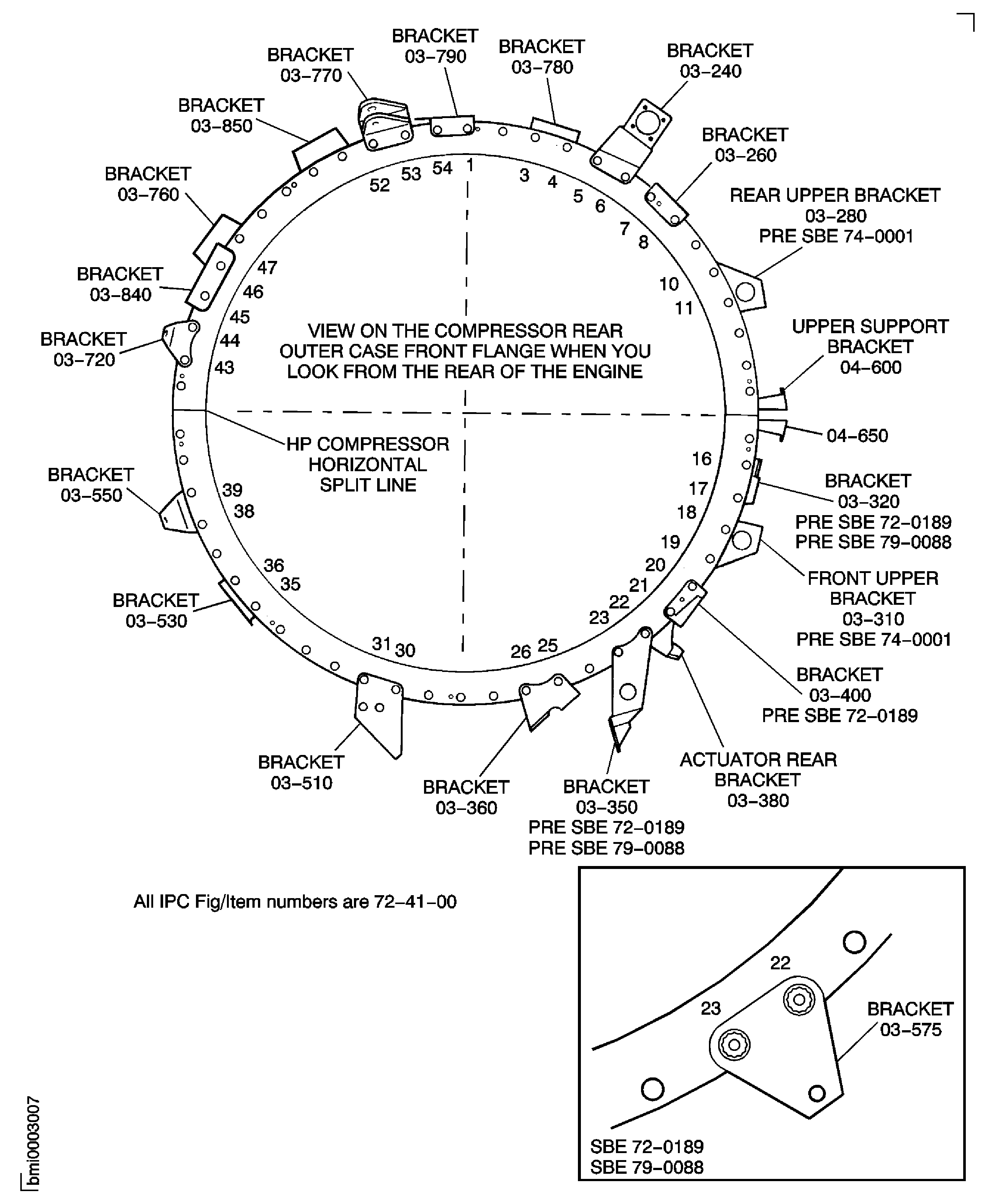 Figure: Pre SBE 72-0189 and SBE 79-0088: Remove the HP Compressor Front Case Split Line and Rear Flange Nuts, Bolts and Brackets