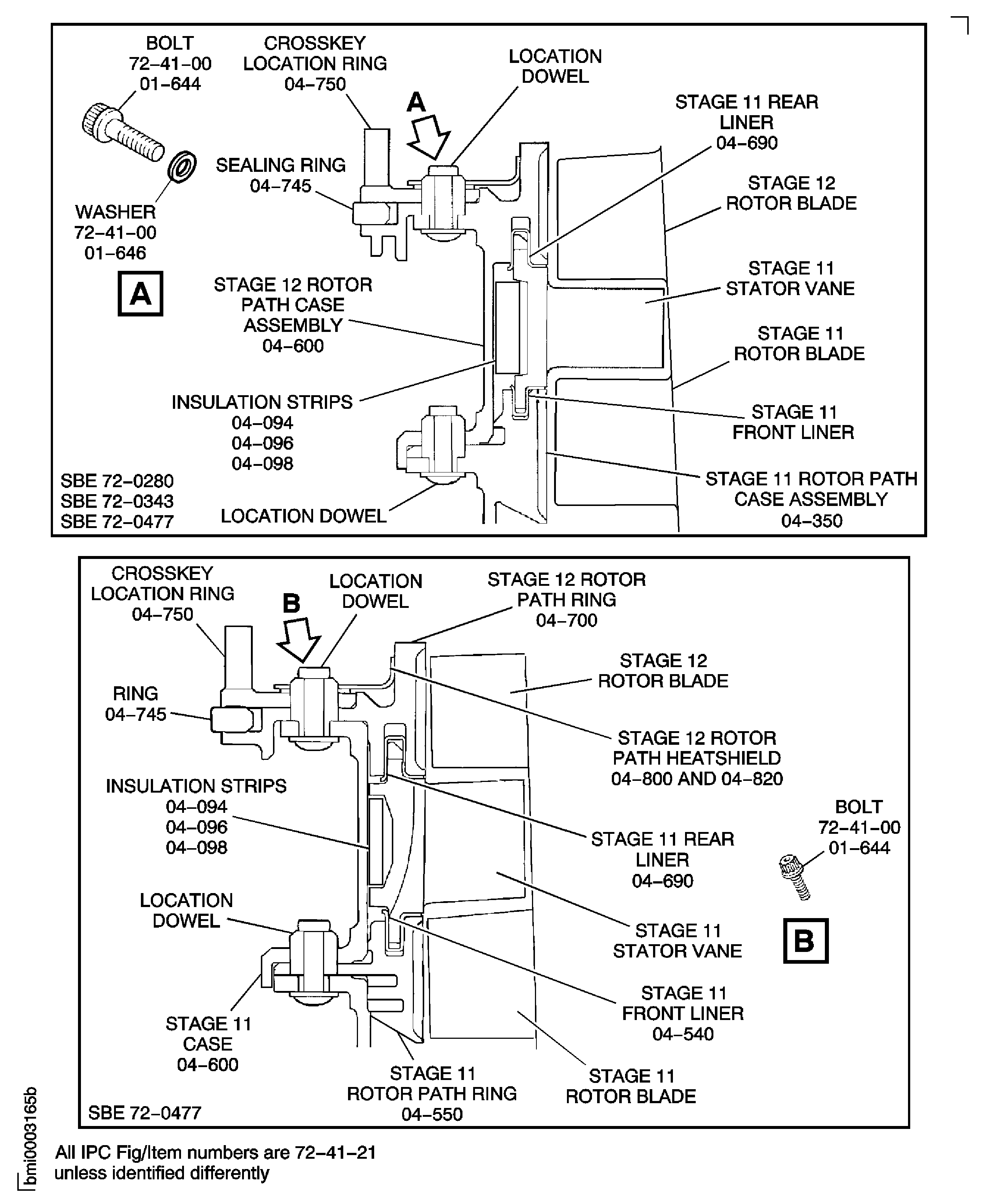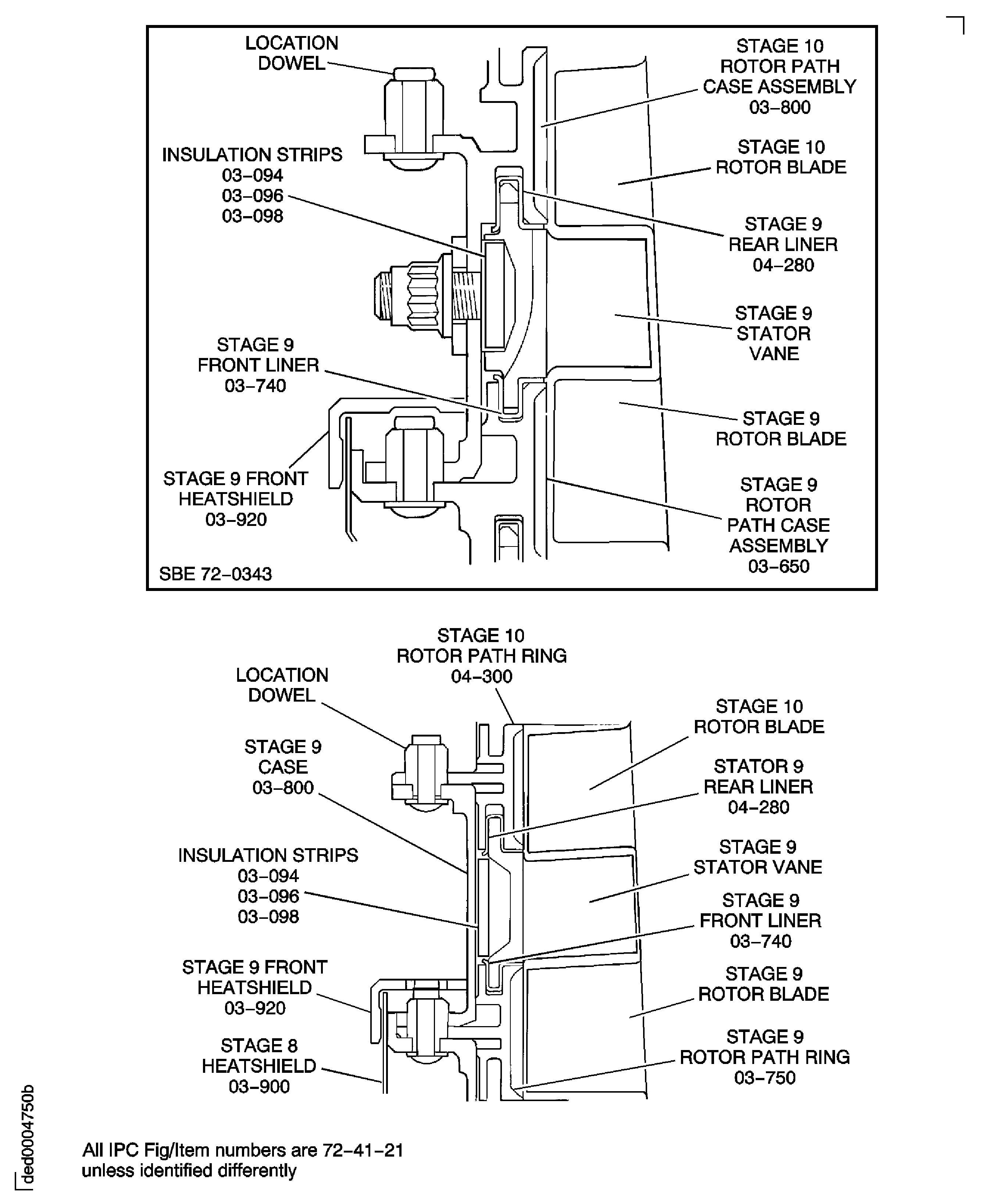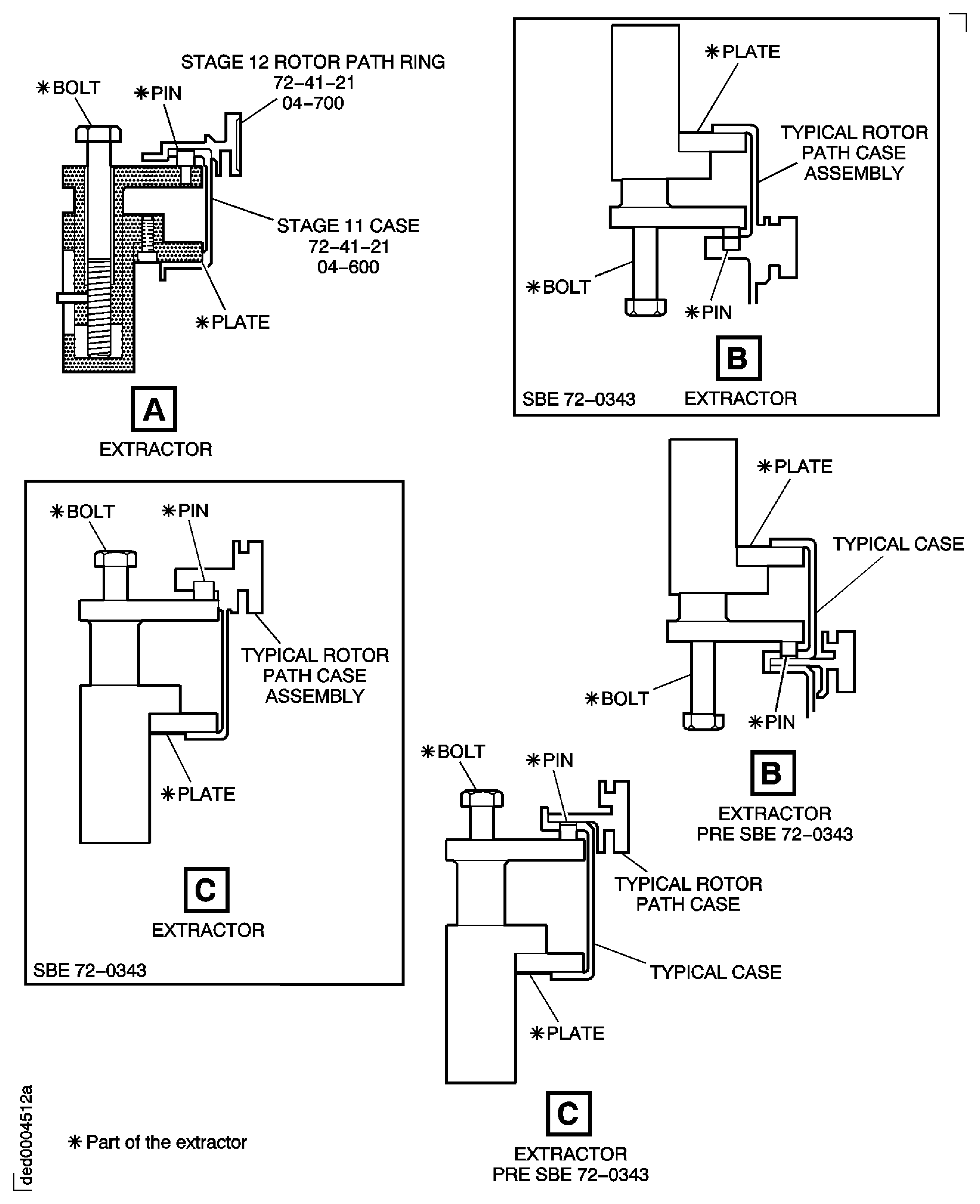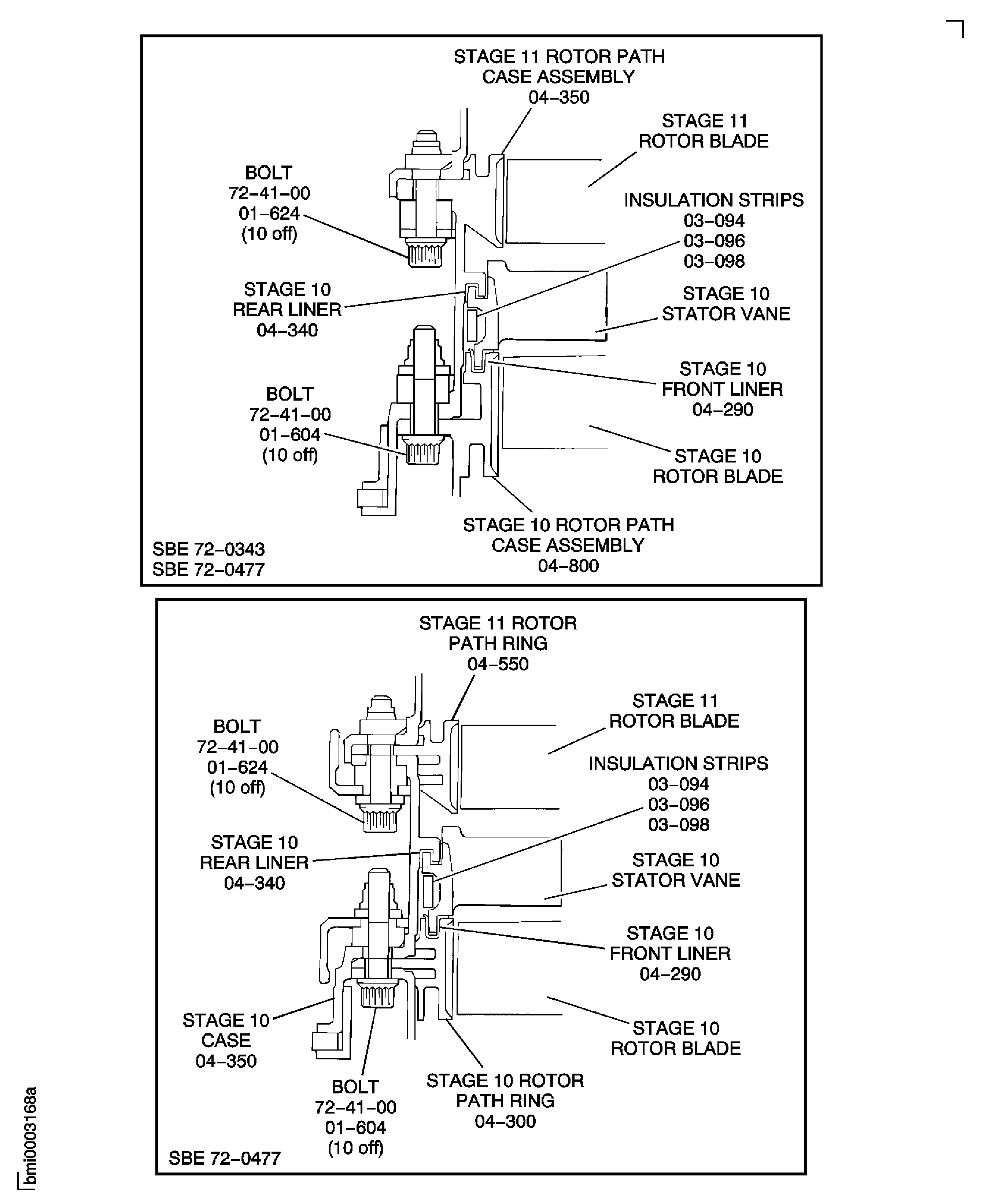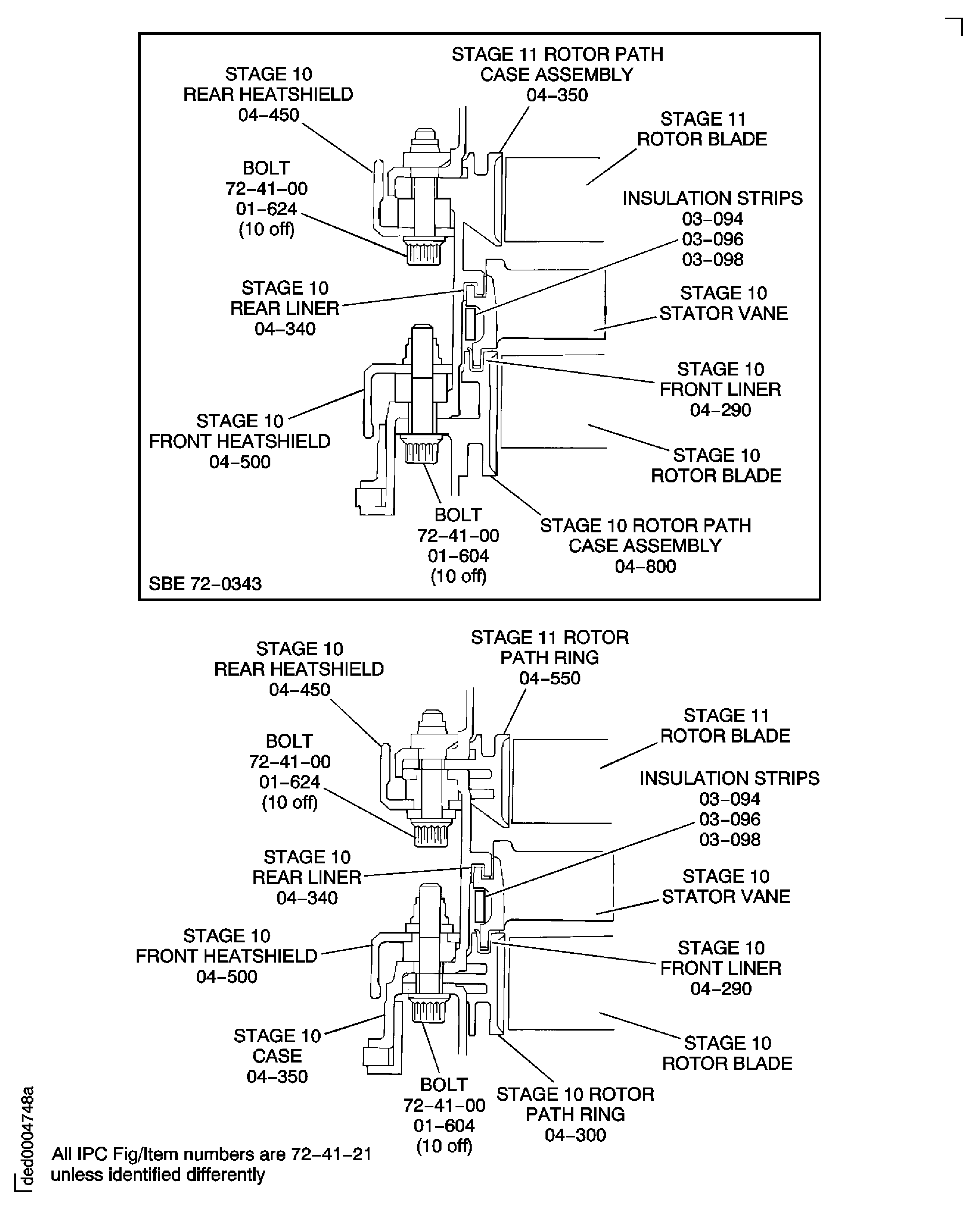 Figure: Pre SBE 72-0343, SBE 72-0343 and SBE 72-0477: Remove the Stage 10 Case, Stator Vanes and Rotor Path Ring