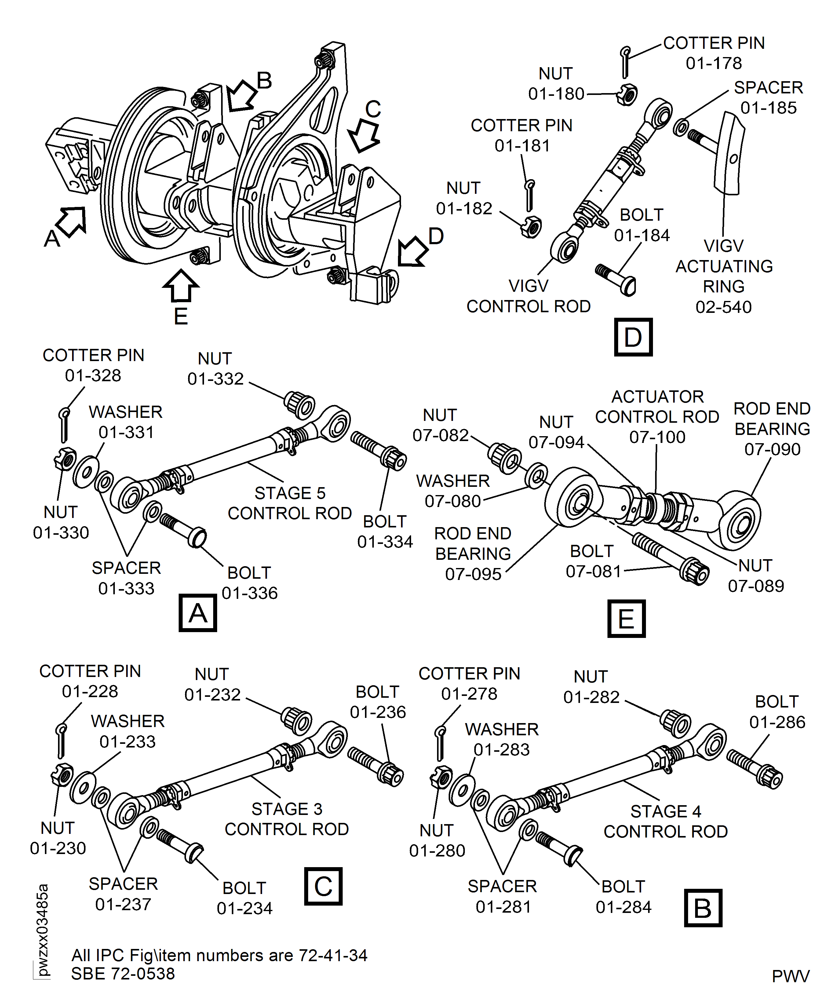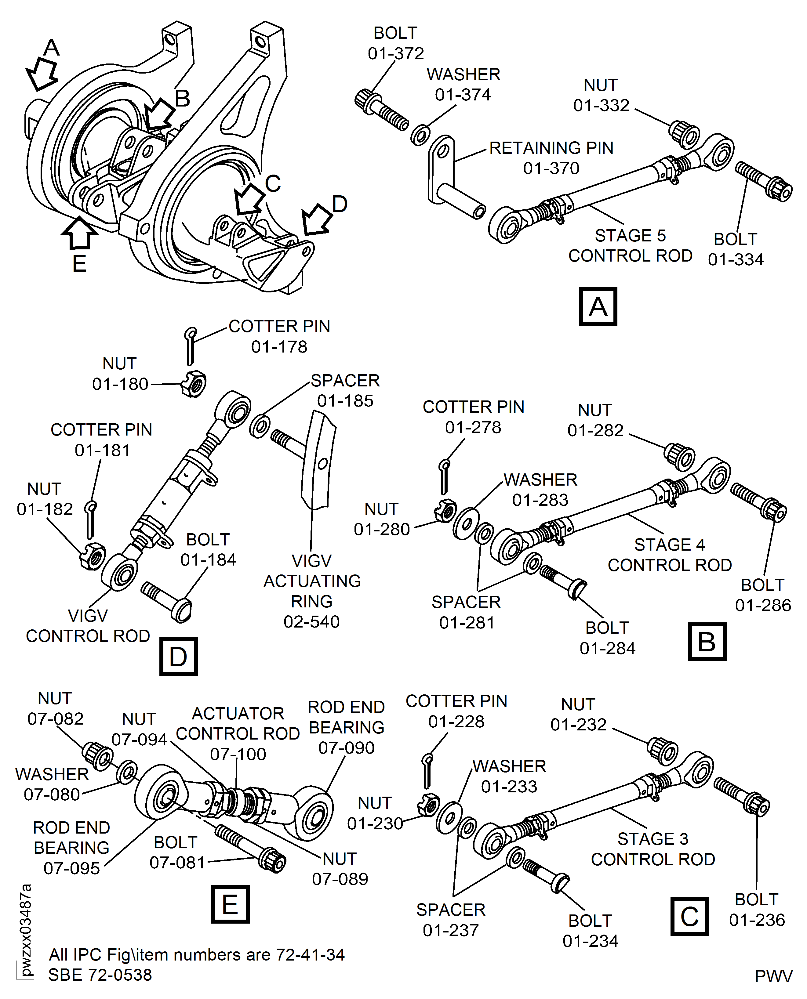 Figure: SBE 72-0406 And SBE 72-0538: Remove The VSV Crankshaft Remove The Control Rods