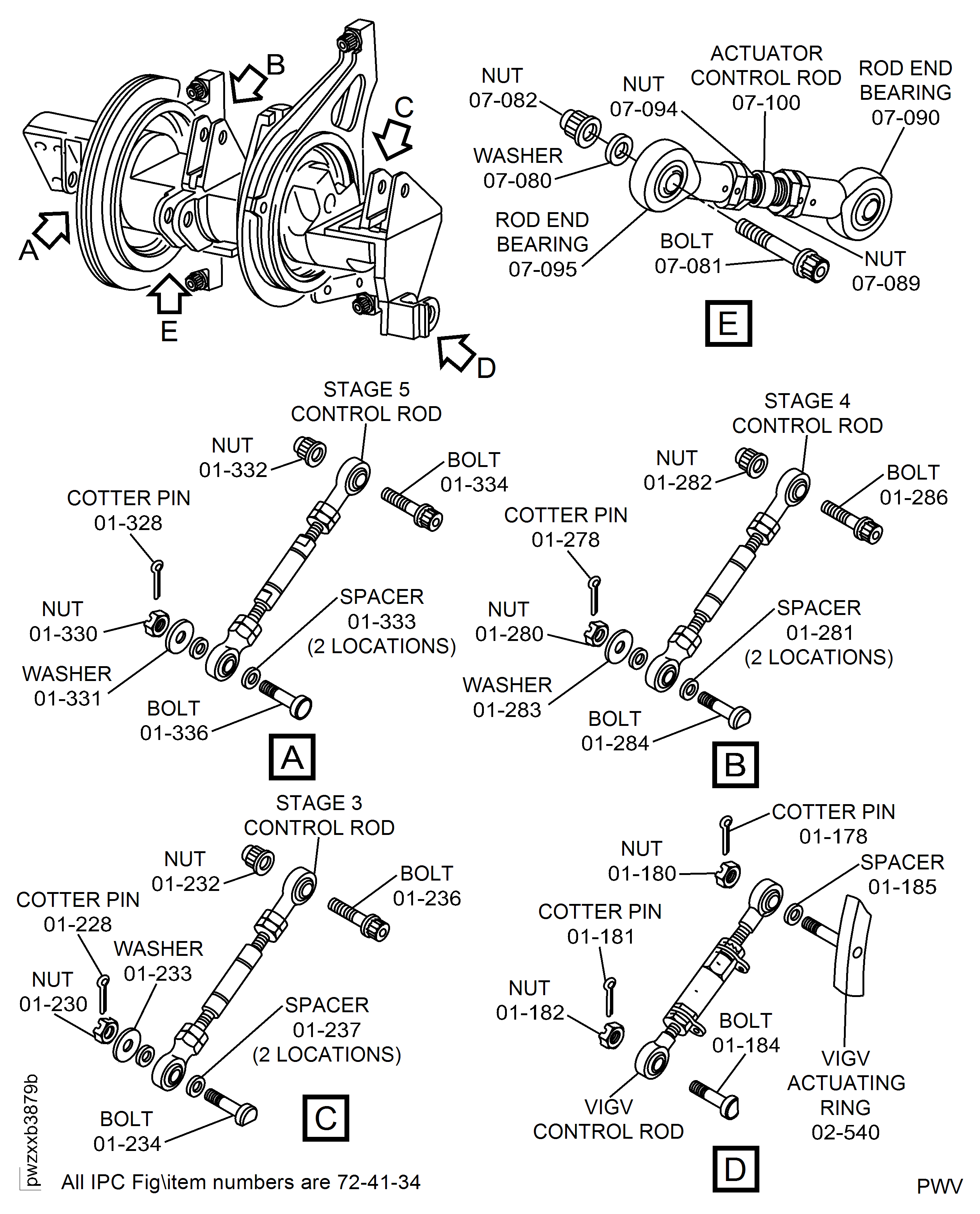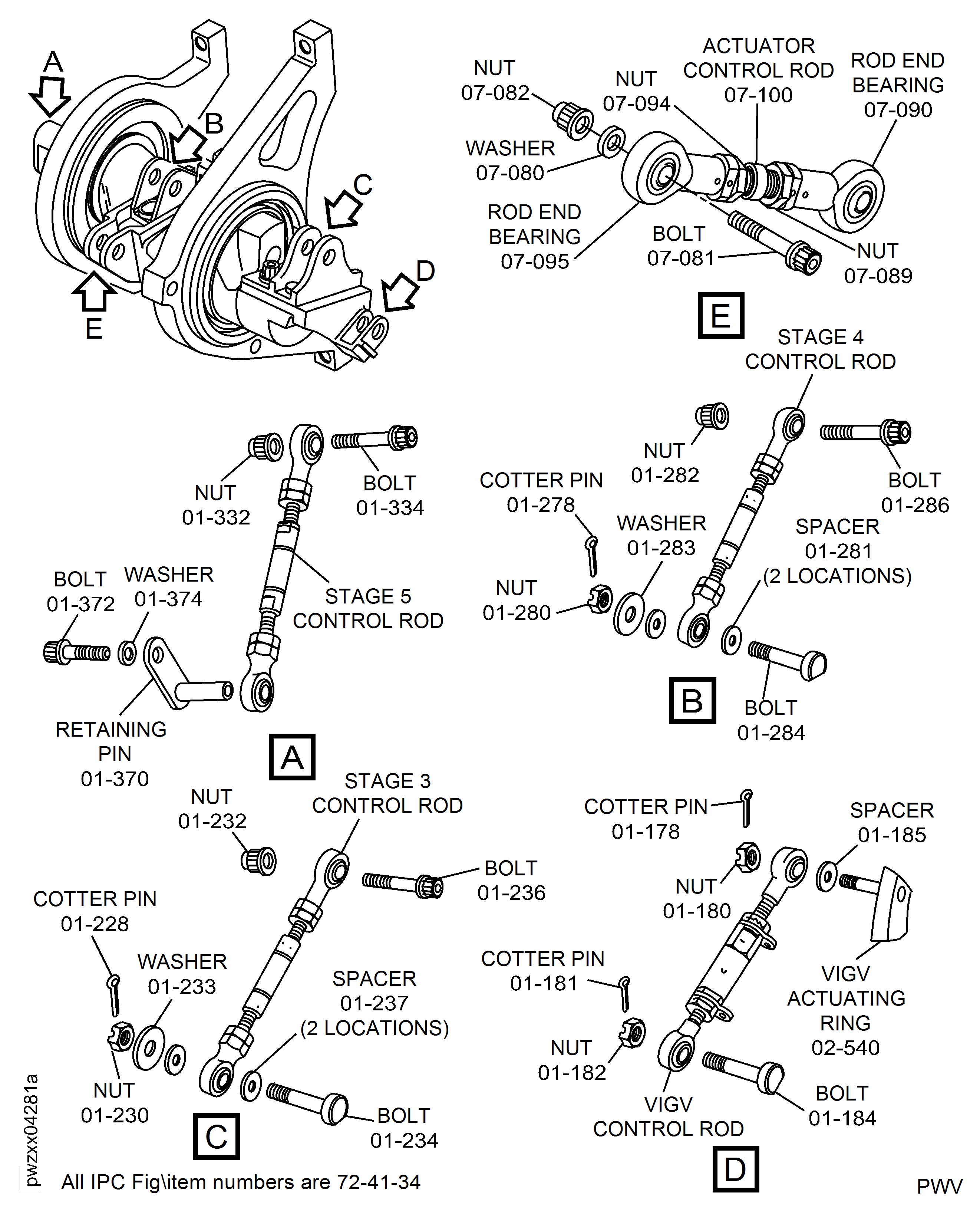 Remove the nut, spacer and bolt which attach the control rod to the VIGV lower actuating ring.