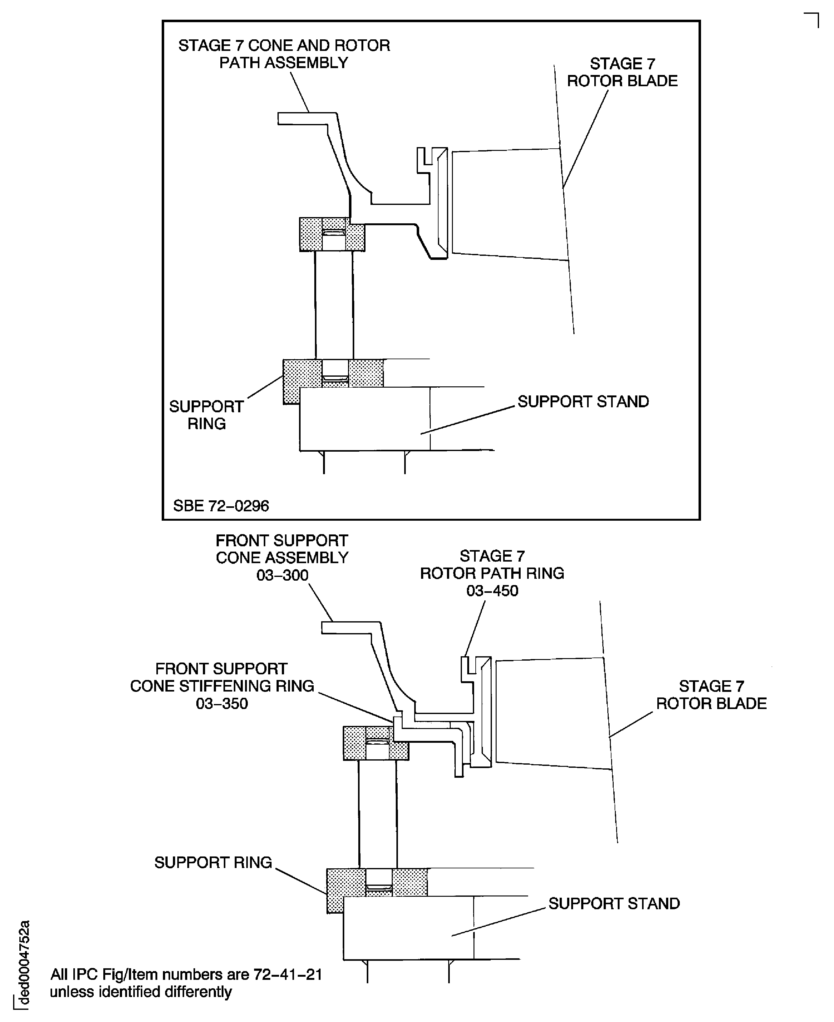 Figure: Pre SBE 72-0296 and SBE 72-0296: Remove the Stage 7 Stator Vanes, Rotor Path Ring and the Front Support Cone