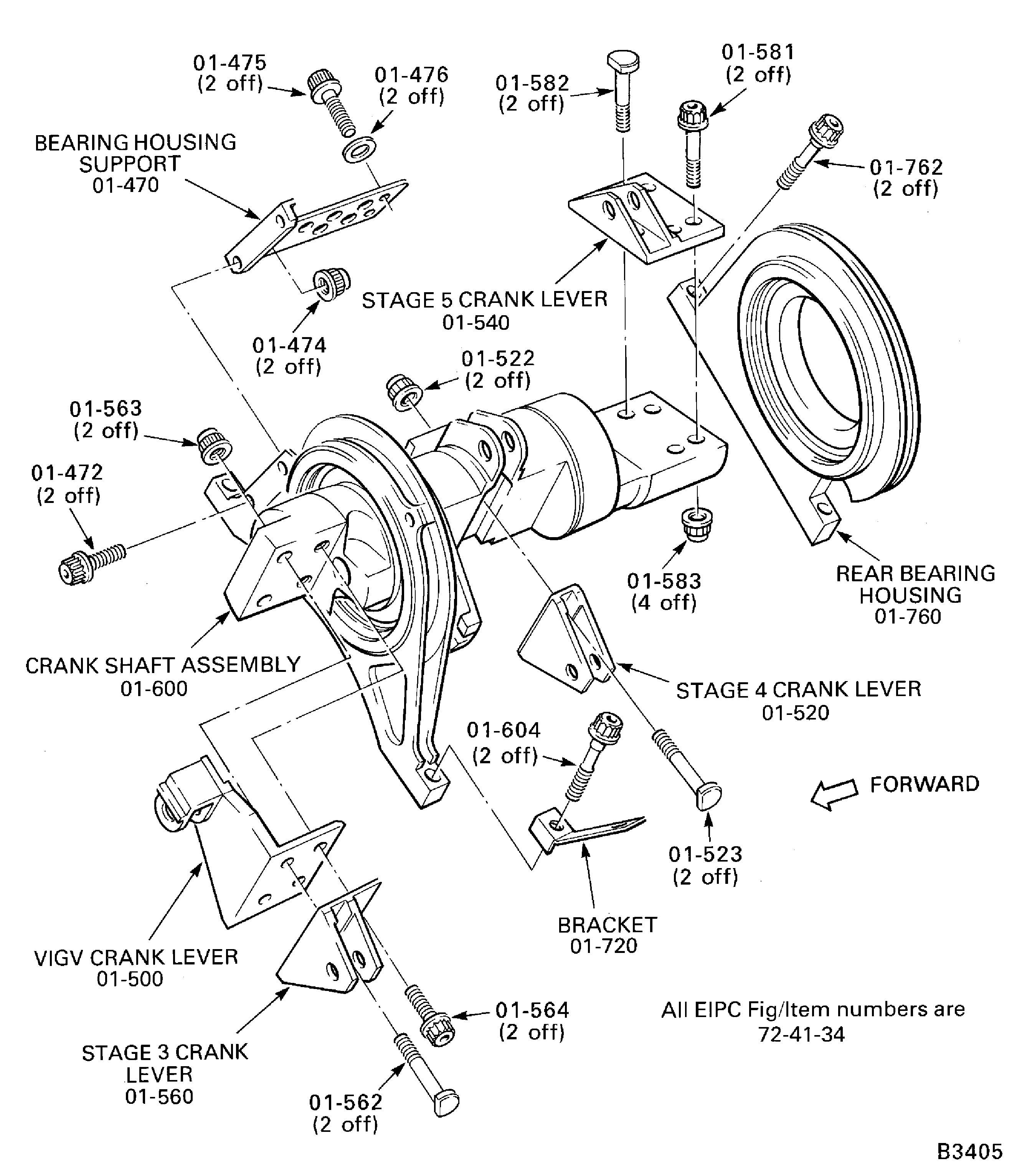SBE 72-0406: Actuating mechanism HPC variable vanes - introduction of a fully machined from bar crankshaft assembly.