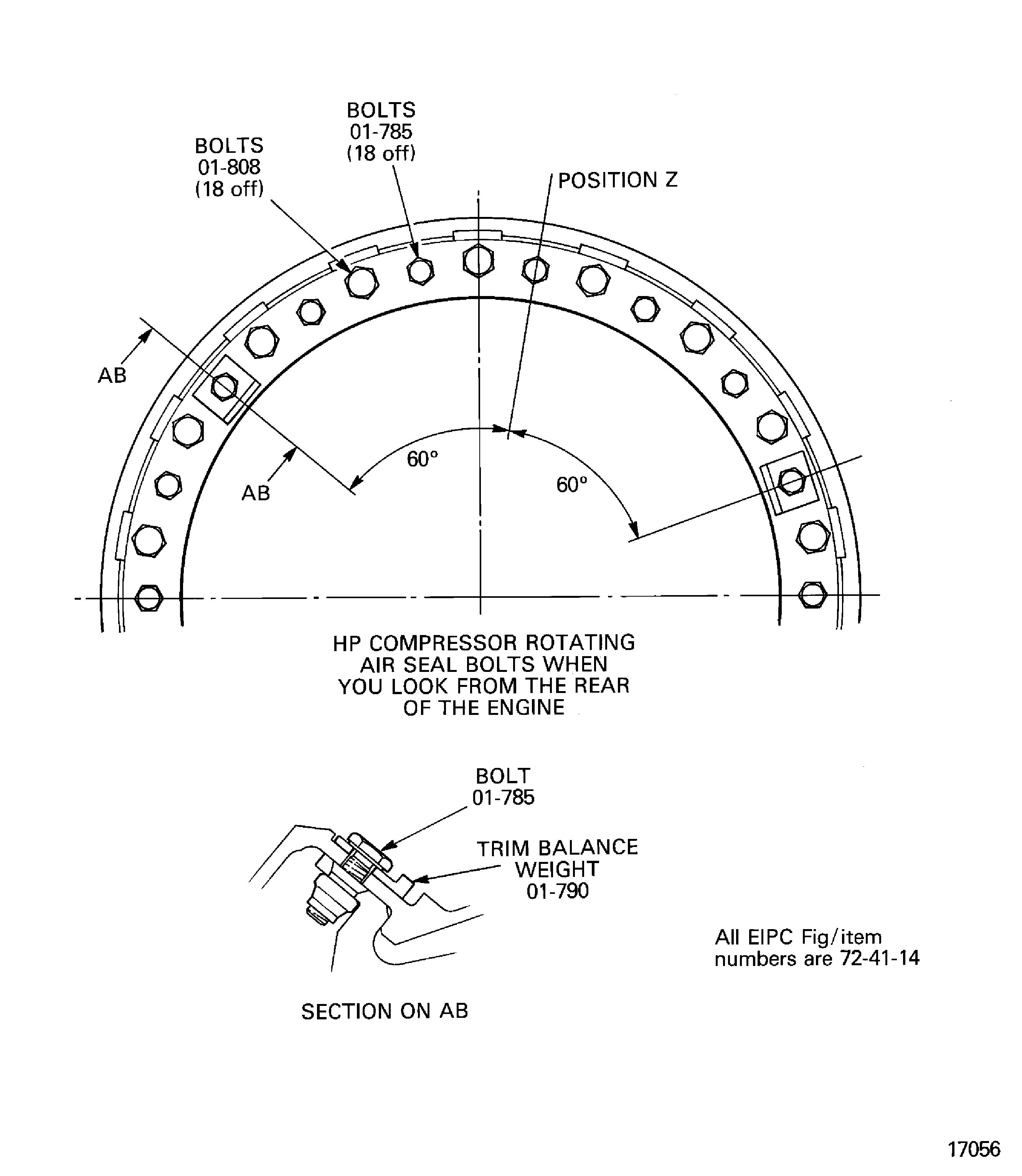 From the position (position Z) found in Step identify the air seal bolt ENGINE-HP COMPRESSOR ROTATING AIR SEALS (72-41-14, 01-785) which is nearest to the angle found in Step. Do this on each side of position Z.