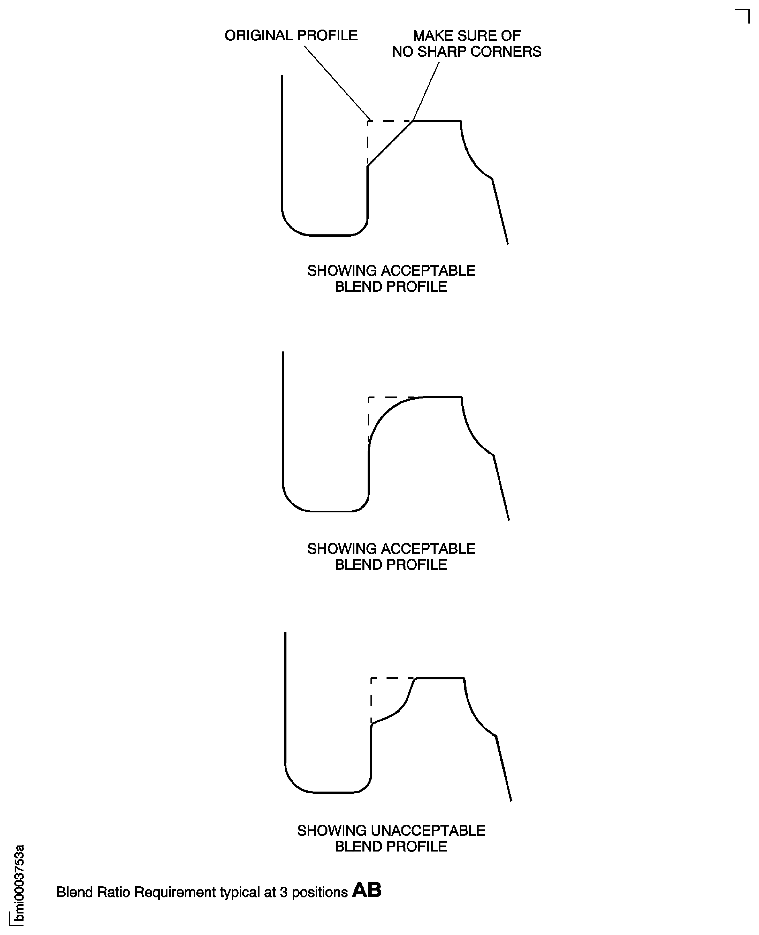 Consider the post repair dimensions, blend depth and blend ratio.Mark adjacent surface with the location and circumferential length of previous blend repairs.