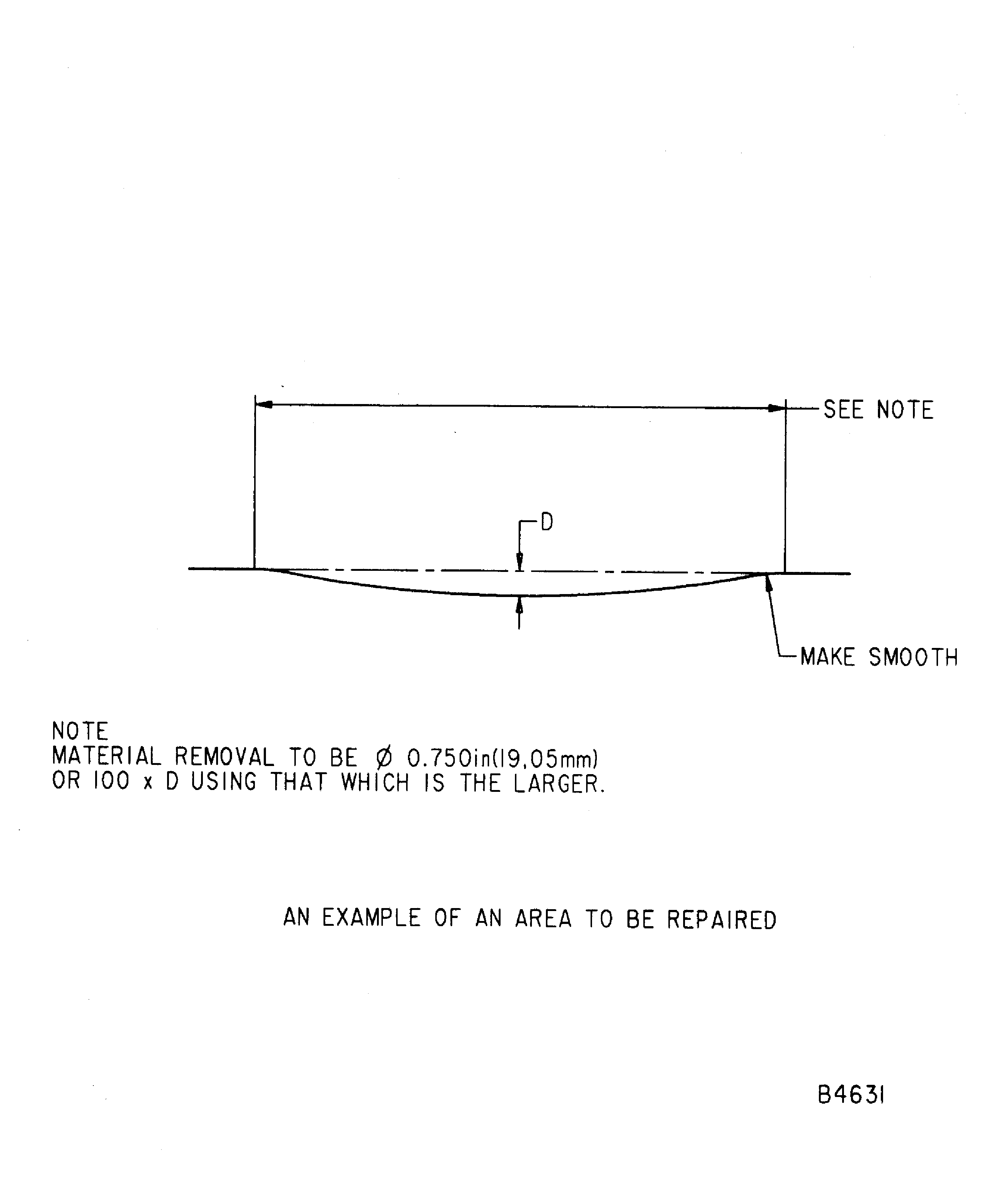 Keep material removal to the larger limit of 0.750in. (19.05 mm), or 100 X D.Remove the damaged material, from the Zone(s) on the front face, as necessary. Do not remove more than is necessary.