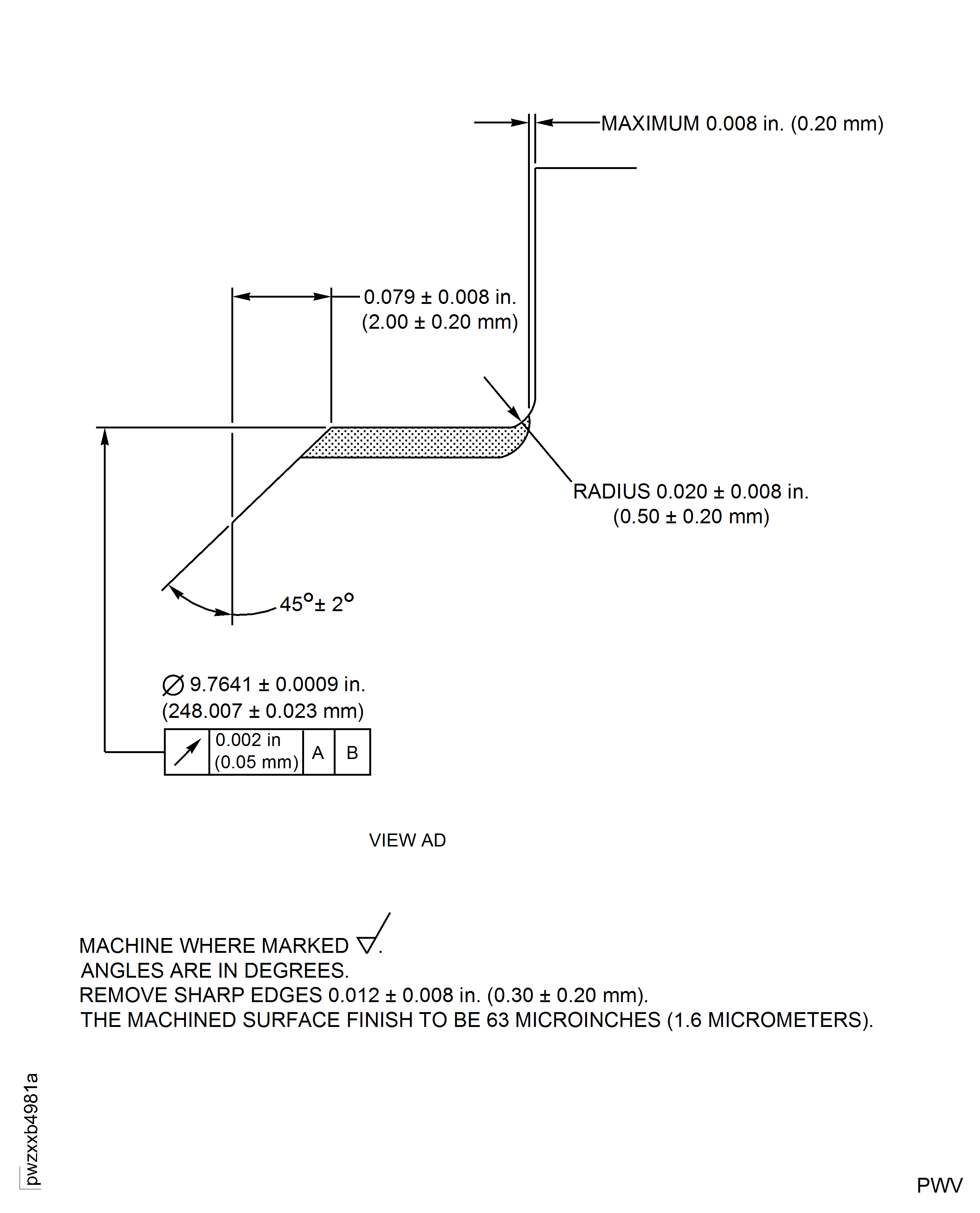 Figure: HP Compressor Rear Rotating Airseal - Repair Details and Dimensions - Assembly A