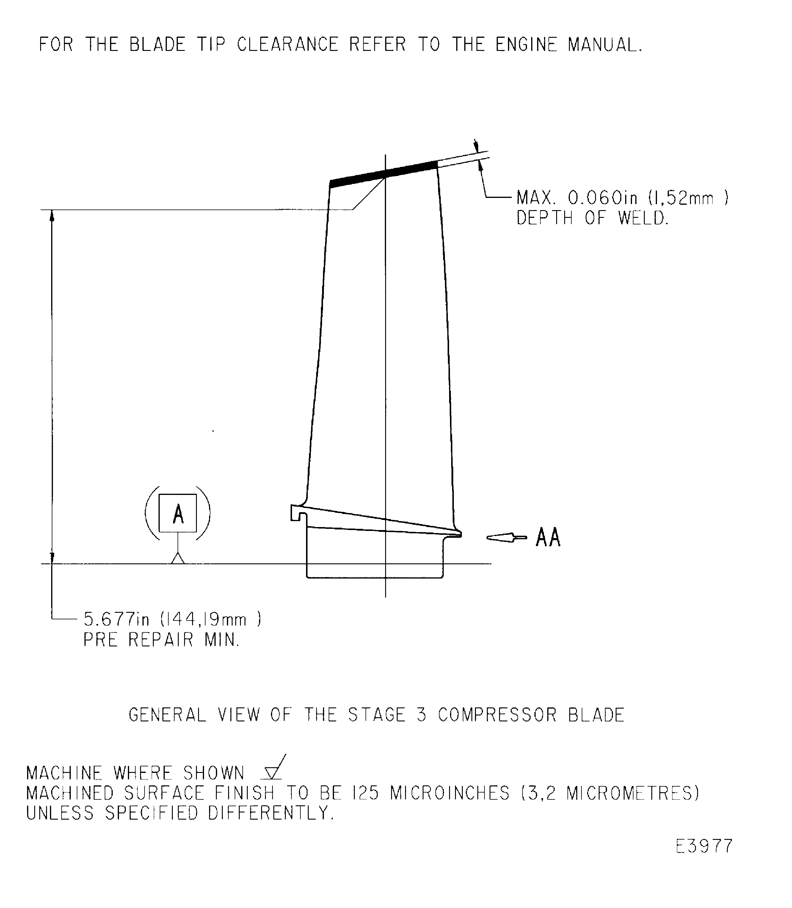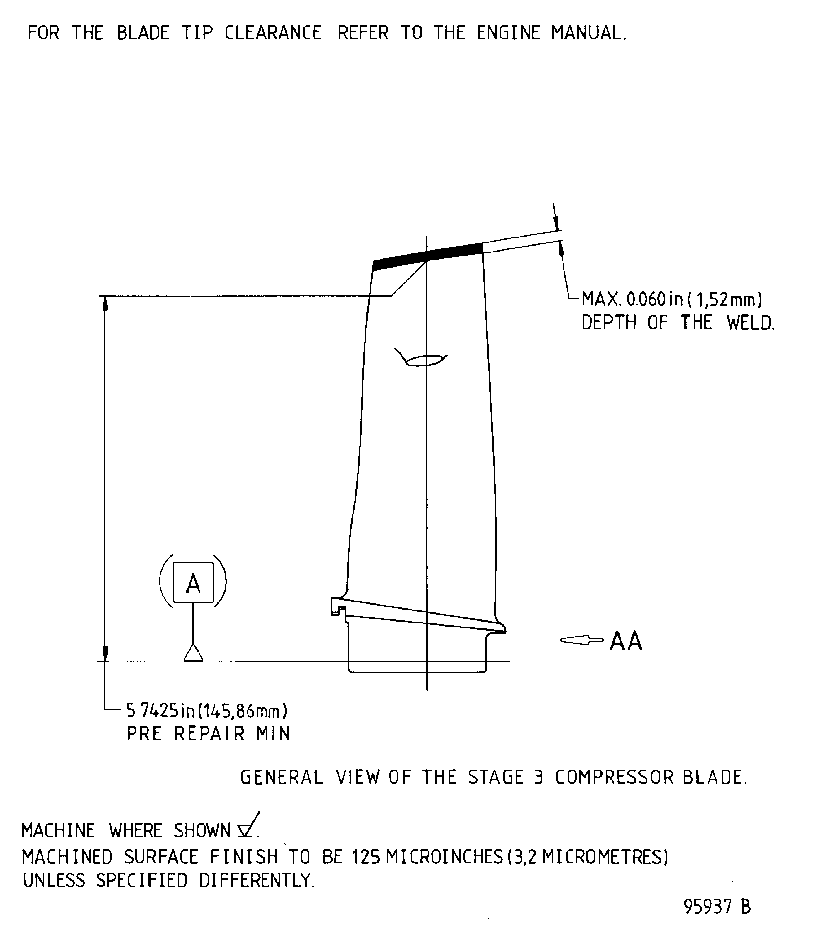 This repair restores the HP compressor rotor blade, stage 3 tip length by welding.