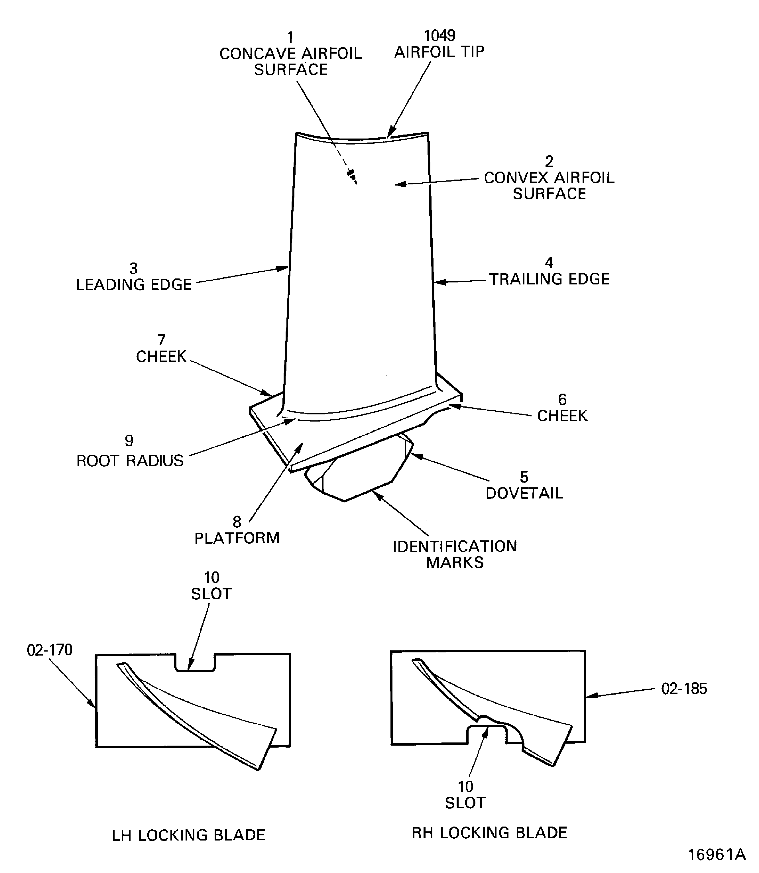 SUBTASK 72-41-15-220-199 Examine the Stage 6 Rotor Blades Concave and Convex Airfoil Surface Finish at Locations 1 and 2, Platform at Location 8 and Root Radius at Location 9