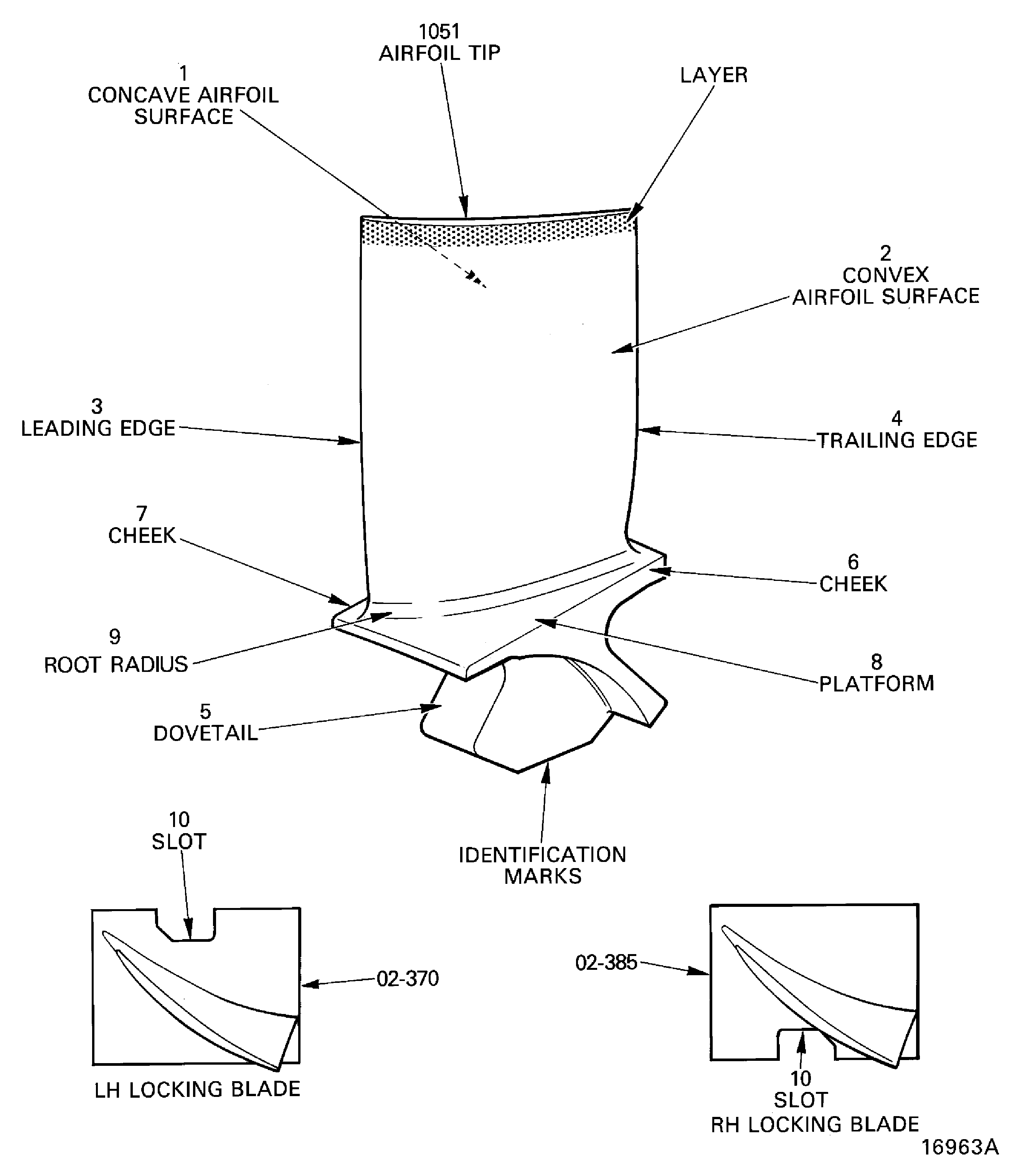 SUBTASK 72-41-15-220-201 Examine the Stage 8 Rotor Blades Concave and Convex Airfoil Surface Finish at Locations 1 and 2, Platform at Location 8 and Root Radius at Location 9