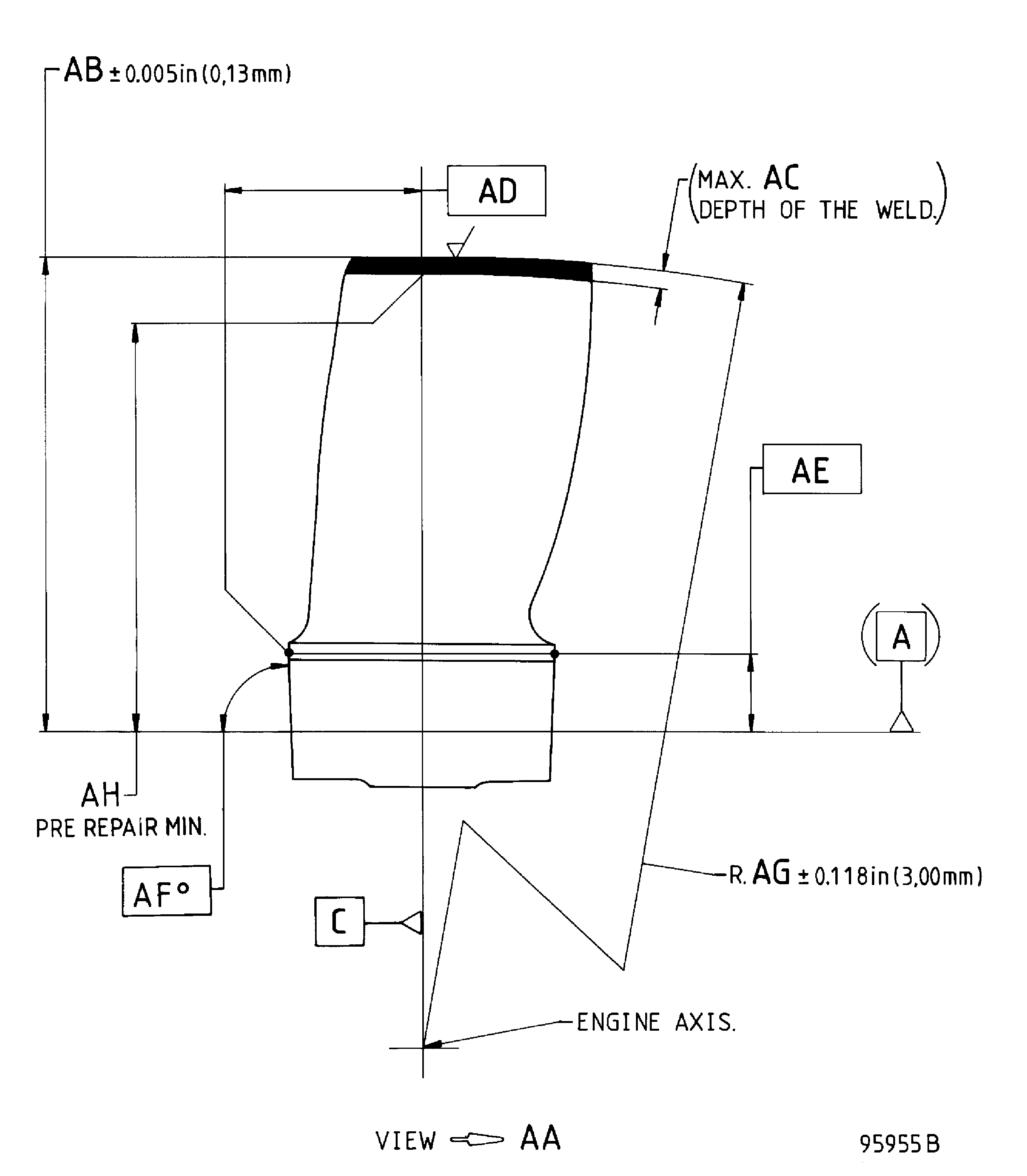 This repair restores the HP compressor rotor blade, stage 10 tip length by welding.