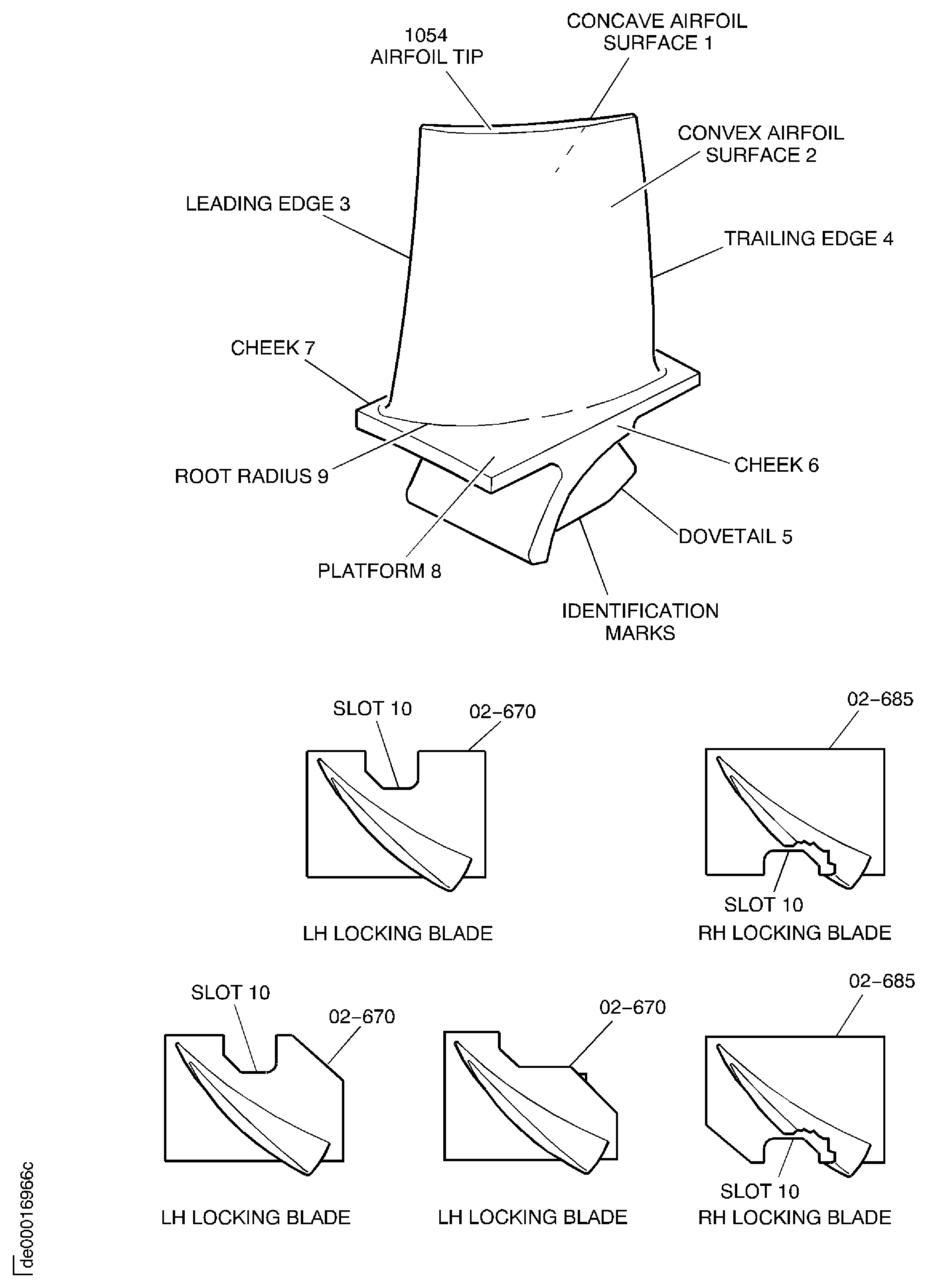 SUBTASK 72-41-15-220-204 Examine the Stage 11 Rotor Blade Concave and Convex Airfoil Surface Finish at Locations 1 and 2, Platform at Location 8 and Root Radius at Location 9