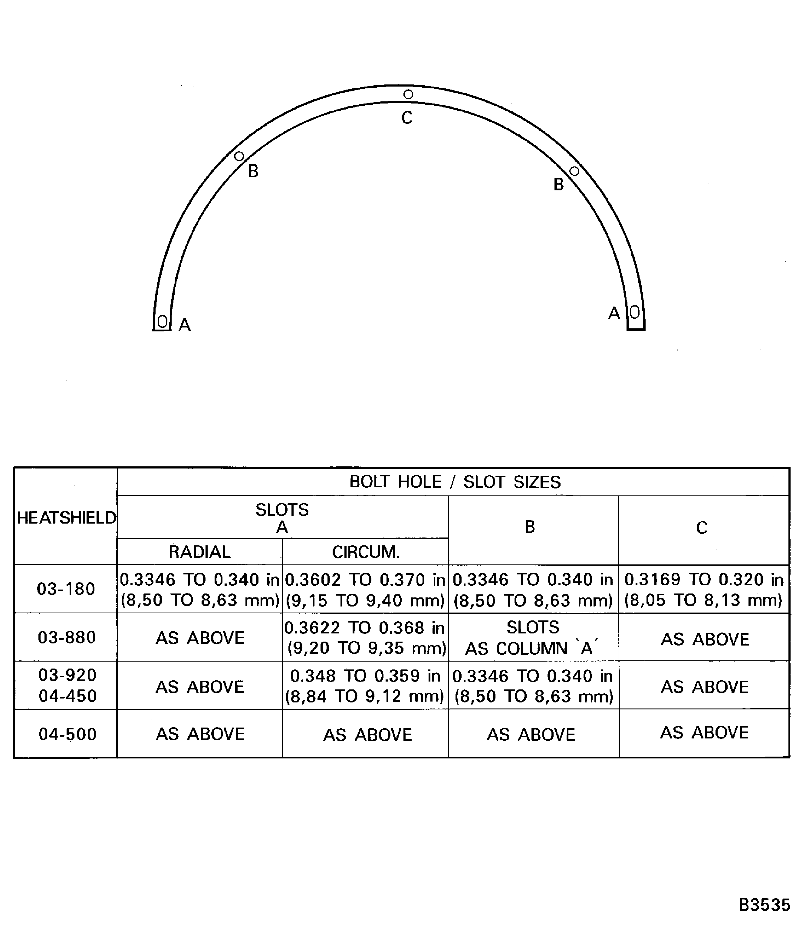 Wear limits on heatshield bolt holes Pre SBE 72-0296