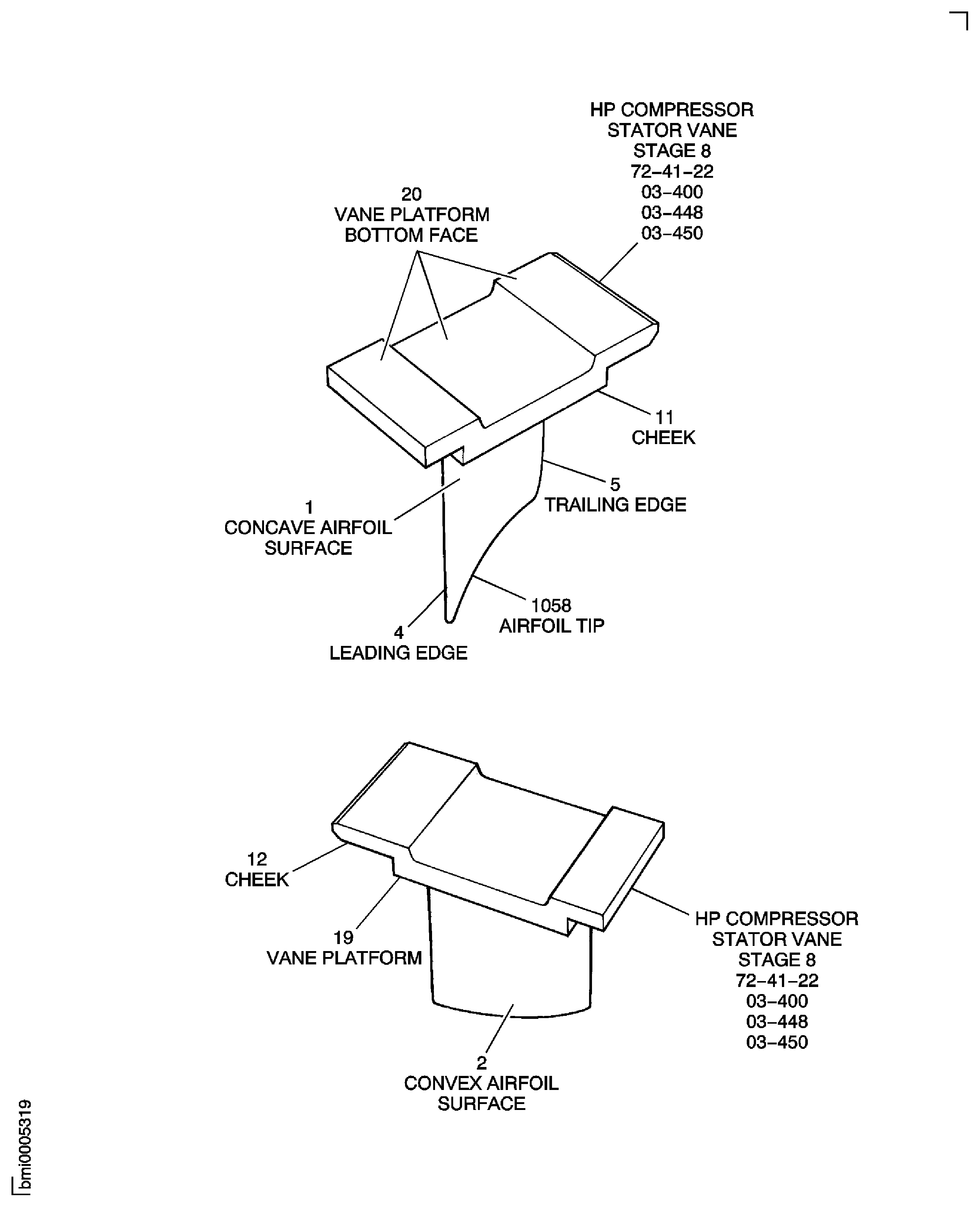 SUBTASK 72-41-22-220-110 Examine the Stage 8 Stator Vanes (03-150, 03-200, 03-250, 03-350, 03-400, 03-448 and 03-450) all Remaining Surfaces