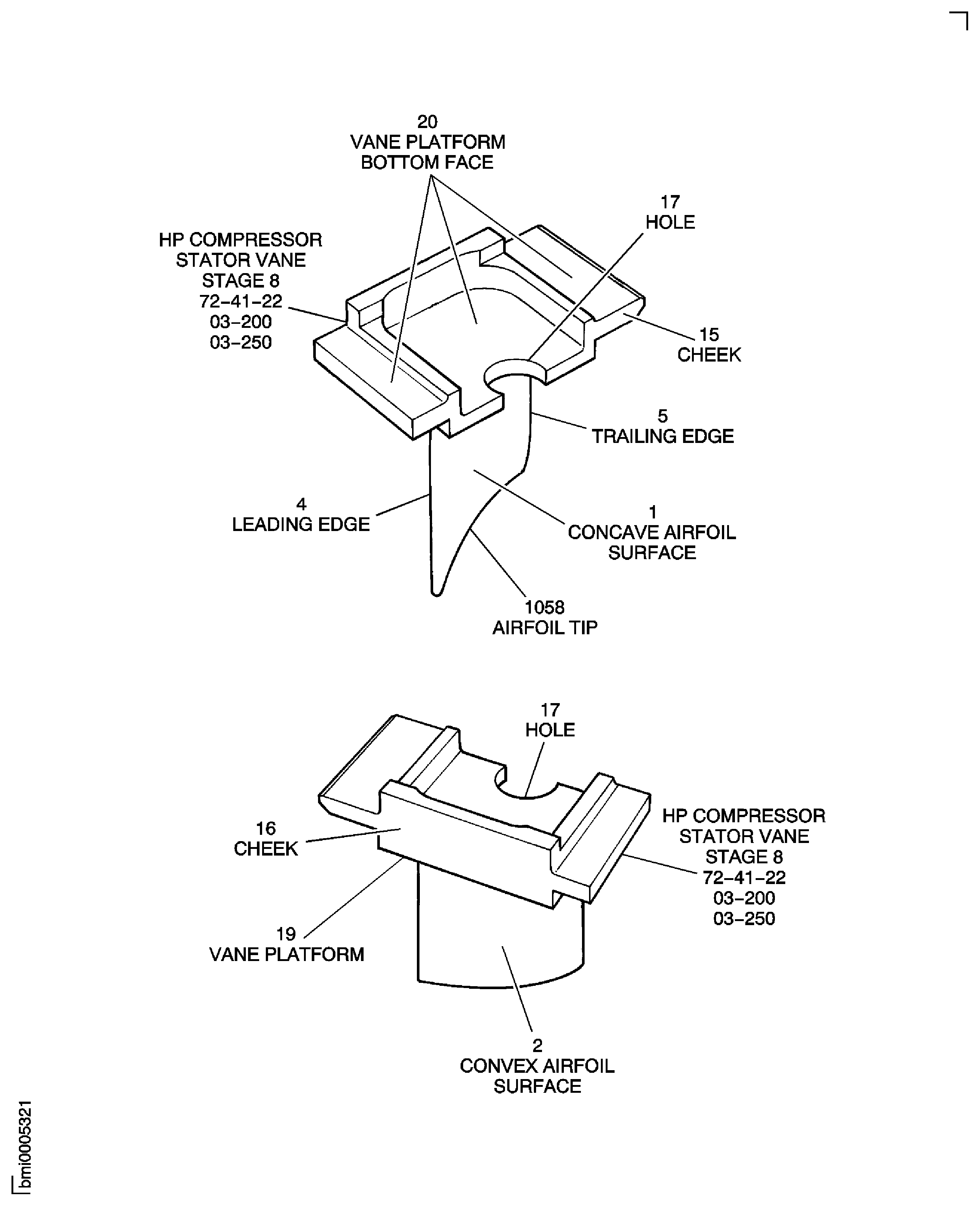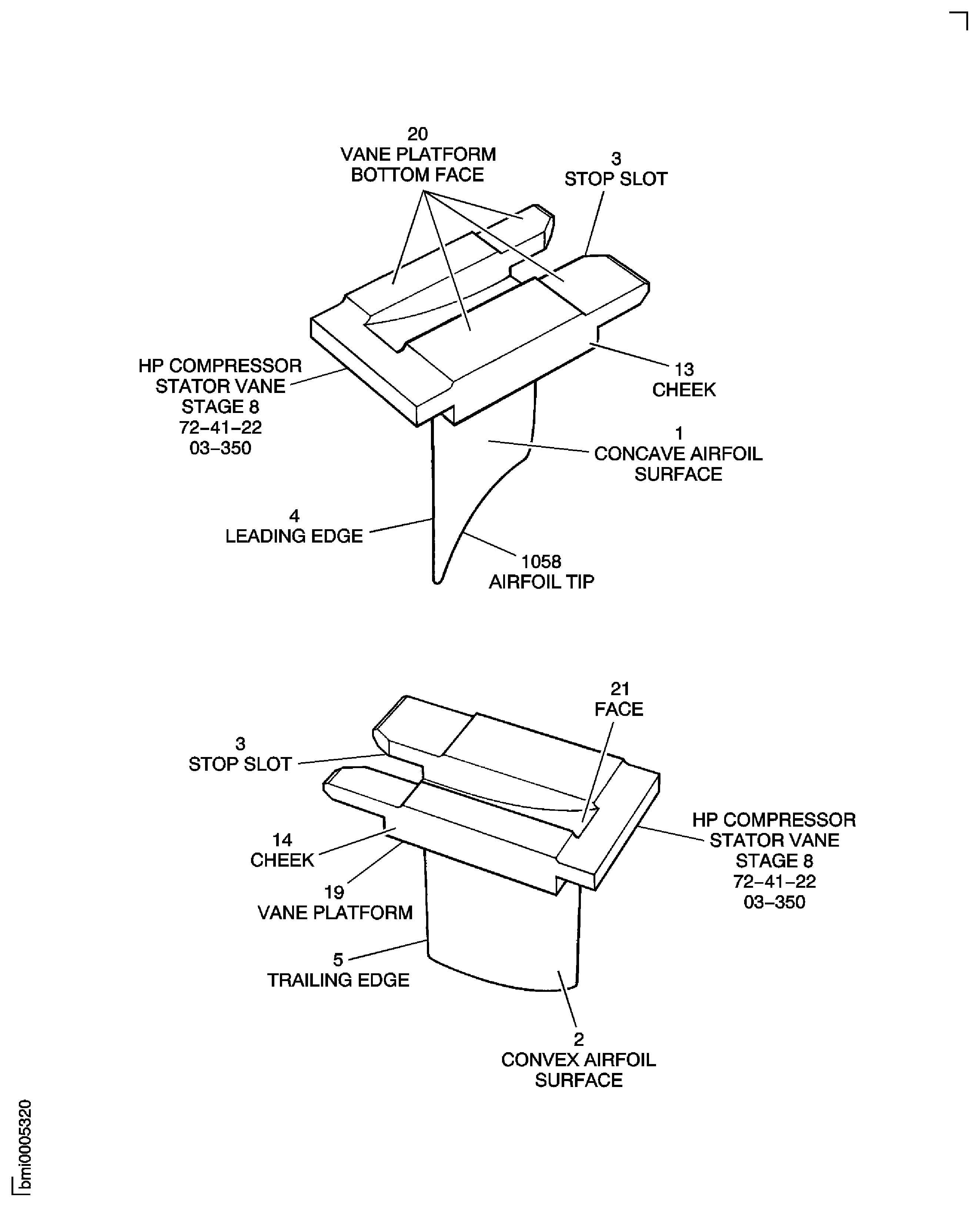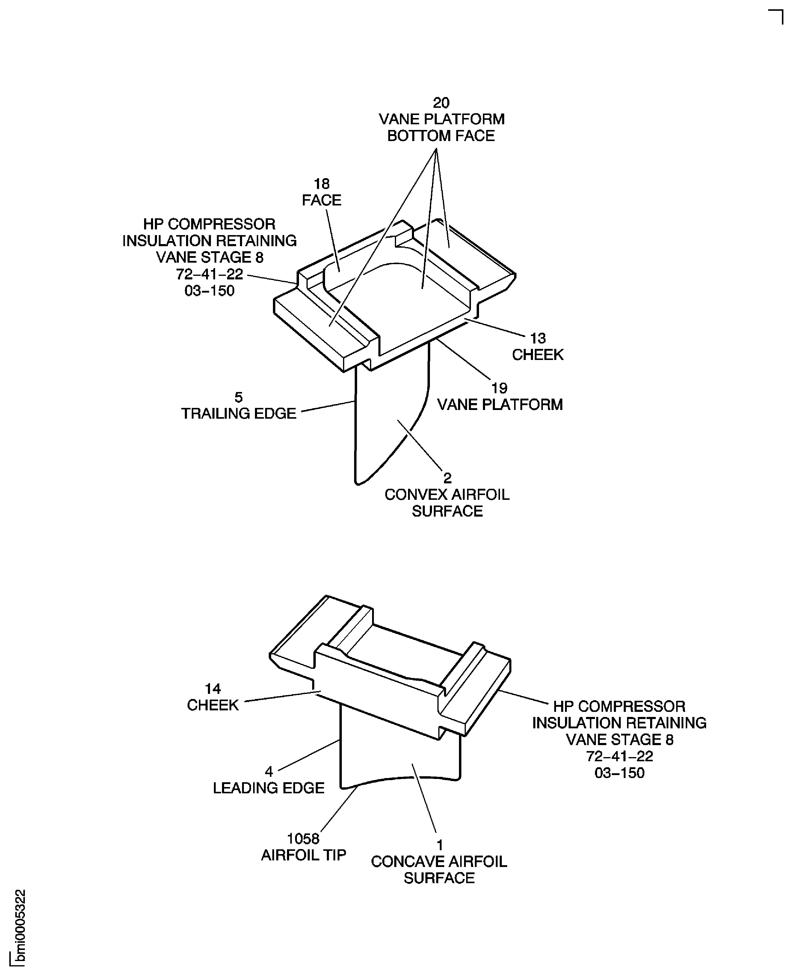 SUBTASK 72-41-22-220-108-B00 Examine the Stage 8 Stator Vanes ((72-41-22,03-150), (72-41-22,03-200), (72-41-22,03-250), (72-41-22,03-350), (72-41-22,03-400), (72-41-22,03-448) and (72-41-22,03-450)) Airfoil Tips at Location 1058 for Cracks and Rubs (A5 parts only) (Pre SBE 70-0714, SBE 70-0714, SBE 70-0726, SBE 72-0441 and SBE 72-0561)