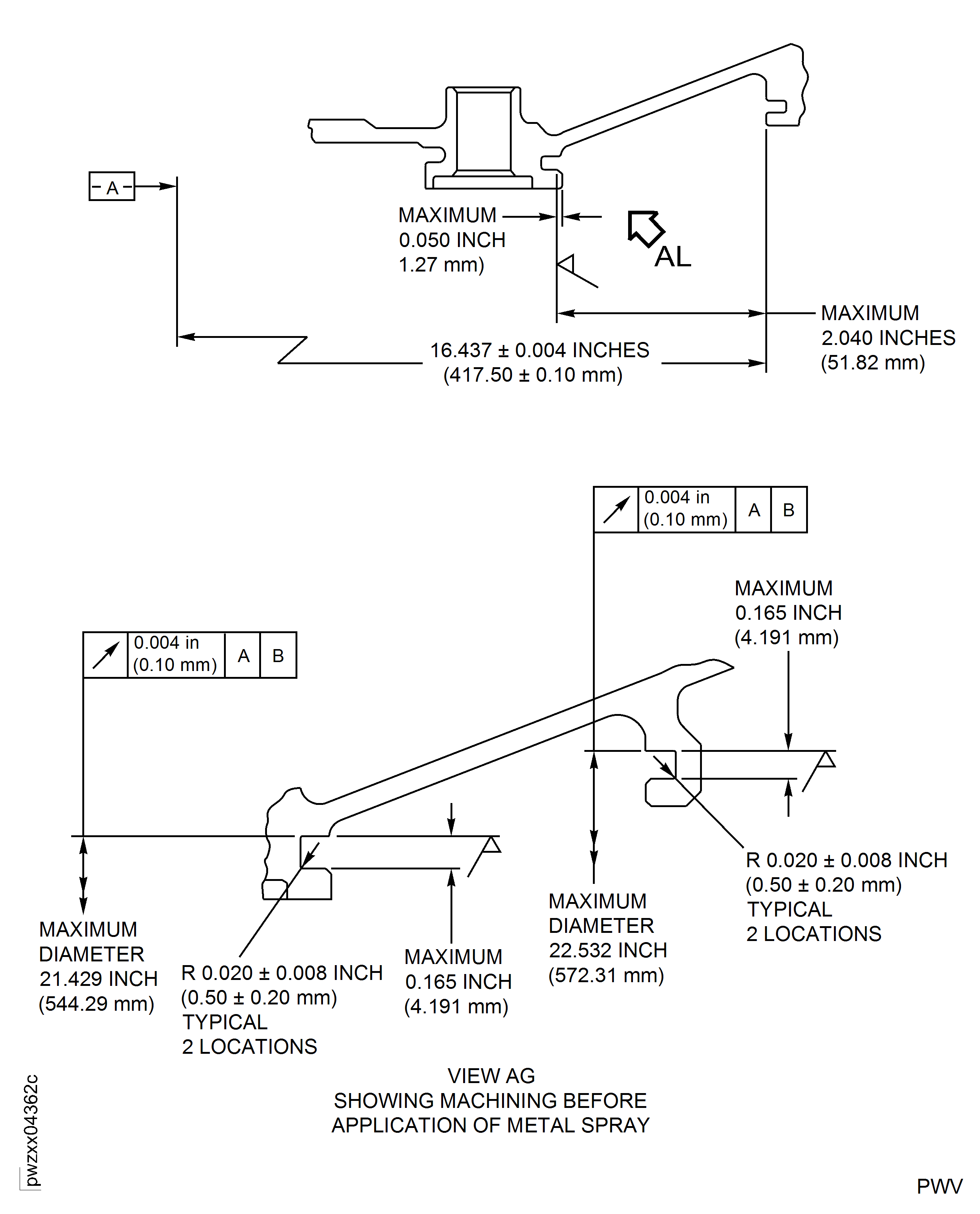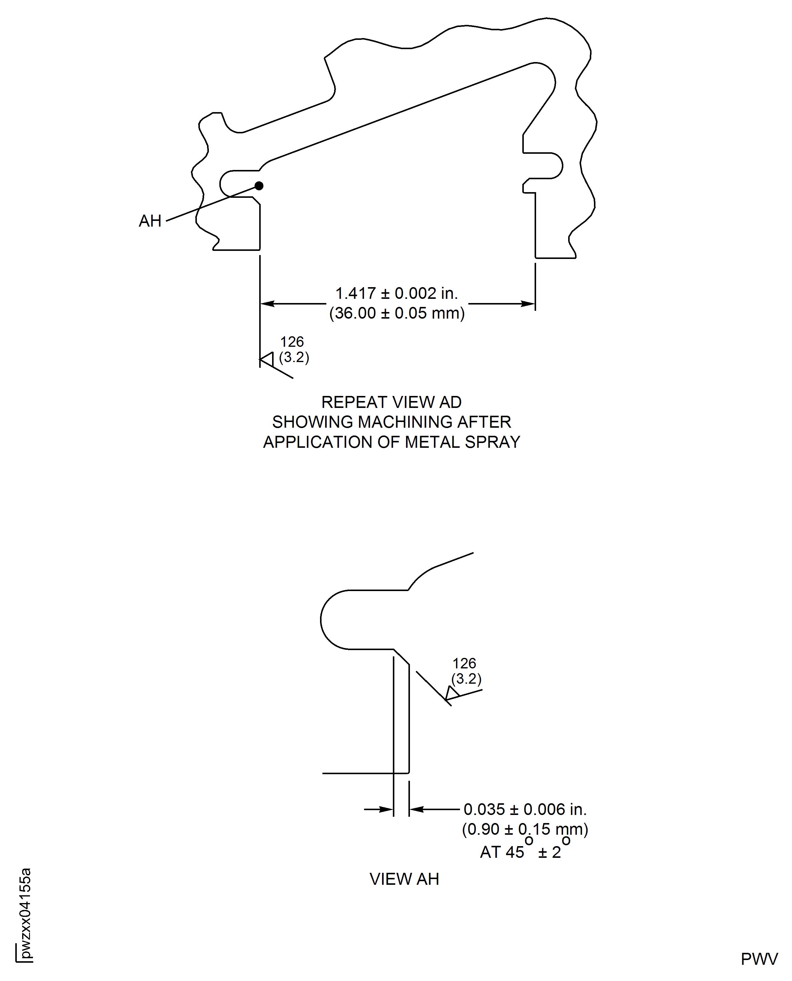 The maximum slot width before repair must not be more than 0.165 in. (4.191 mm). The maximum depth of damage on the forward location face before repair must not be more than 0.050 in. (1.27 mm).