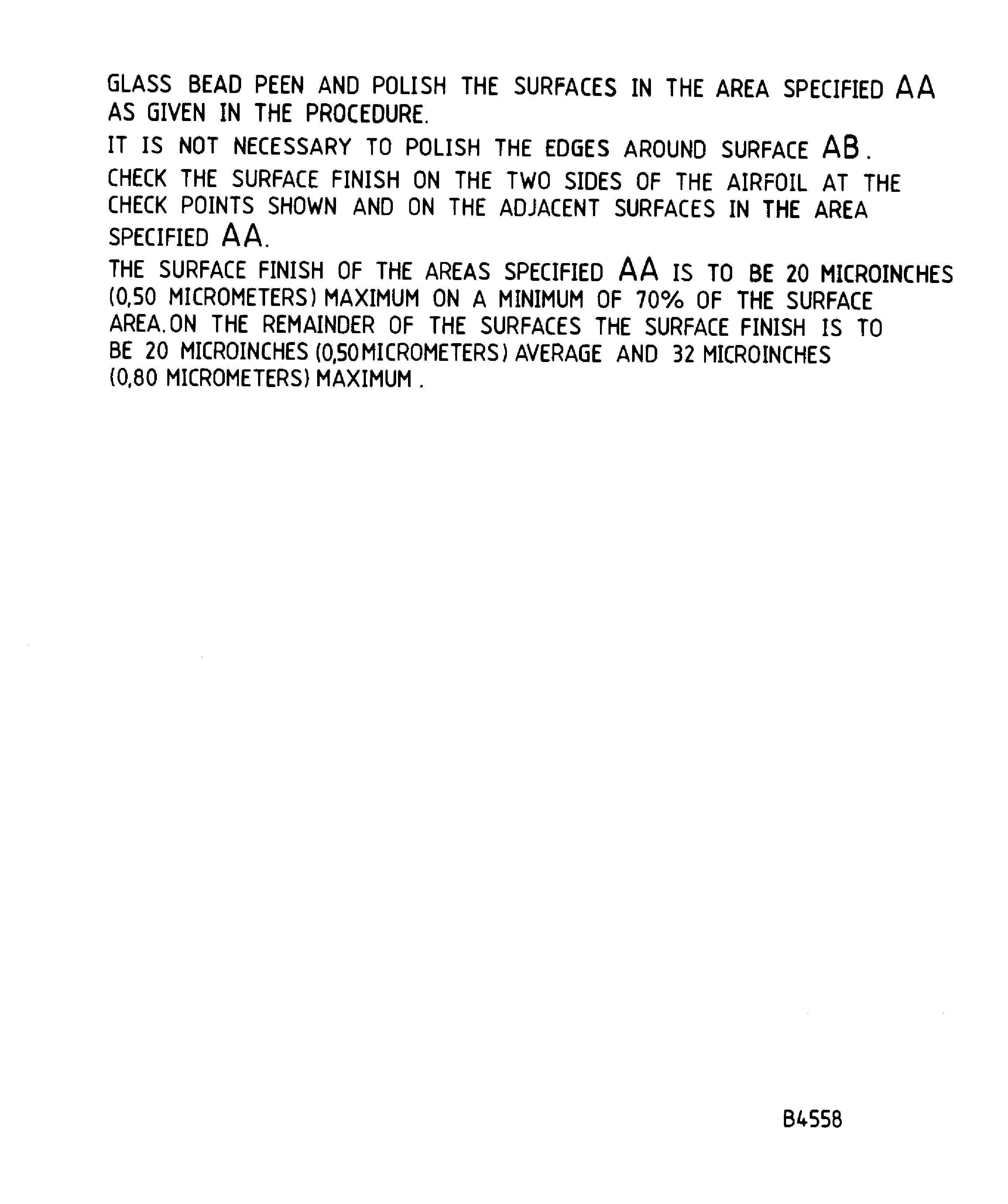 A surface finish of 40 to 80 micro in., (1.0 to 2.0 microns) has to be achieved.