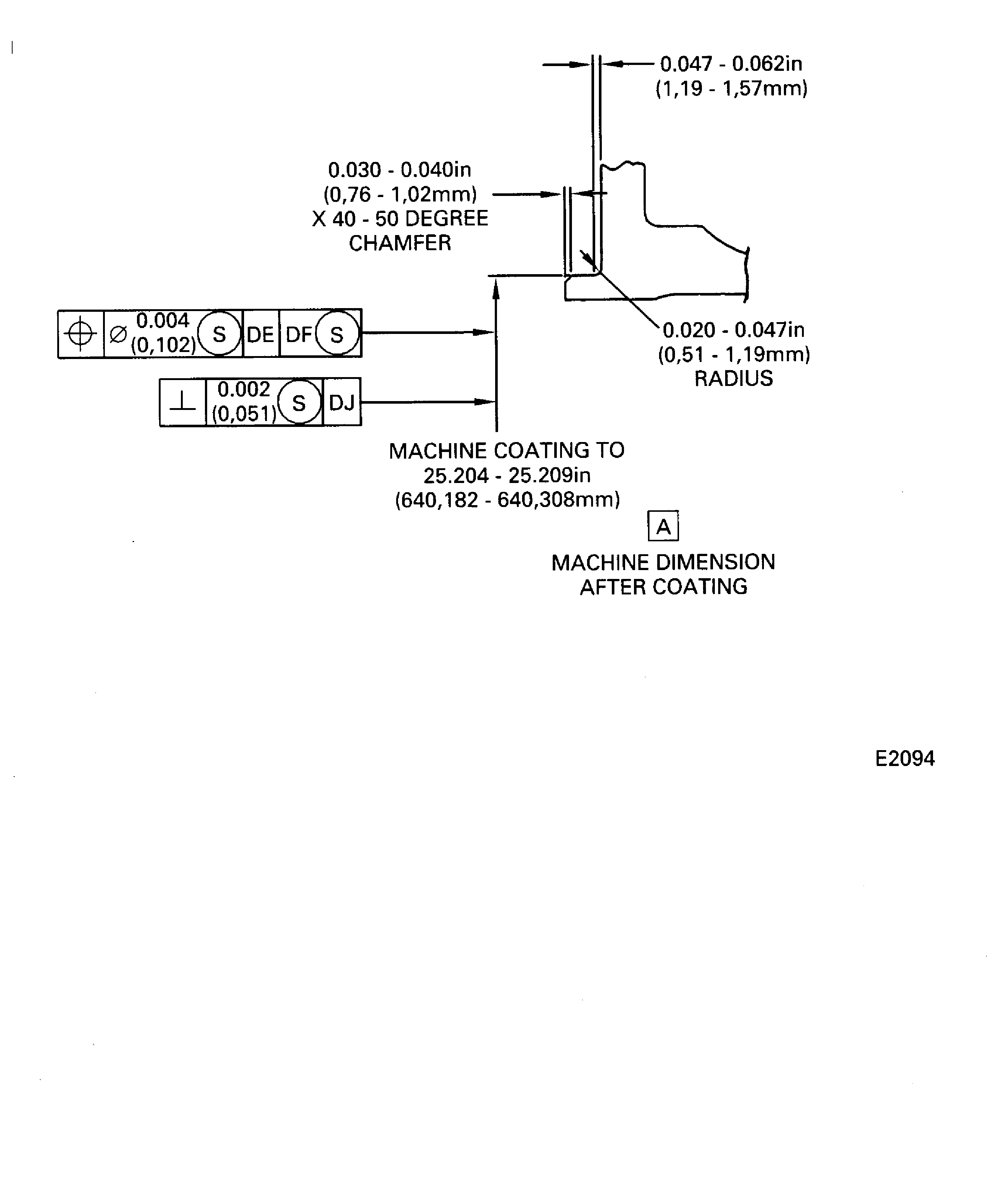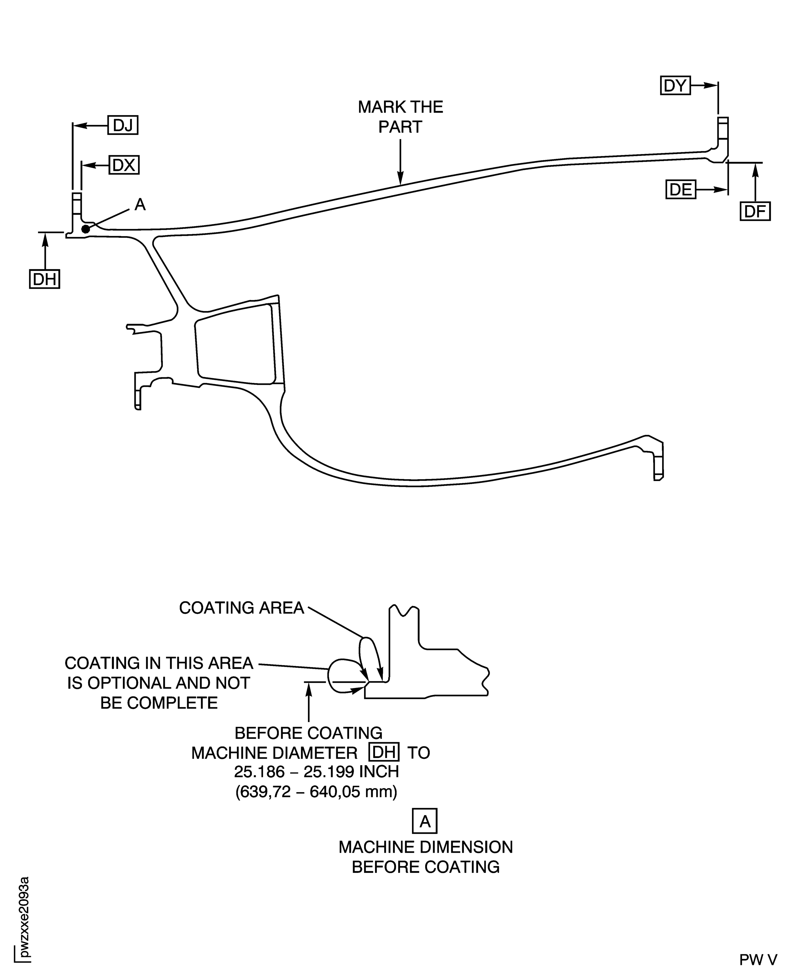 In a free condition, surfaces DJ and DE are flat in 0.010in. (0.254 mm) and diameters DH and DF are between 25.174 and 25.239in. (639.42 and 641.07 mm) and 28.197 and 28.263in. (716.20 and 717.88 mm).