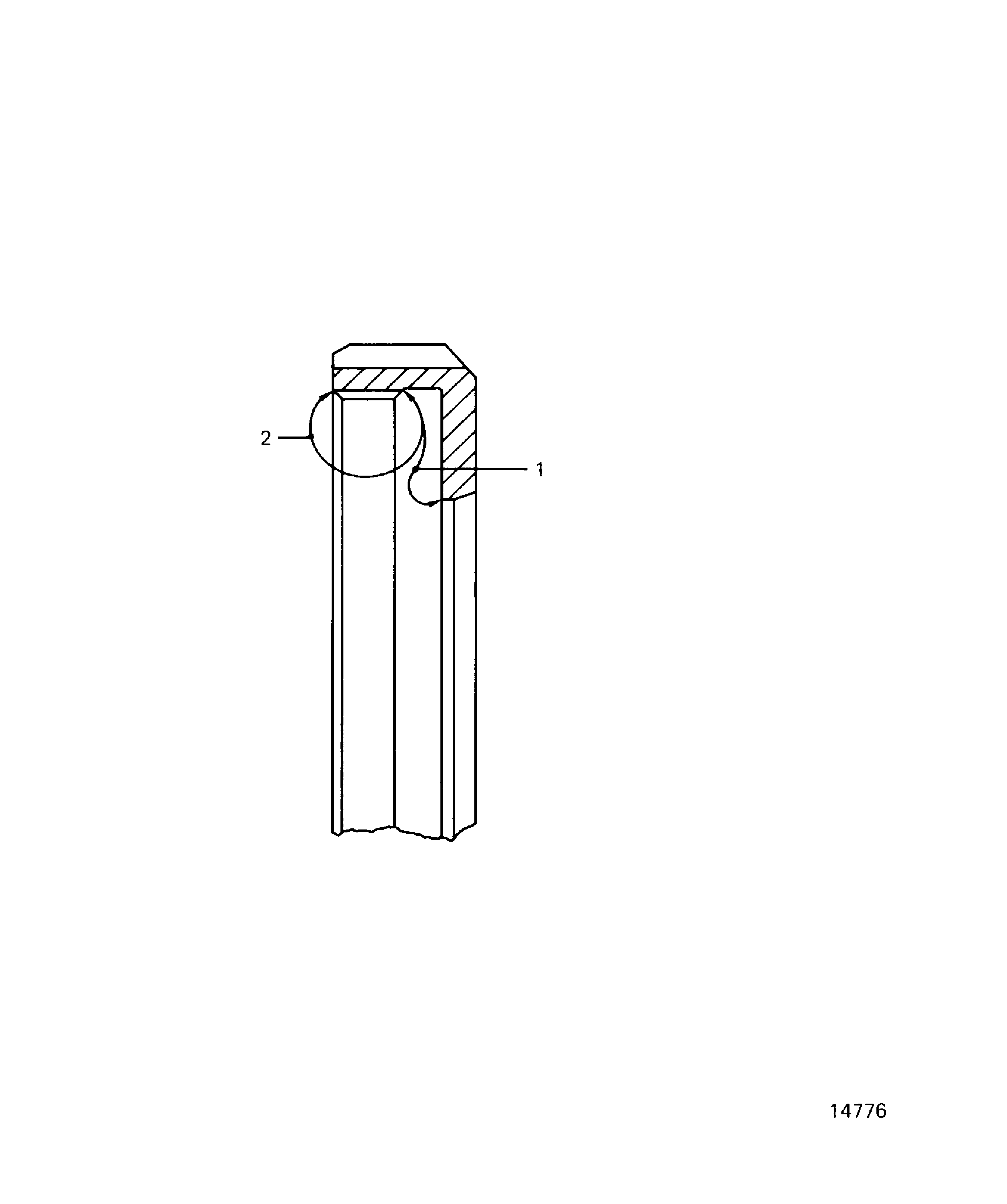 Examine the retaining nut for silver plate on the threads at location 2.