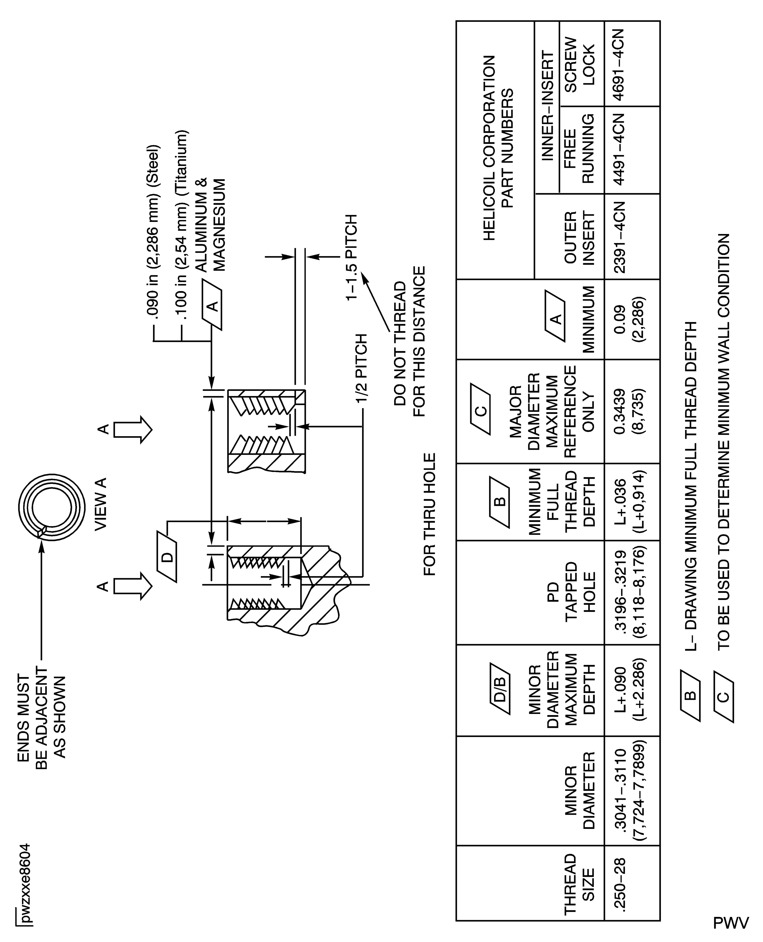 The tools for the removal and the installation of the inserts can be purchased from Helicoil Products Division/Mite Corporation, Supplier Code 01556, Danbury CT 06810. Helicoil part numbers are provided in this repair.