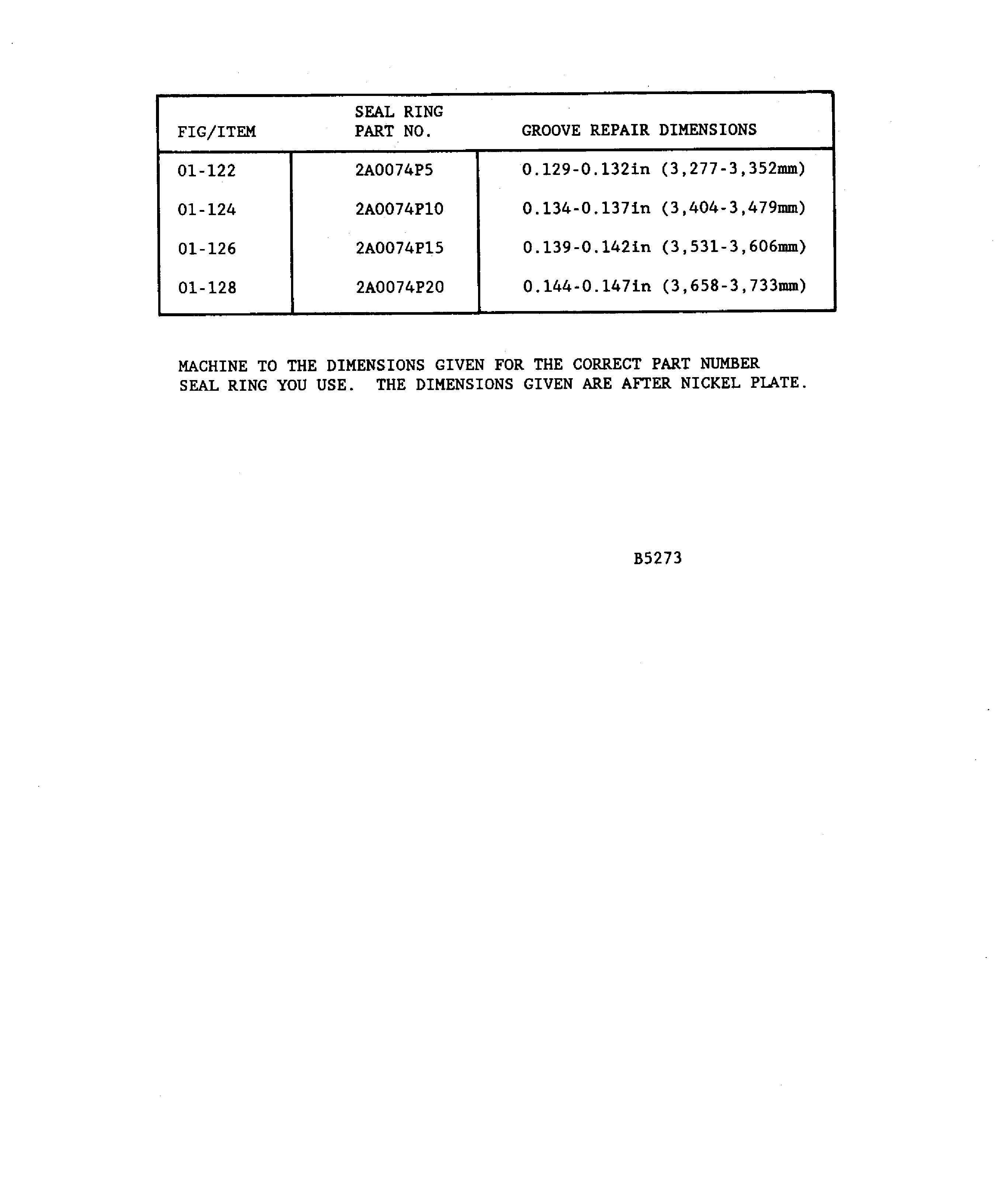 Nickel plate the seal ring groove and the seal ring pilot diameter to a thickness of between 0.0005 and 0.0015 in. (0.013 and 0.038 mm).