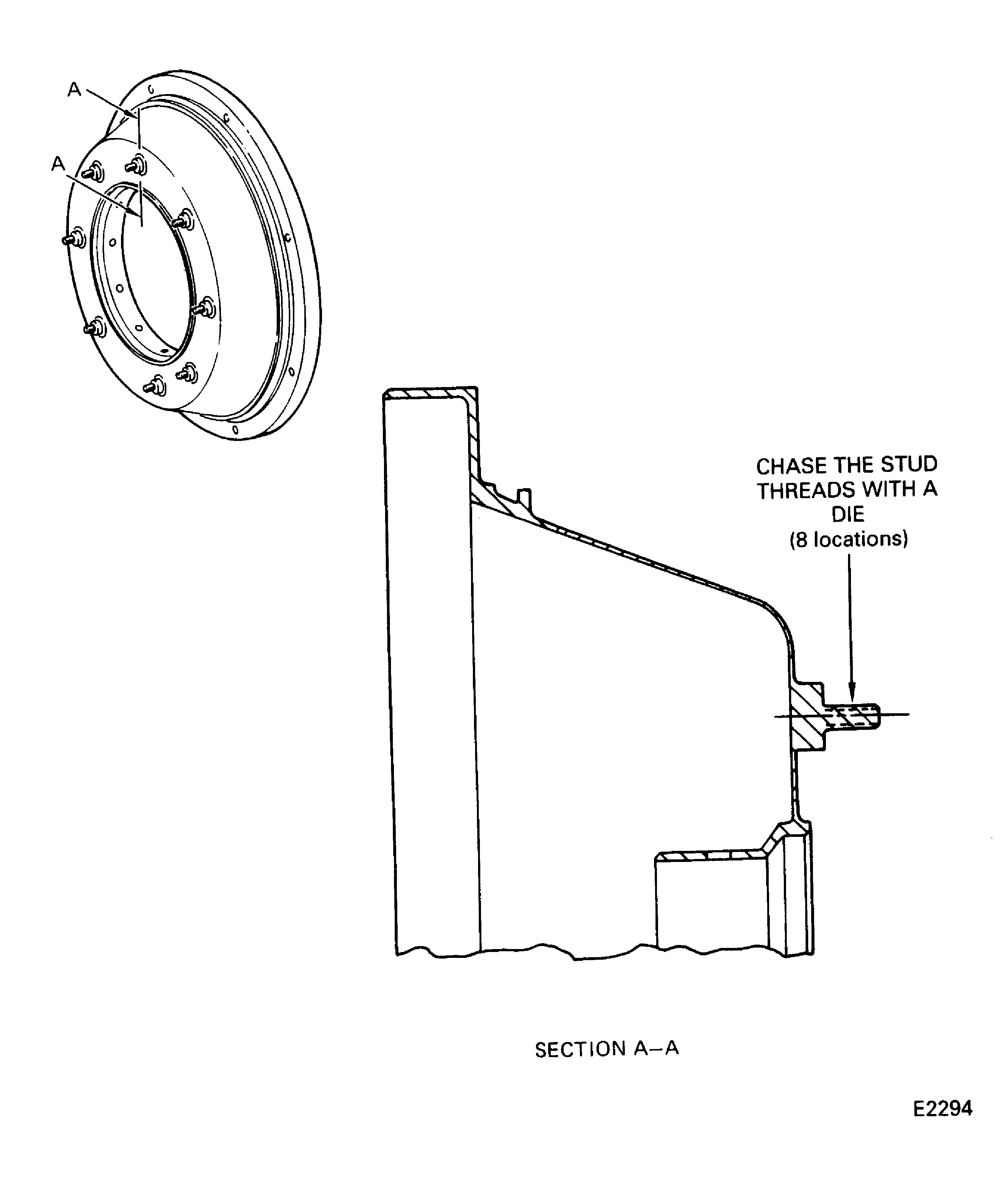 Figure: Chase the stud threads on the No. 4 bearing rear cooling duct