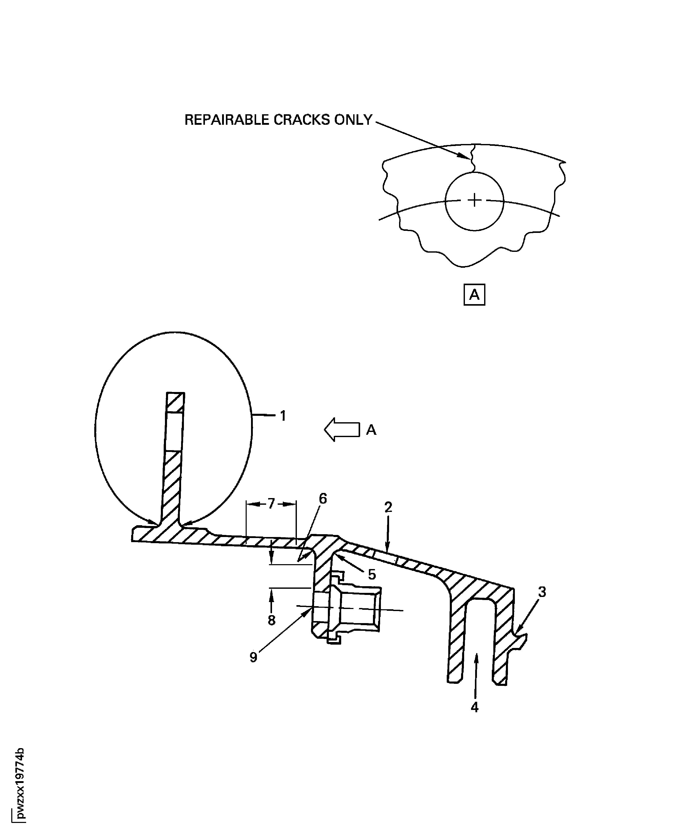 Contact wear/fretting more than 0.015 in. (0.38 mm) deep at location 8. Damage must not be longer than 0.200 in. (5.08 mm), must not extend into location 9 bolt holes