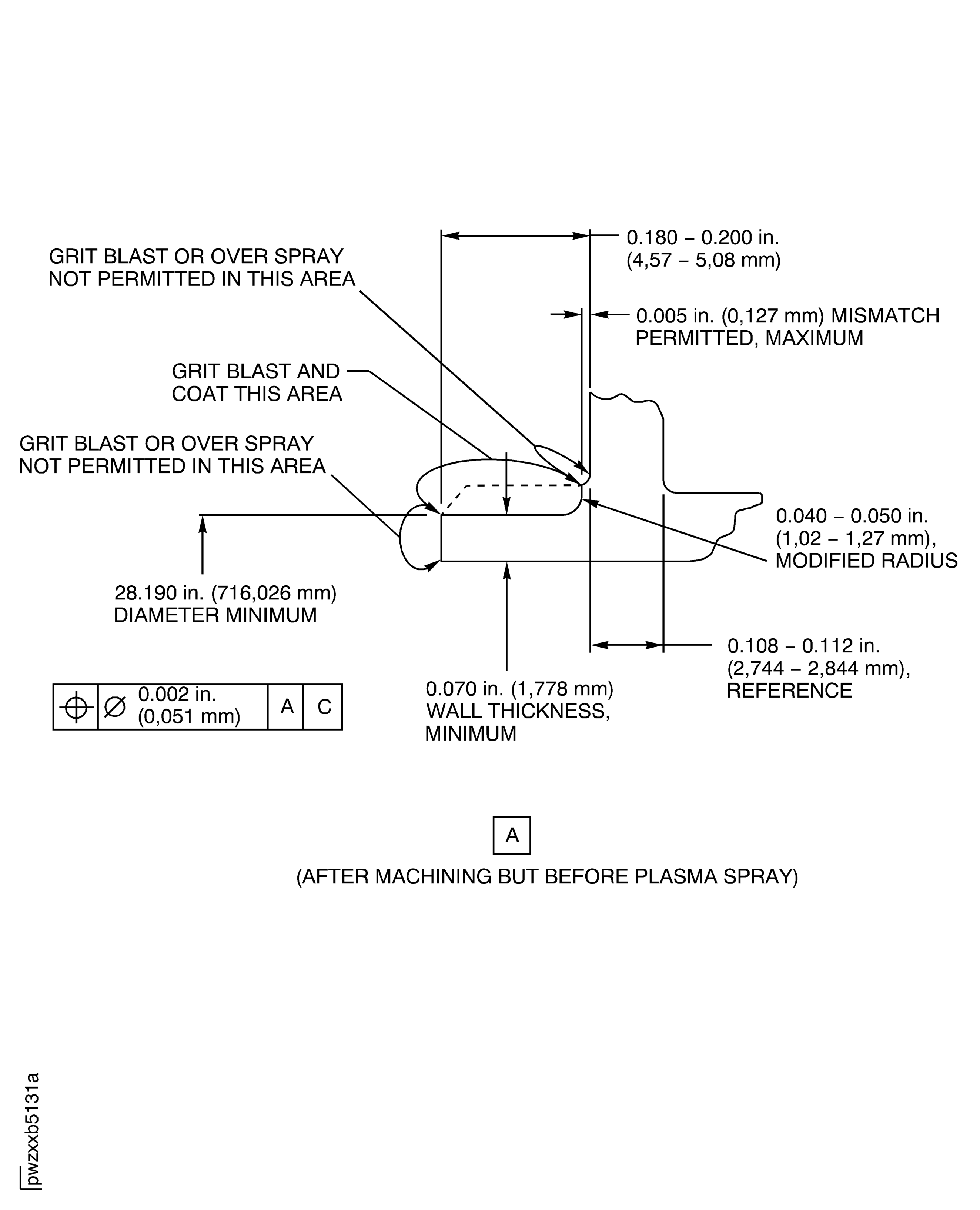 Grit blast out of repair area shown is not permitted. If necessary, apply a mask or maskants. Refer to Figure.