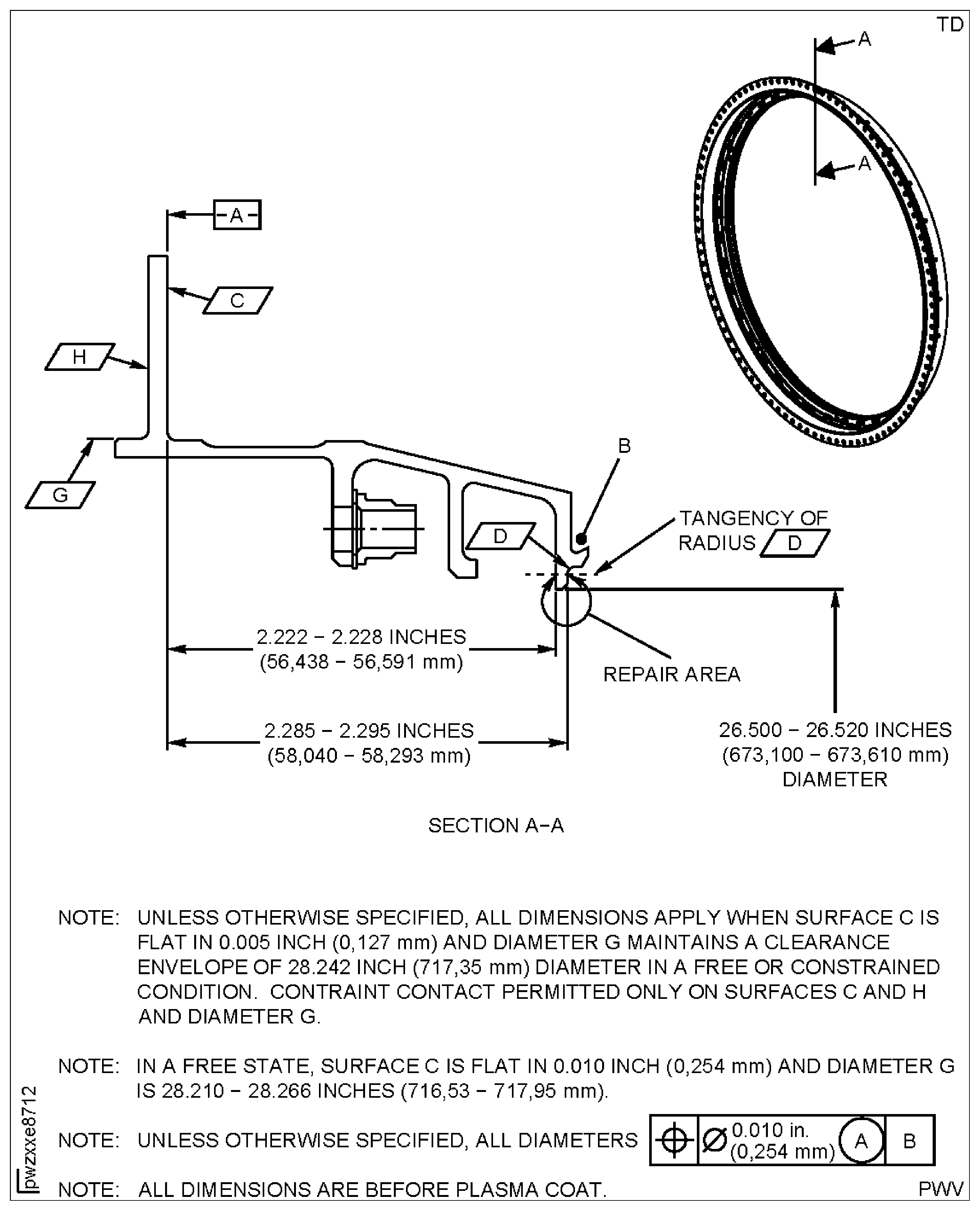 If present, remove plasma coat from the outside diameter bolt flange rear snap diameter. Refer to Repair, VRS3129, TASK 72-44-10-300-007 (REPAIR-007).