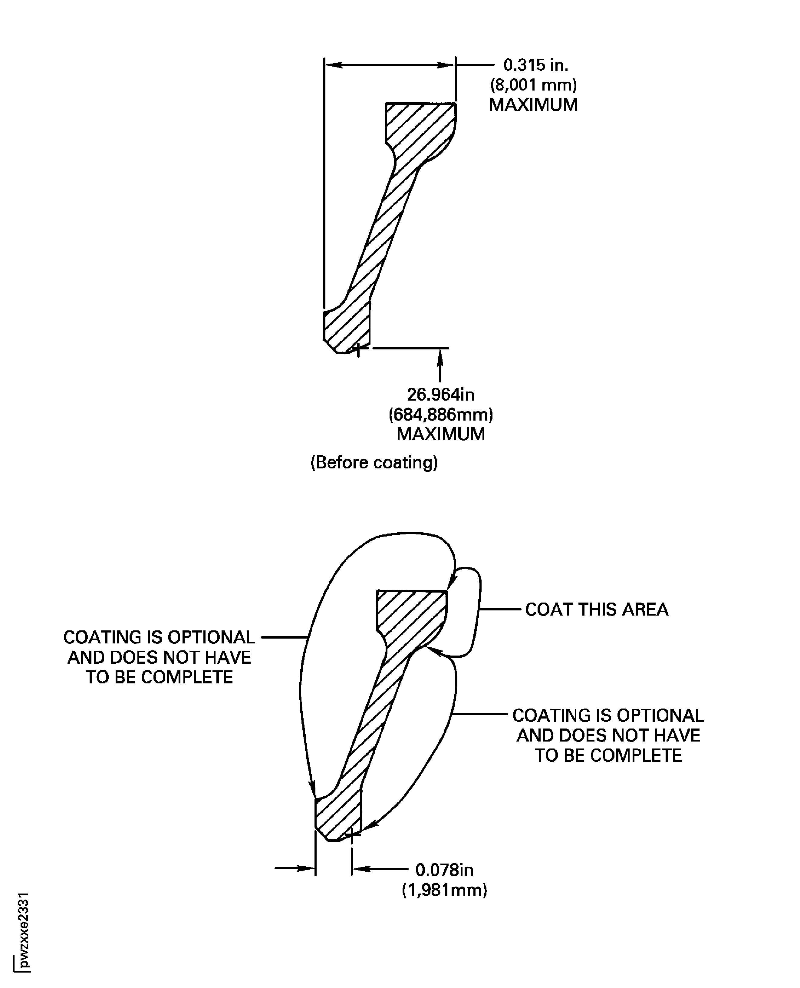 You can remove the damage by the SPM TASK 70-33-79-300-503, Stripping of Plasma and Flame Plate Coatings, SPM TASK 70-44-01-330-900, Stripping of PWA 53-5 Plasma Spray Coating or by grinding. If you grind, you must do a fluorescent penetrant inspection by the SPM TASK 70-23-01-230-501.Refer to Figure.