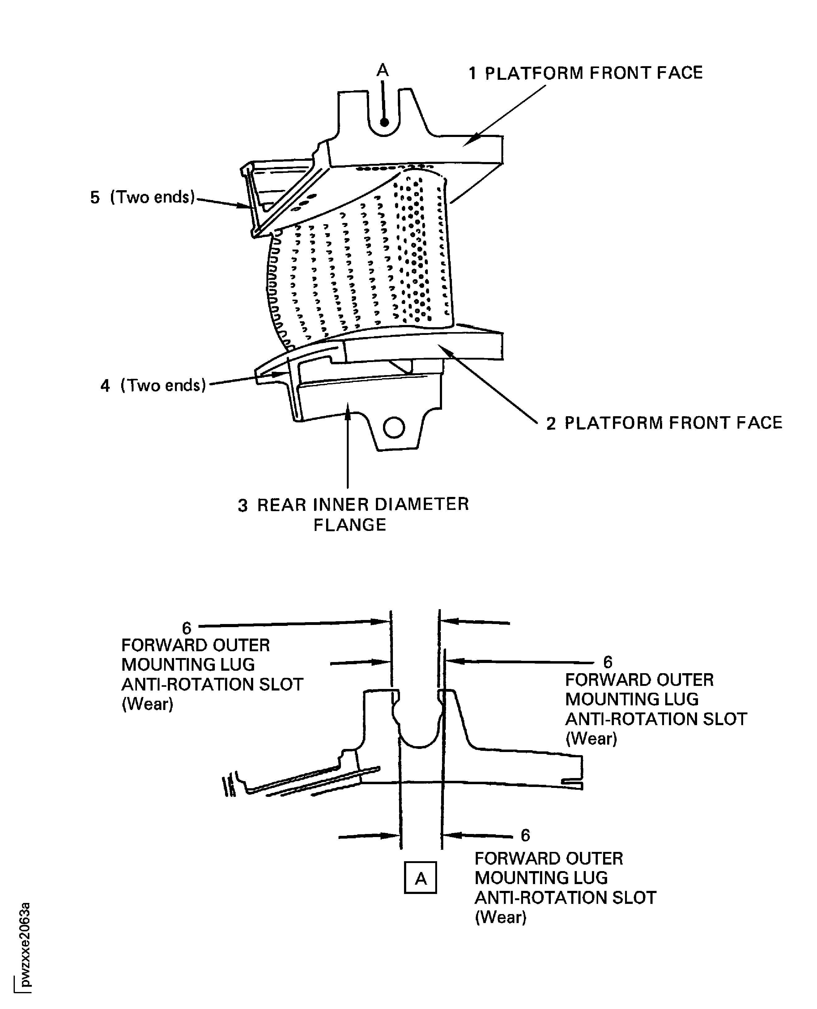 SUBTASK 72-44-20-220-080 Examine the Stage 1 HPT Vane Assembly (01-240) for the Wear on the Platform Front Faces and Two Sides on the Rear Inner Diameter Flange Surfaces