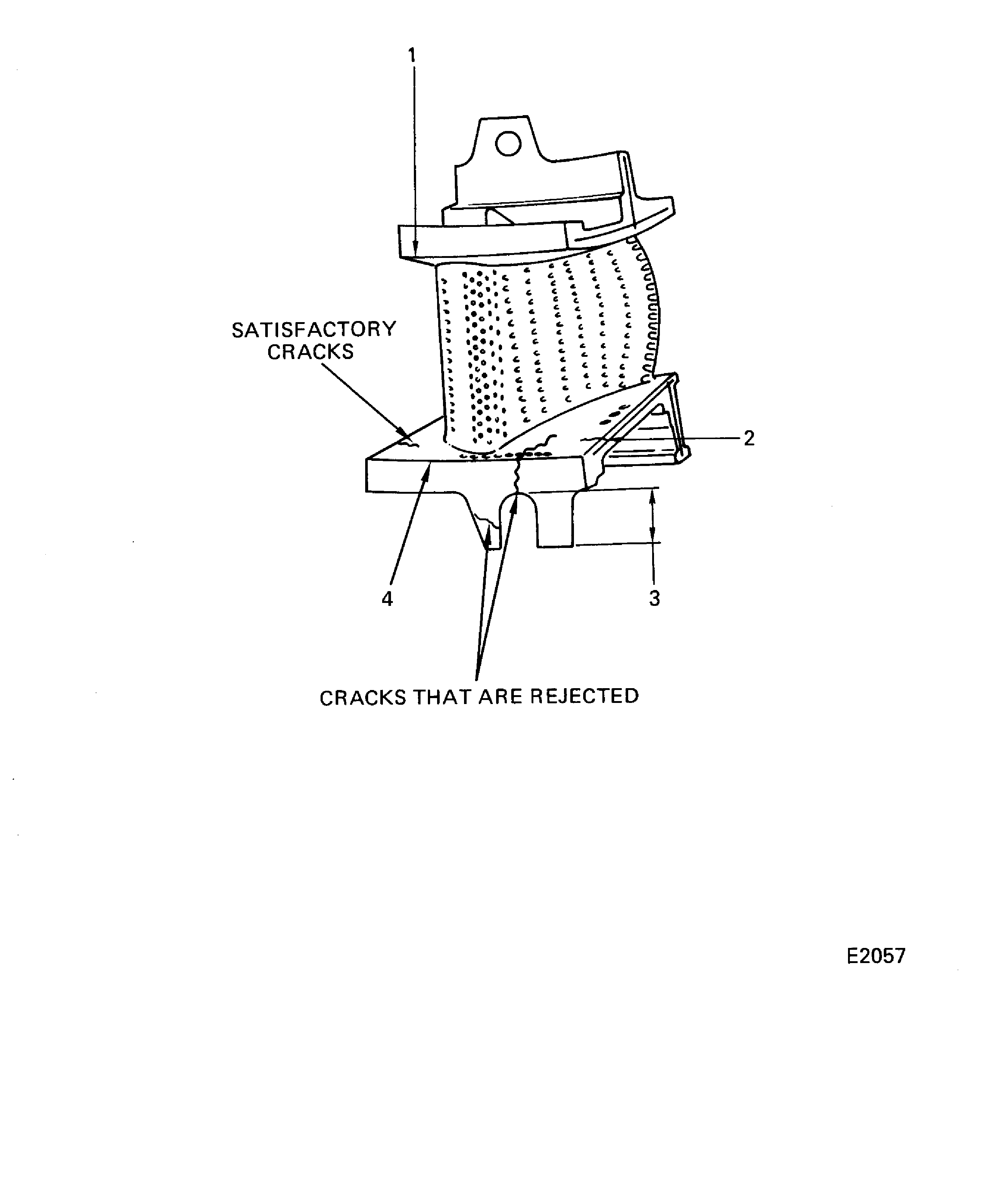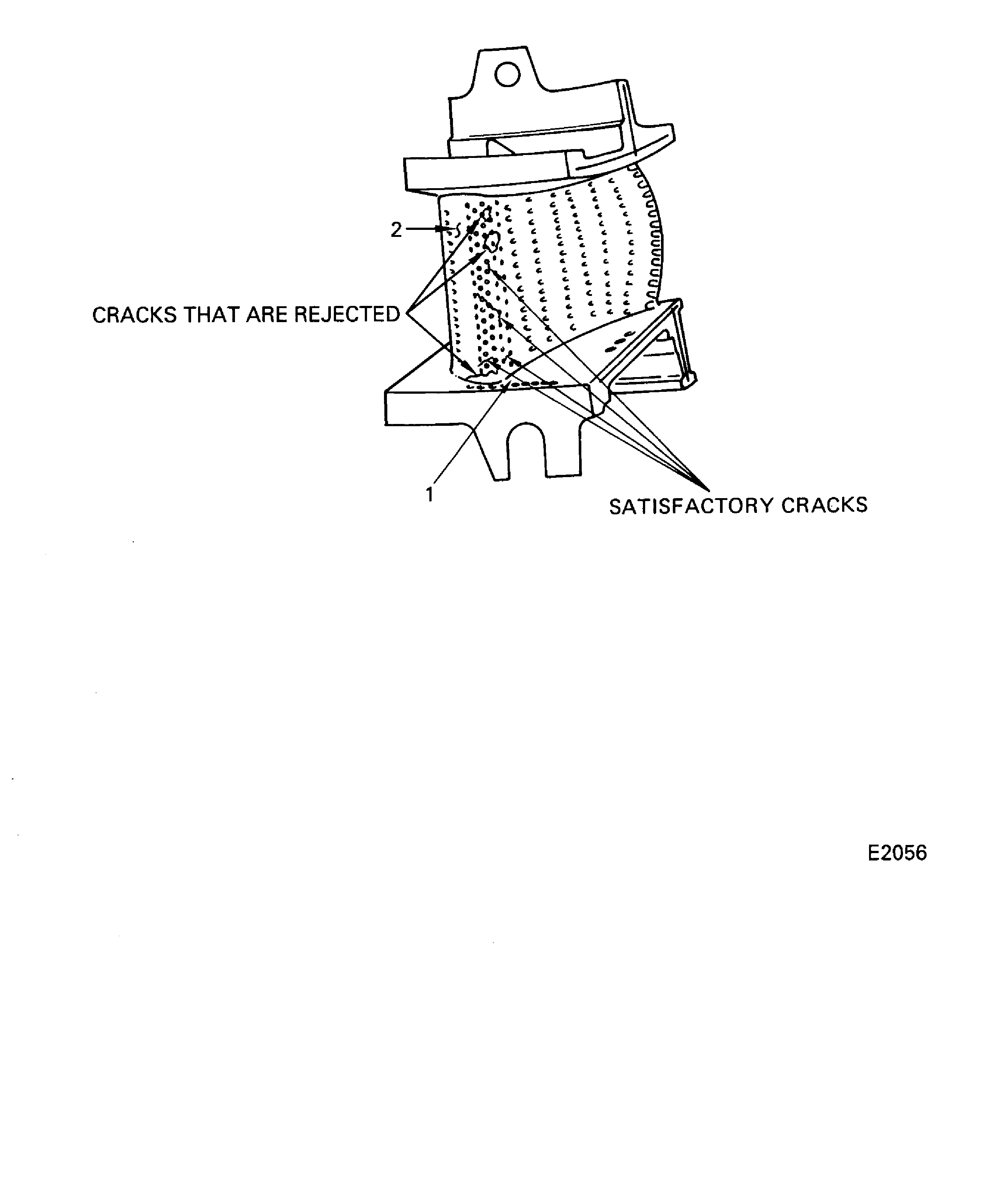Examine the vane assembly airfoil surfaces (concave and convex sides) for axial and radial cracks, Figure.