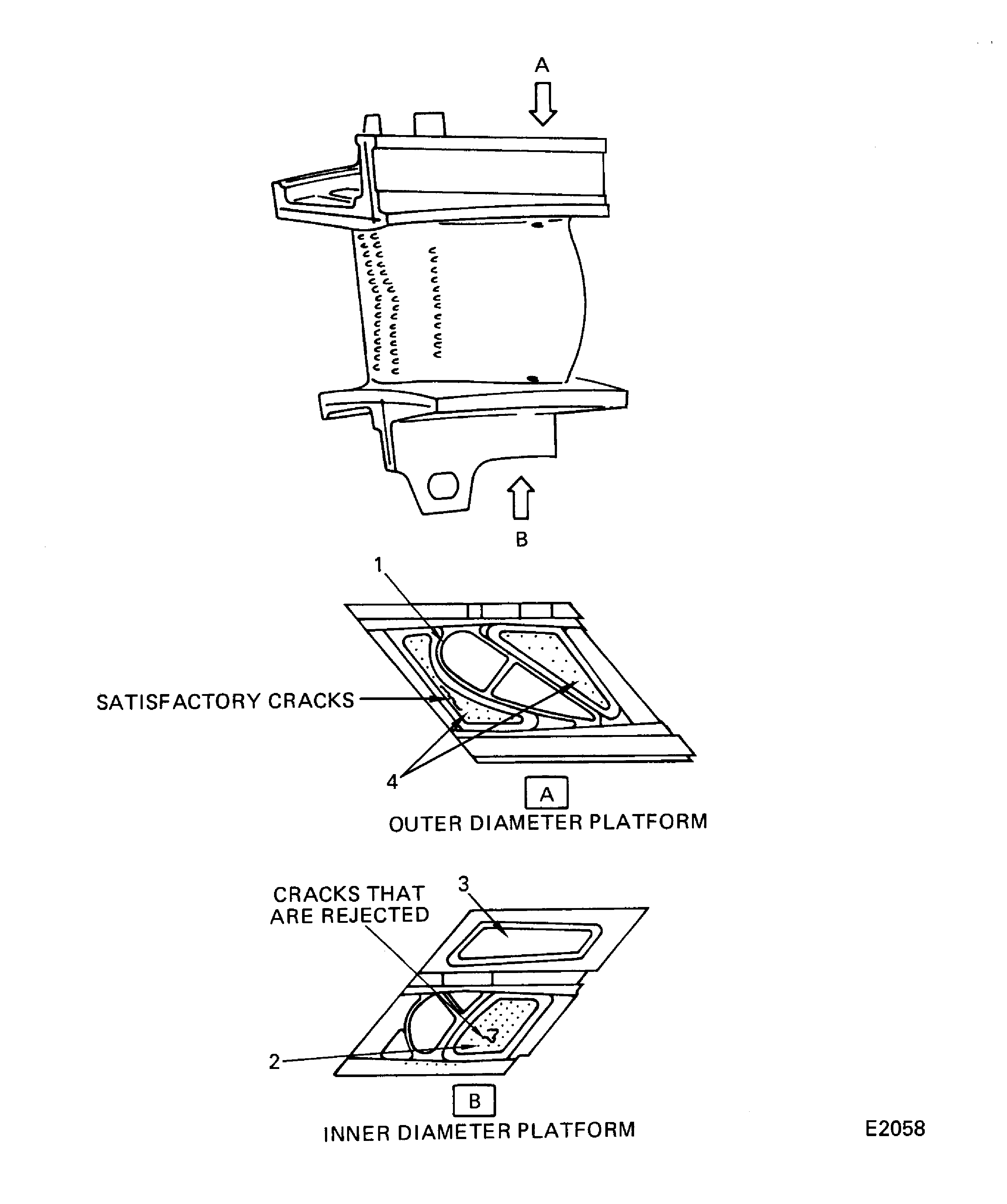 Examine the vane assembly inner and outer platforms for cracks, Figure.