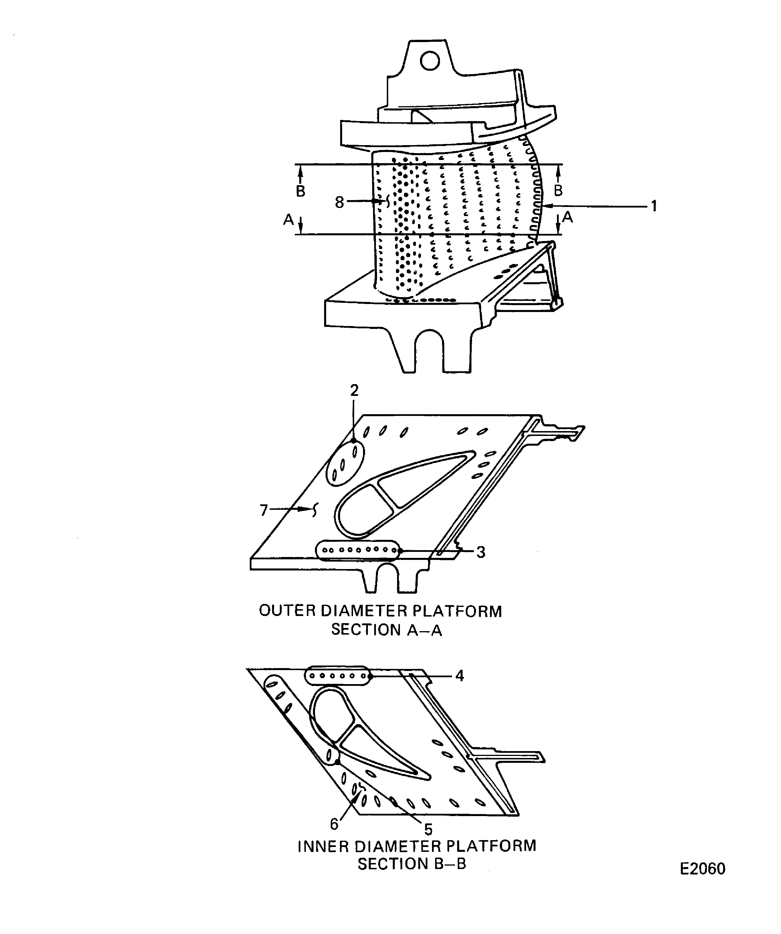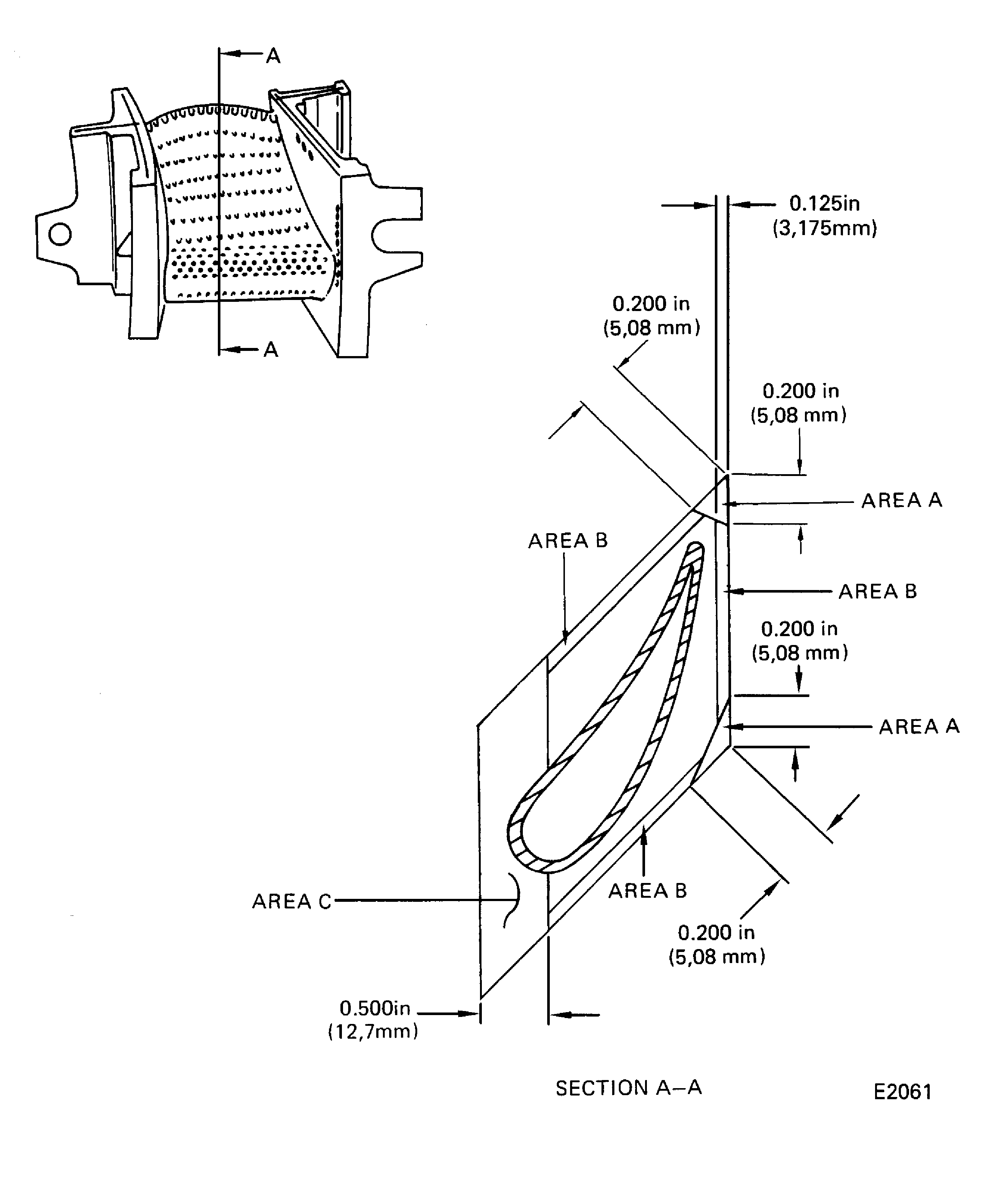 Examine the vane assembly at locations 3, 7 and 11 Figure. for burn-through or material that is not there on the airfoil and platforms.
