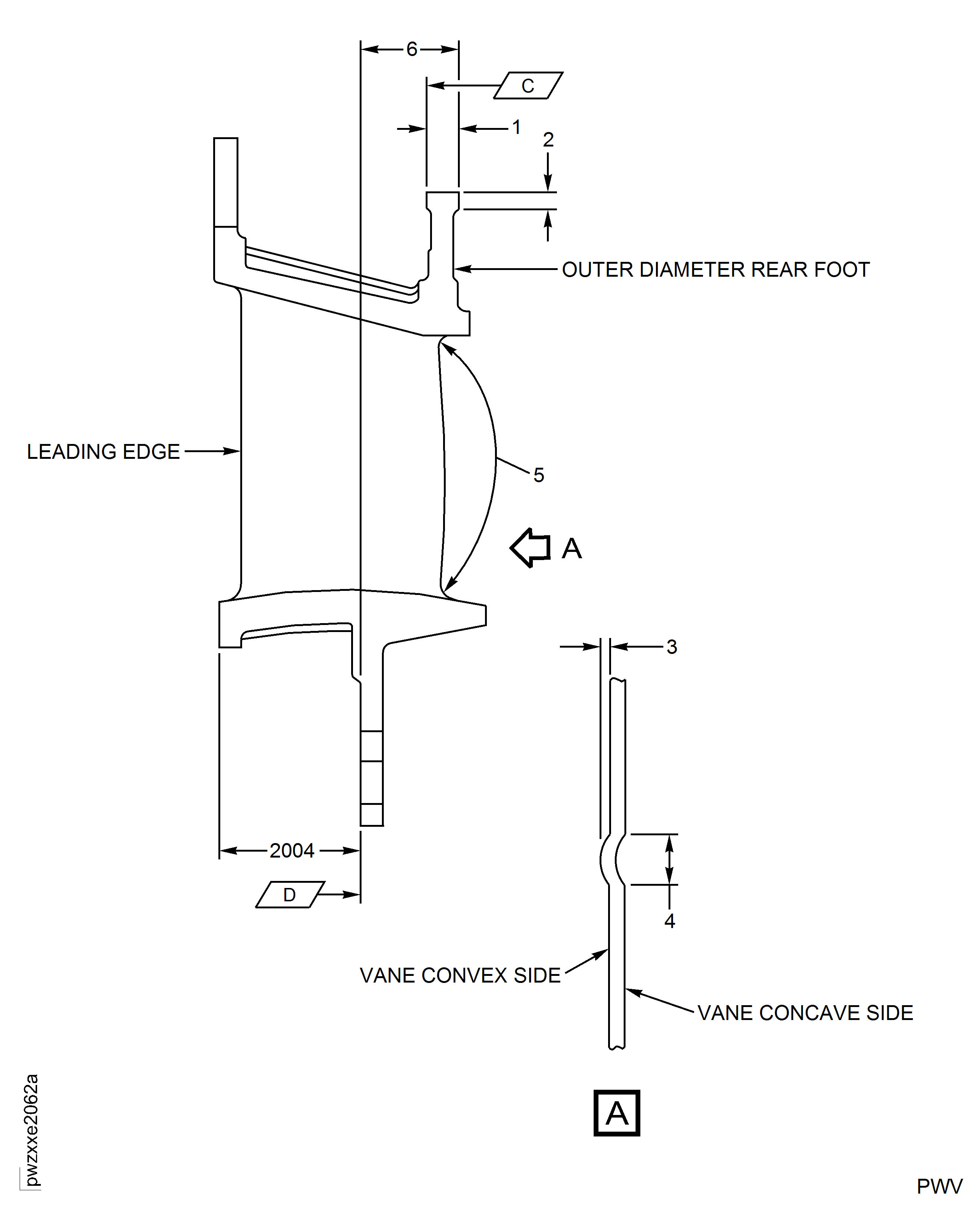 SUBTASK 72-44-20-220-078 Examine the Stage 1 HPT Vane Assembly (01-240) for the Outer Diameter Rear Foot Thickness