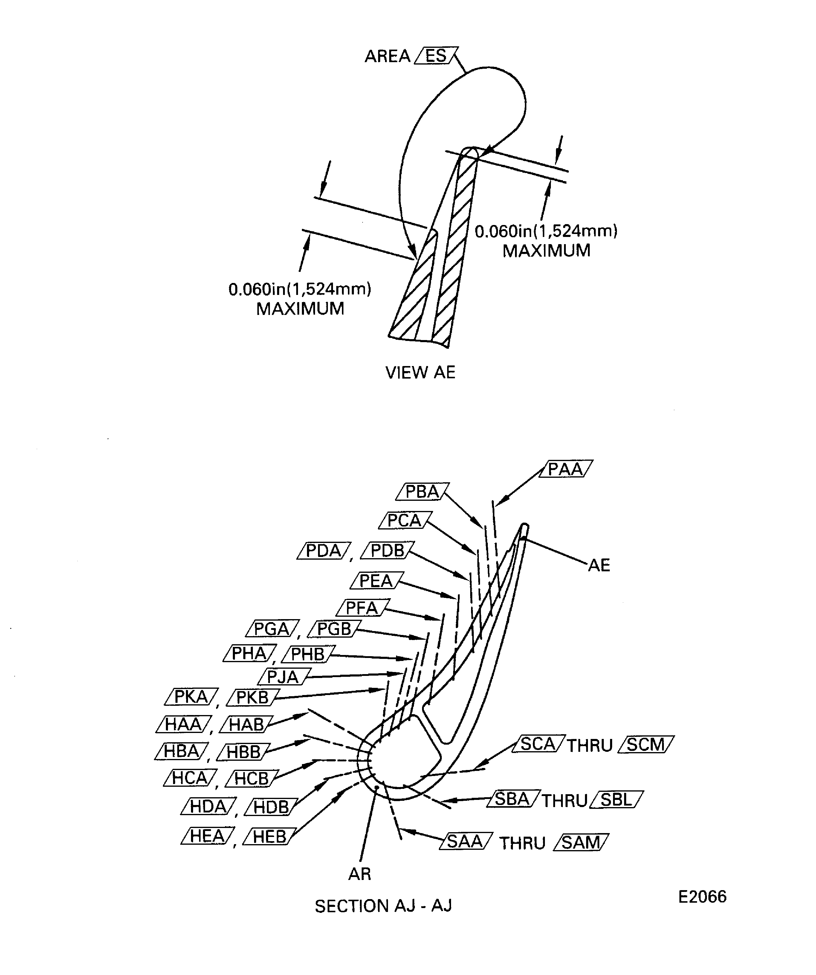 Figure: Stage 1 HPT Vane Assembly Leading Edge Cracks Inspection Locations