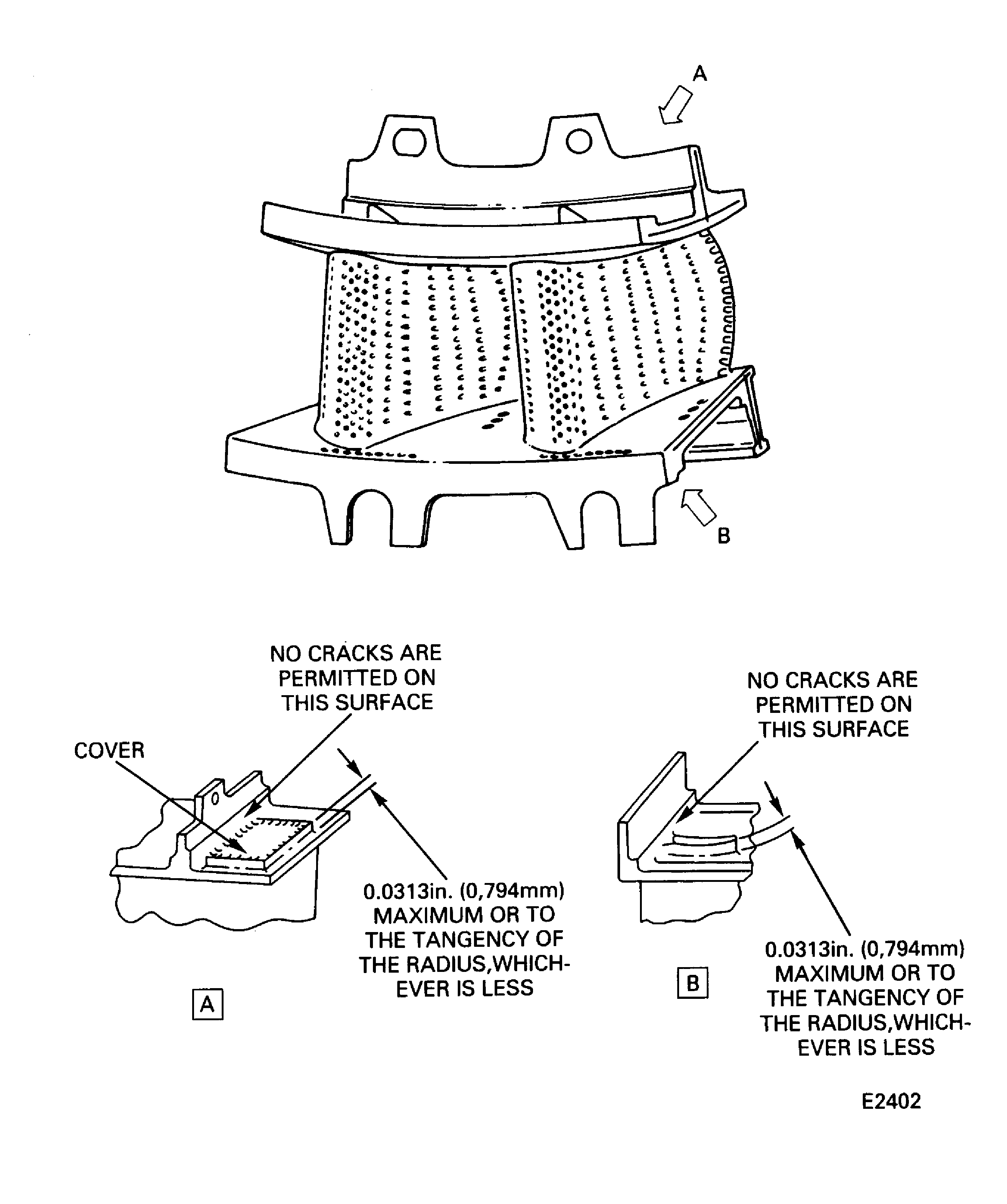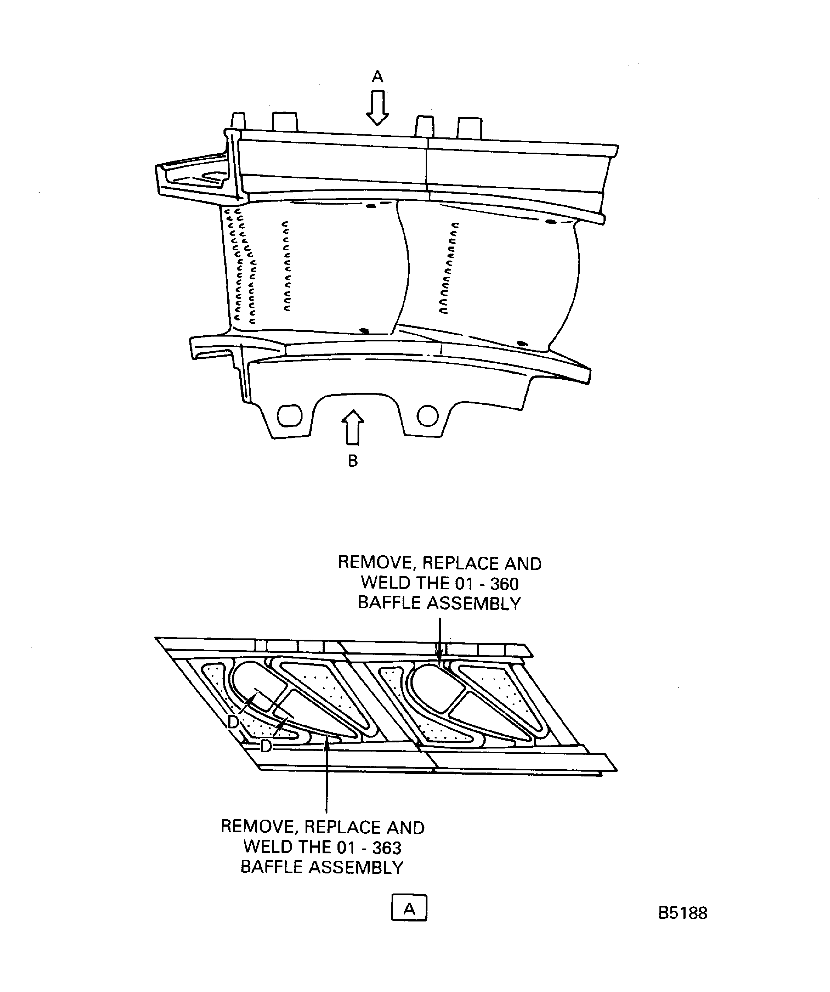 Figure: Stage 1 HPT vane cluster assembly baffle assembly replacement repair areas